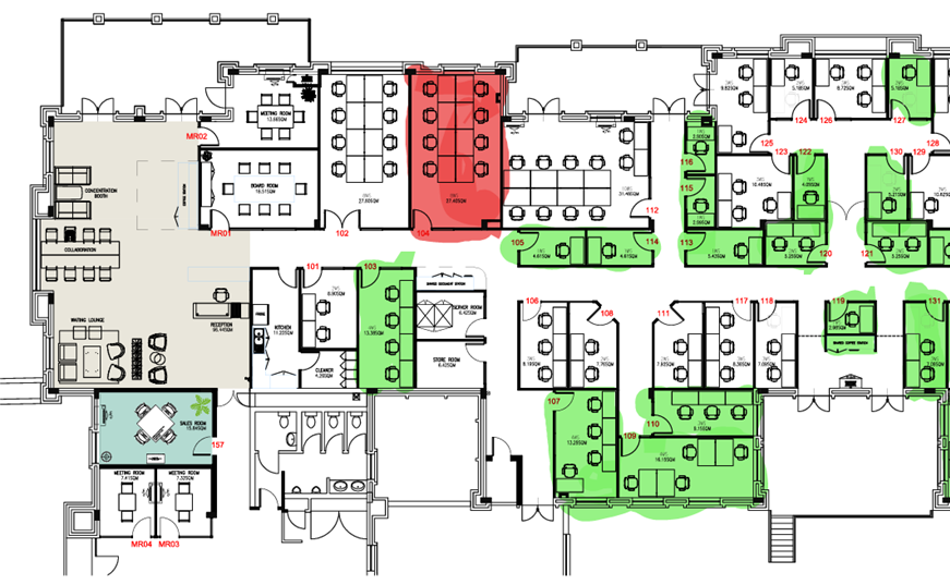 Office Sizes Available - Smallest private office: 2.99 m² (Office 115) / Largest private office: 28.58 m² (Office 137) Available office sizes range from: ±3 m² up to ±29 m², with multiple options in between. Property Features