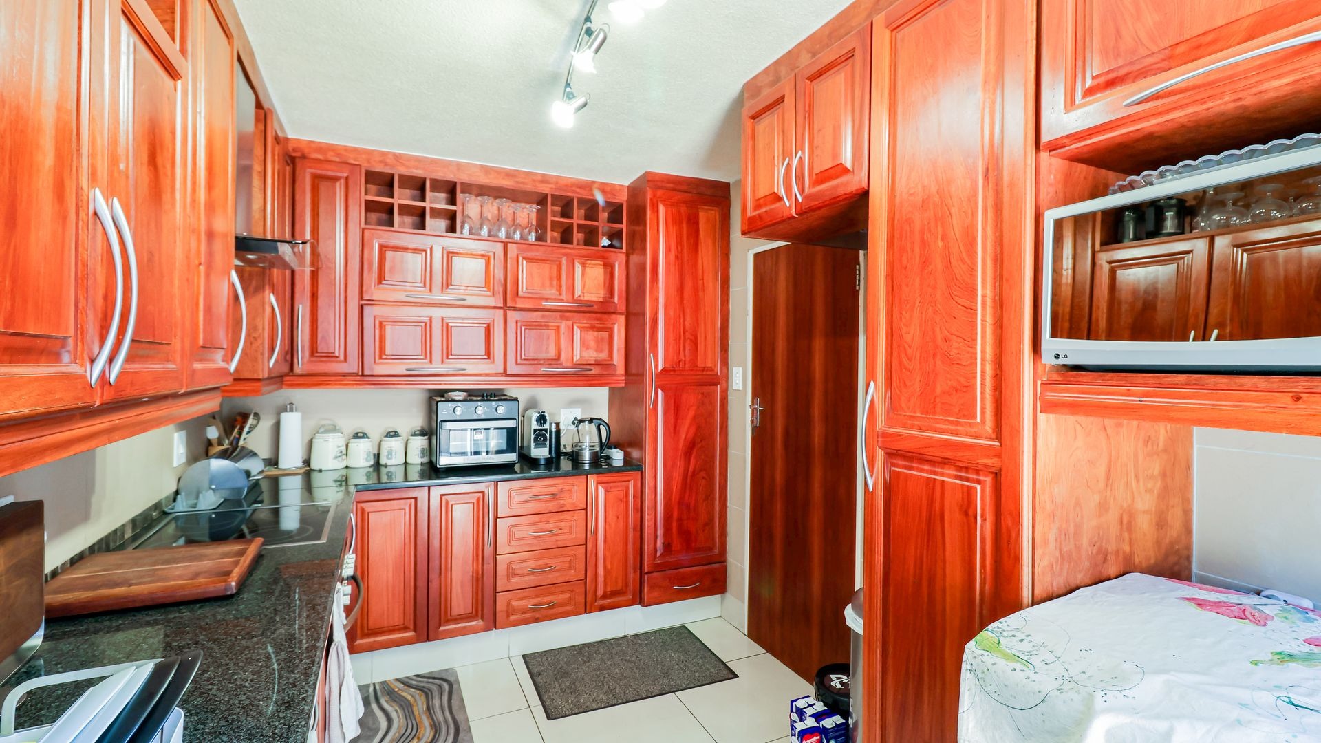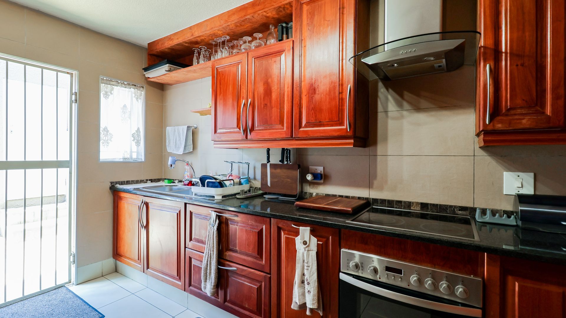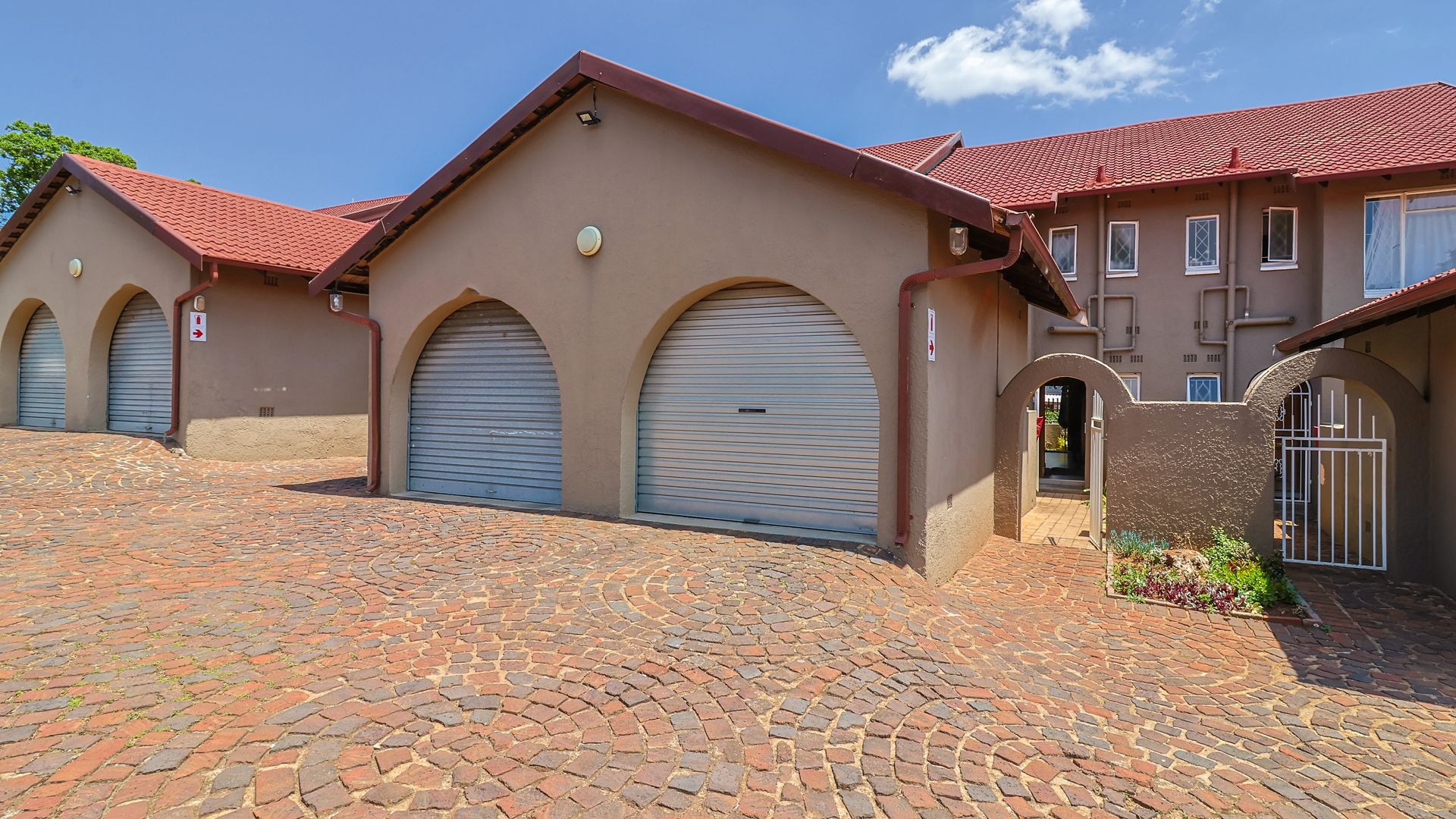 Separate kitchen with space for 3 appliances leading to courtyard and garage for 1 vehicle