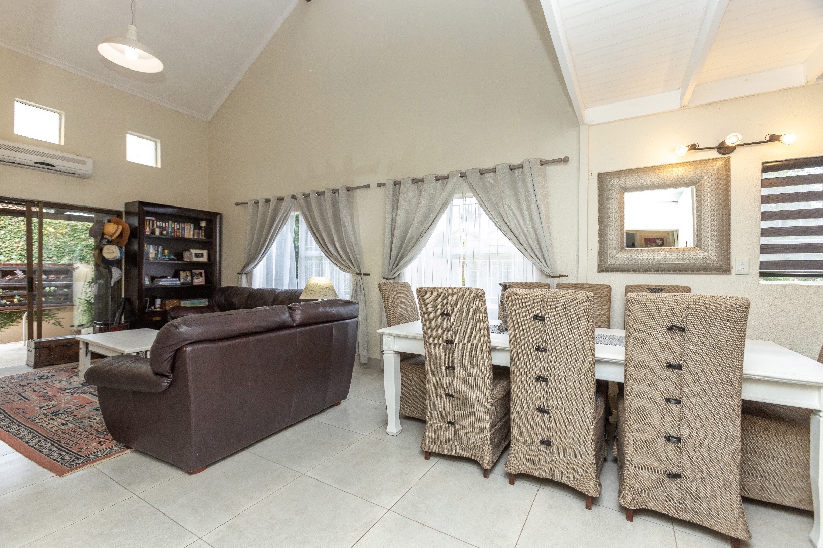 Open plan living area with aircon which leads out onto the private patio