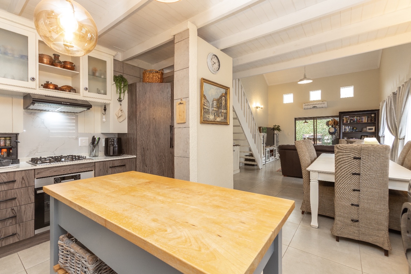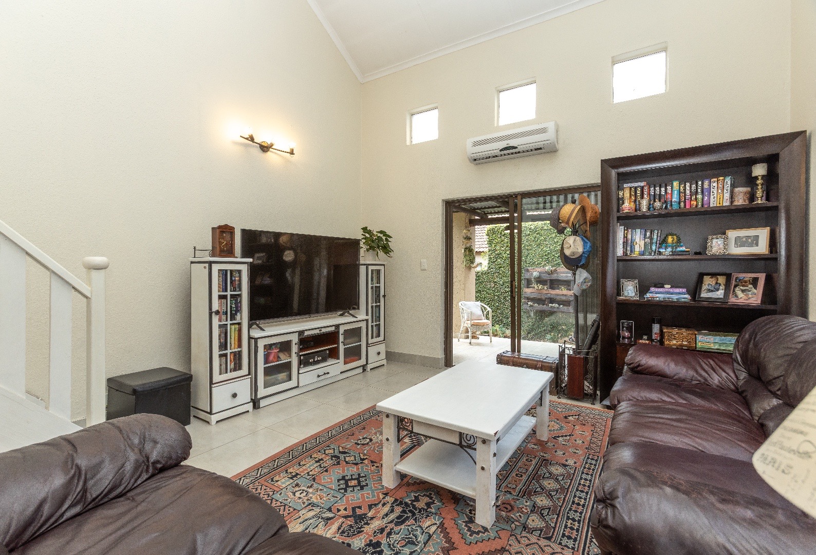 Open plan living area with aircon which leads out onto the private patio