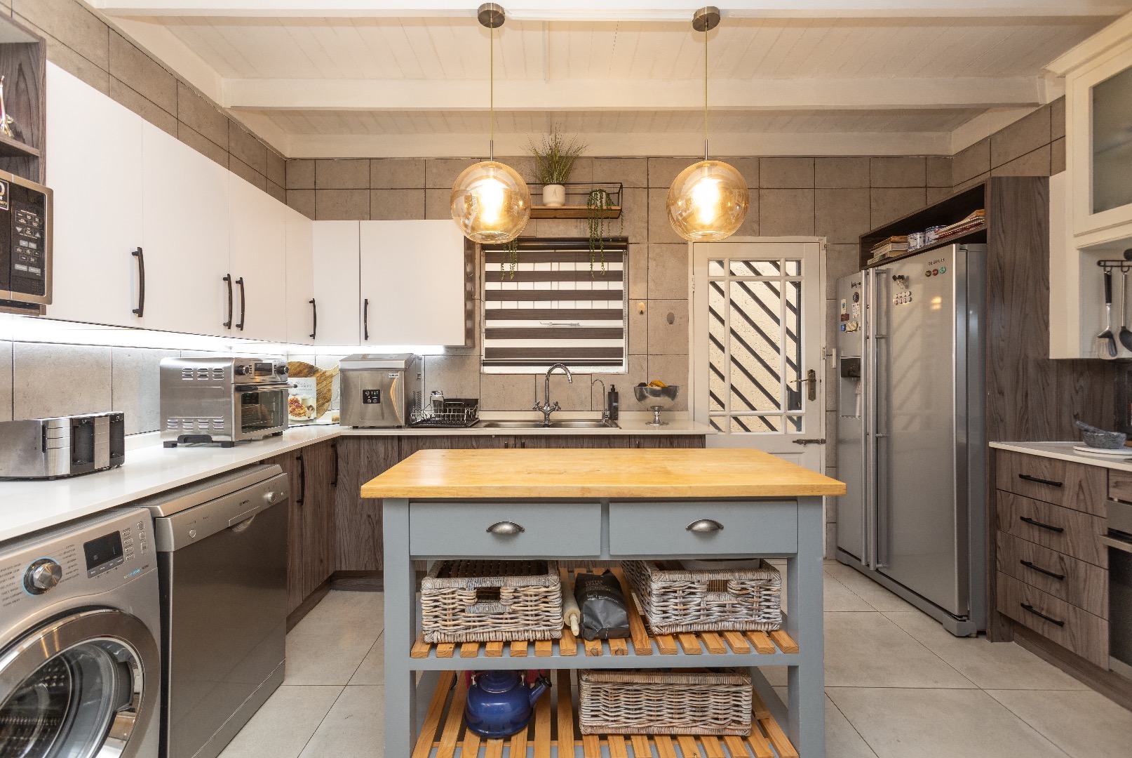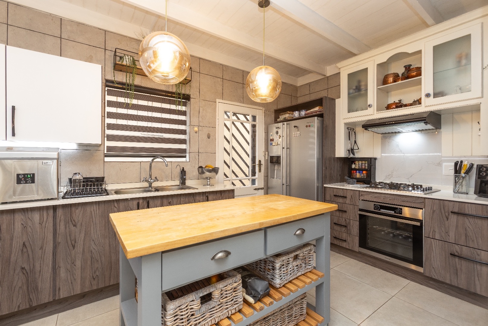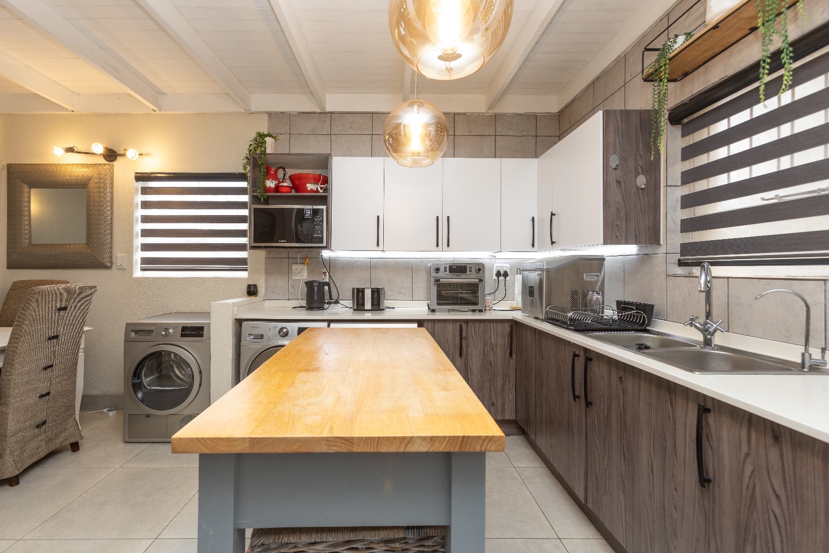 The unit offers a modern kitchen with gas hob, space for 2 water appliances and a double door fridge