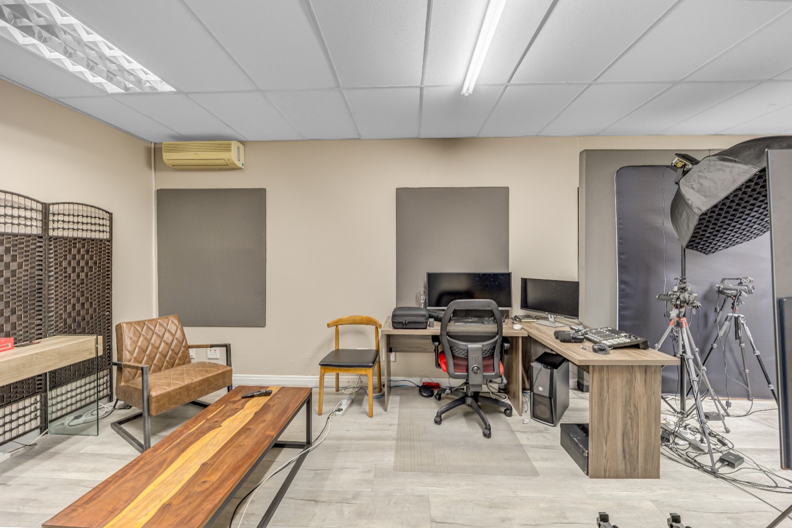 This versatile unit combines modern finishes, thoughtful design, and great accessibility in a secure and quiet office park environment. With a mix of private offices, a soundproof studio, and a light-filled layout, it’s the perfect base for companies looking to balance professionalism and creativity.