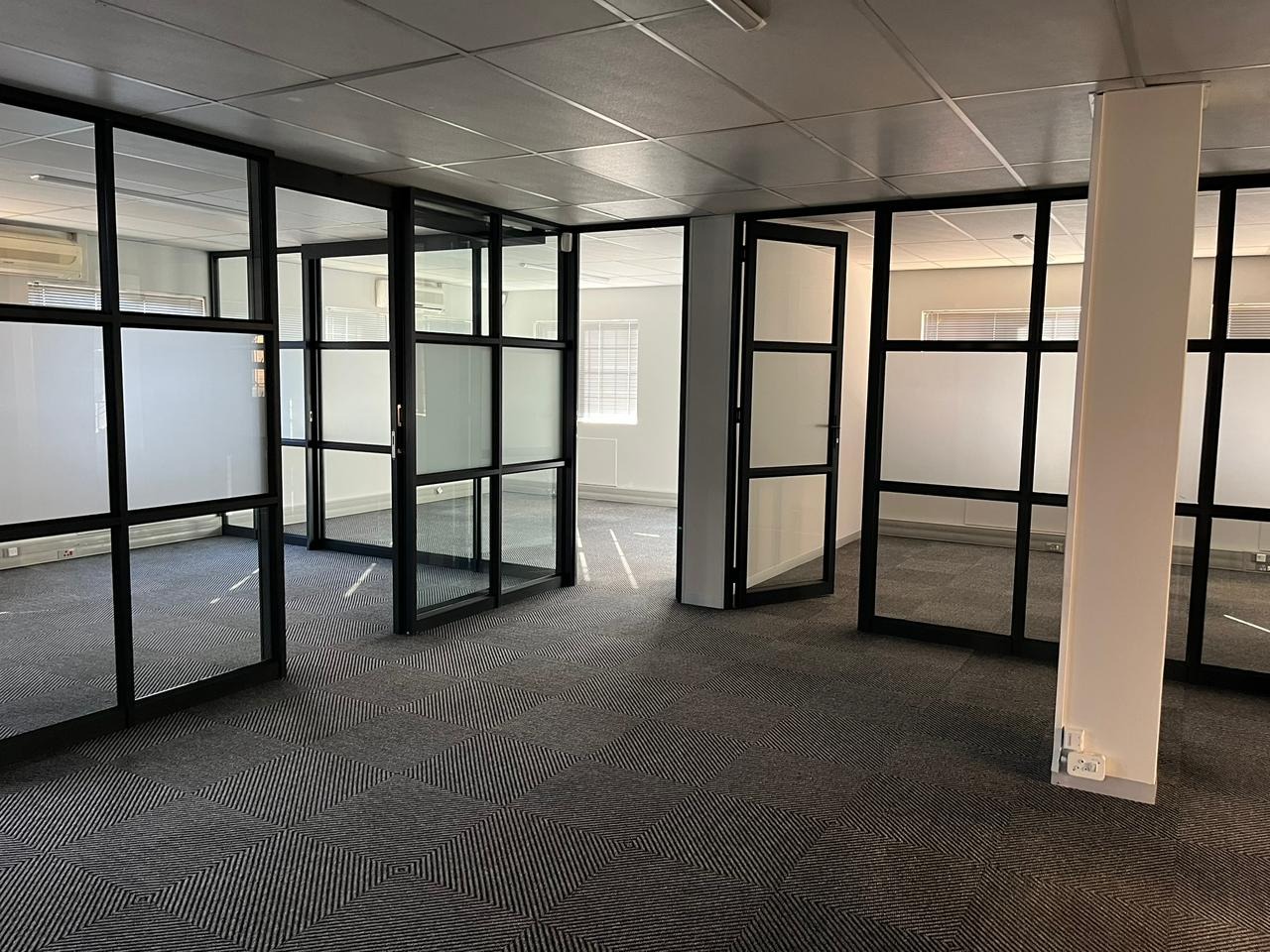 Block C - 1129 m² available, you choose what space you want! Executive offices and reception area as well as general open plan offices, with 15 offices on the ground and first floor. Faces Hendrik Potgieter Road, great visibility.