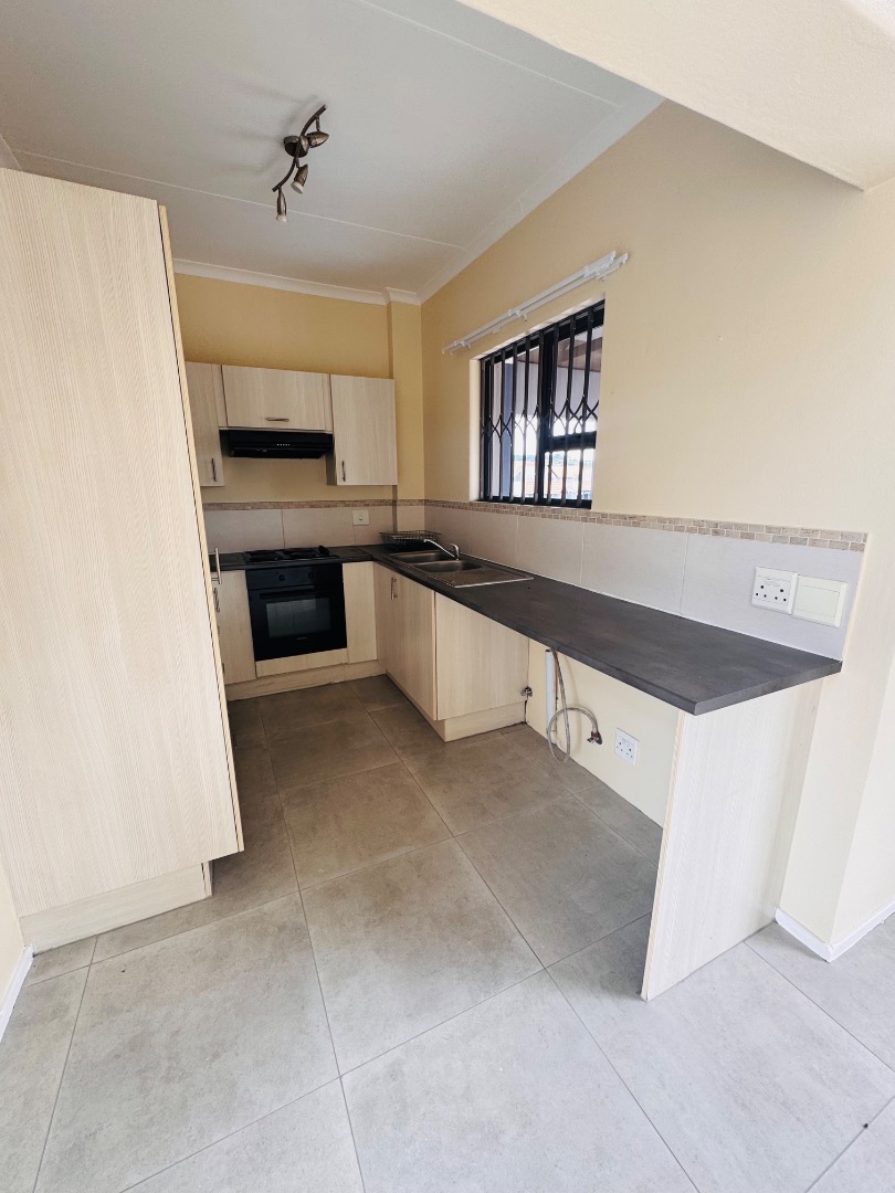 Discover modern living in this inviting 2-bedroom, 2-bathroom apartment located in a secure complex in Honeydew Grove. This unfurnished rental property features an open-plan layout, seamlessly connecting the lounge and dining areas. The contemporary kitchen boasts light wood-look cabinetry, dark countertops, and a built-in oven and hob, space for double door fridge and 2 under counter appliances. Enjoy ample natural light throughout the apartment, with modern grey tiled flooring providing a clean and stylish finish.
