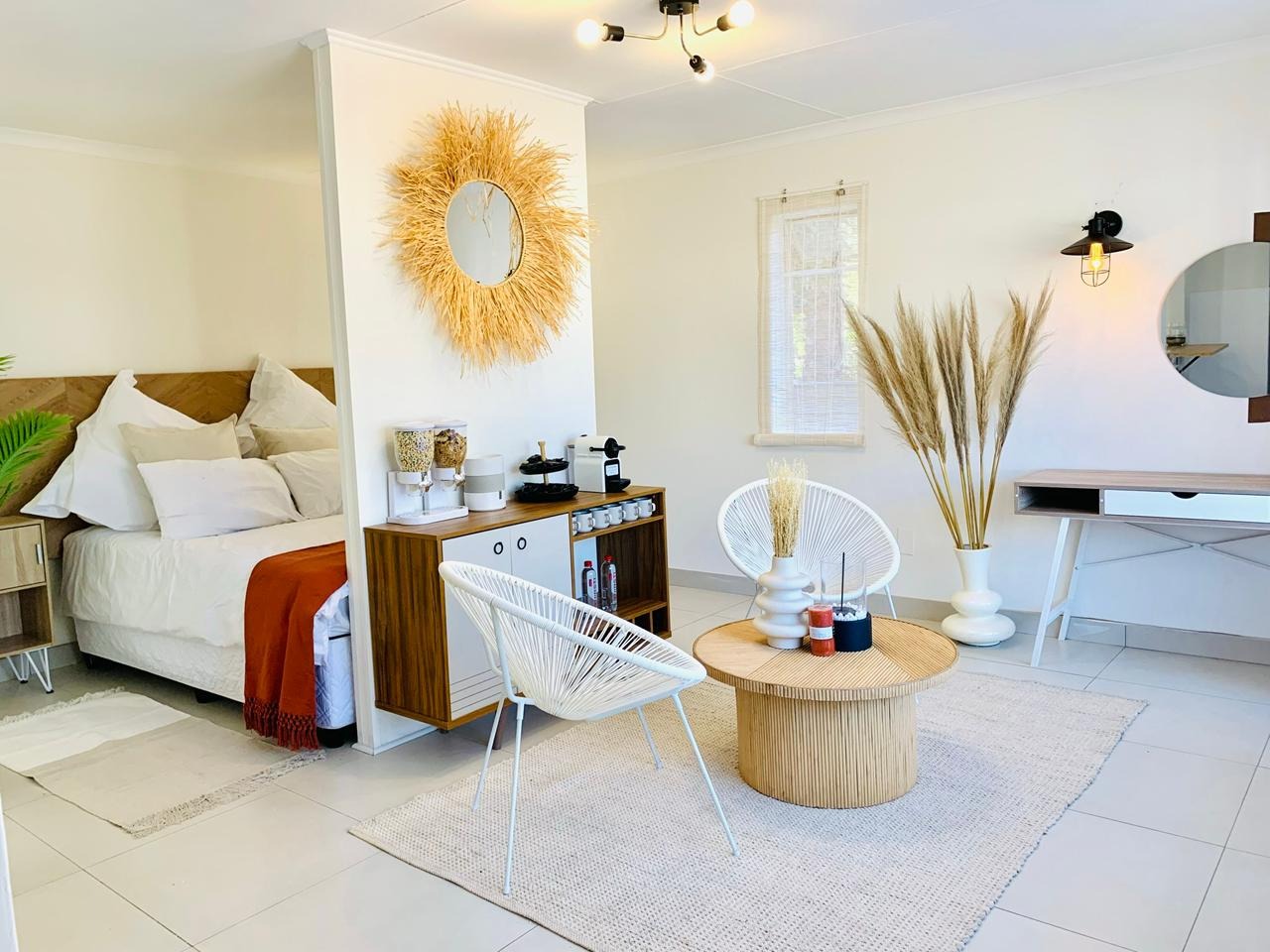 The main house offers three well-sized bedrooms. The main bedroom features a private en-suite toilet, while all three bedrooms share a bathroom. A welcoming entrance hall leads into an open-plan dining room and lounge, with sliding doors opening onto a beautifully maintained, spacious garden.