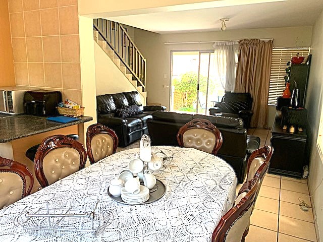This property is well-suited for families or professionals seeking a secure and pet-friendly environment. With two garages and two additional parking spaces, parking is ample. Security is a priority, featuring a security complex with a security post, access gate, electric fencing, burglar bars, and a security gate. Fibre ready.