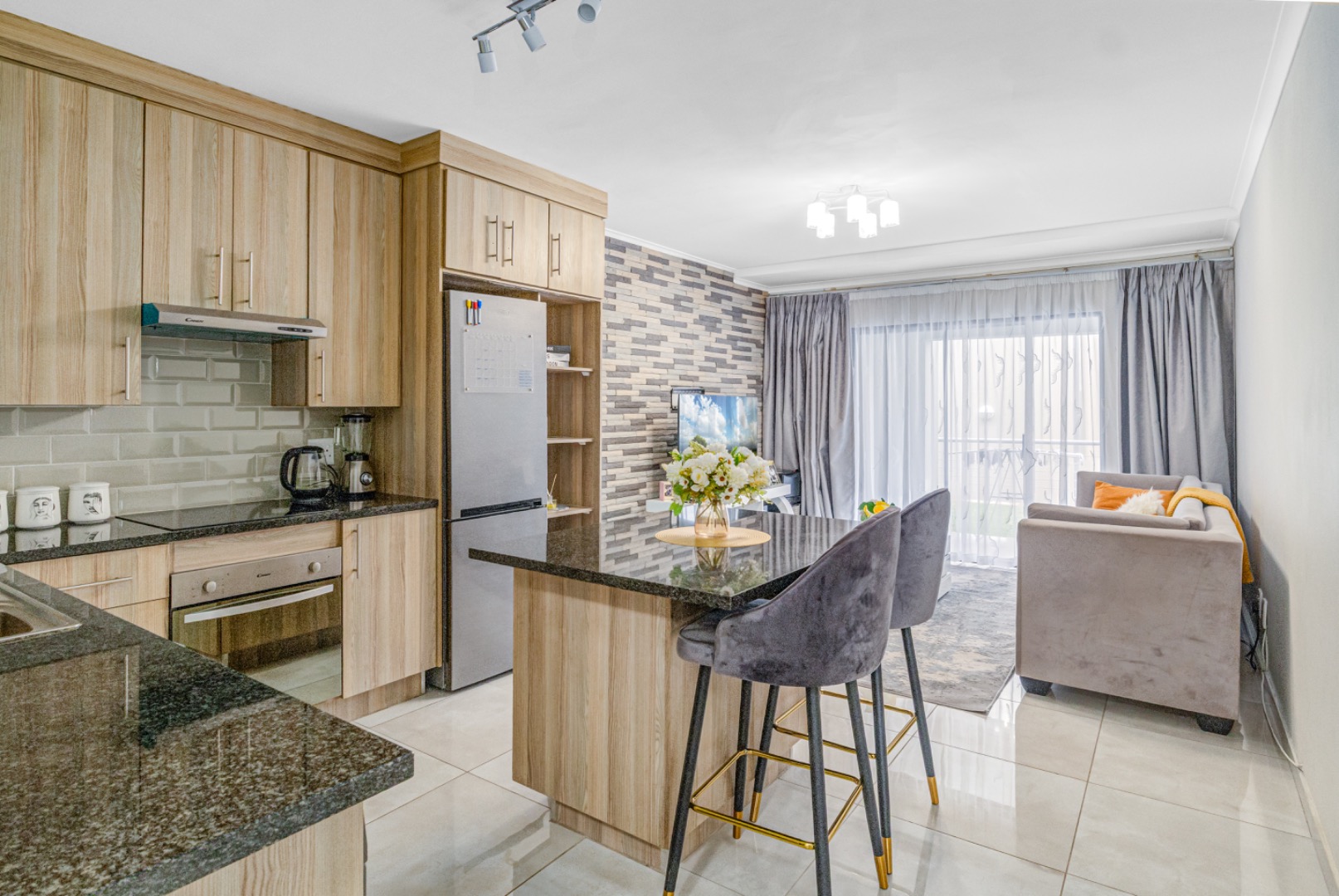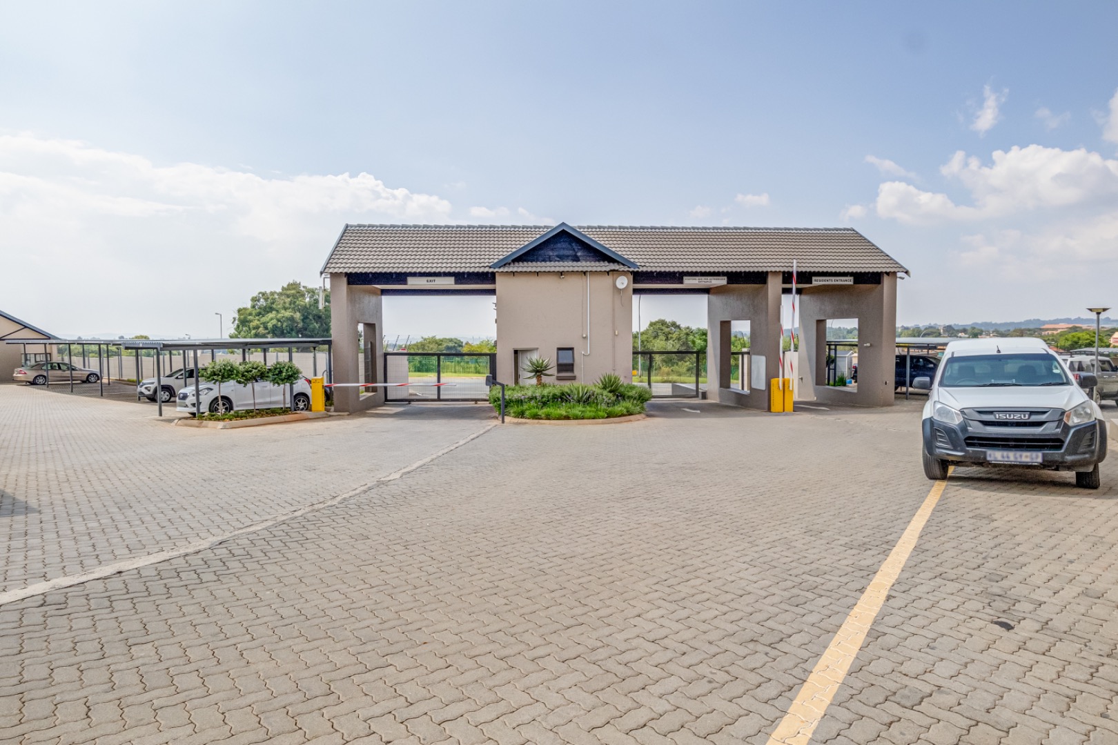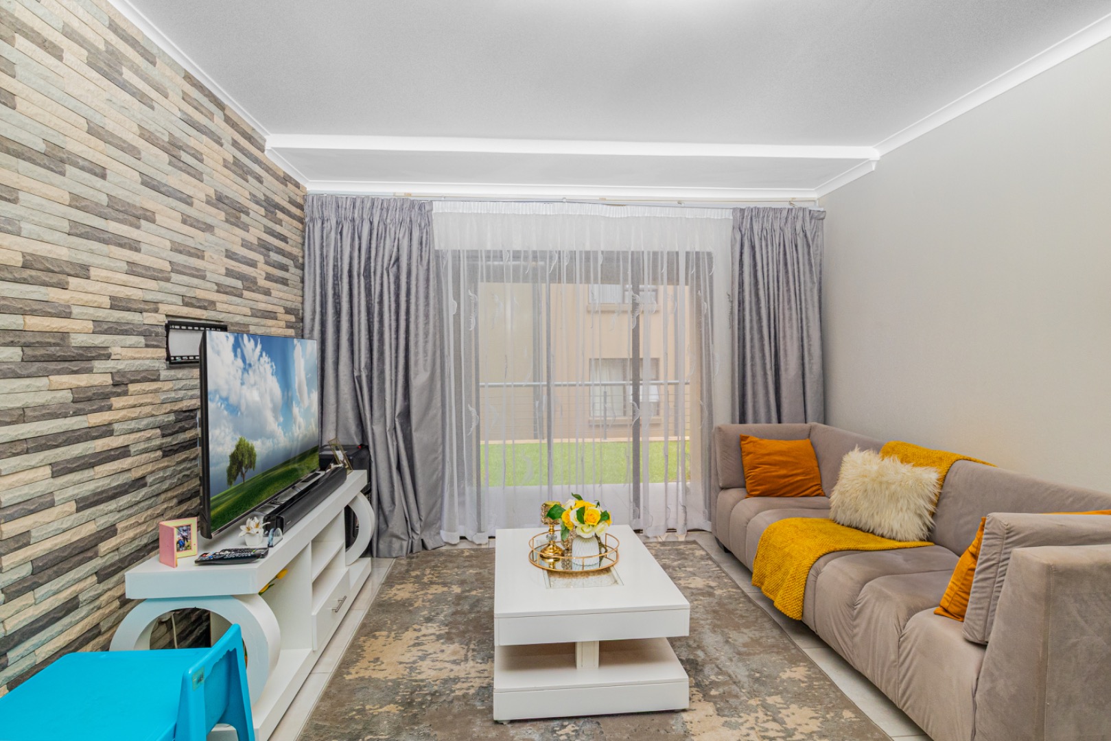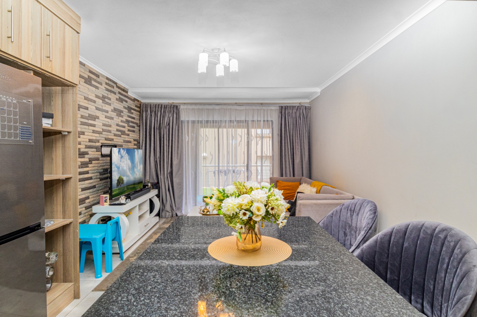 This modern 3-bedroom, 2-bathroom apartment offers comfortable and secure living in the sought-after Ruimsig suburb of Roodepoort. The contemporary open-plan design seamlessly connects the kitchen and living areas. The well-appointed kitchen features sleek wooden cabinetry, granite countertops, built-in appliances, and a convenient breakfast bar. The living space, enhanced by an accent wall, receives abundant natural light through large glass doors. Tiled flooring throughout ensures easy maintenance, complemented by a guest toilet. The apartment includes three spacious bedrooms, with the main bedroom boasting an en-suite bathroom. The additional bathroom serves the remaining bedrooms. Each bedroom offers a clean, neutral aesthetic and ample natural light, creating a serene retreat. Ideal for families or professionals, this apartment is within a well-maintained complex. Residents enjoy two dedicated parking bays and access to communal amenities, including a refreshing swimming pool, a garden, and an outdoor recreational play area. Security is paramount, with 24-hour security featuring a dedicated gatehouse, boom barriers, and a guard post ensuring controlled access. The property is further secured with an alarm system, electric fencing, security gates, and an intercom system. Ruimsig, a desirable Roodepoort area, offers suburban tranquility and convenient access to amenities. The complex features modern exterior designs, well-maintained green lawns, and mature trees, enhancing the living environment. Key Features: * 3 Bedrooms, 2 Bathrooms (1 En-suite) * Modern Open-Plan Living & Kitchen * Granite Countertops & Breakfast Bar * 2 Dedicated Parking Bays * Communal Swimming Pool & Garden * 24-Hour Security with Access Control * Alarm System & Electric Fencing * Recreational Play Area
