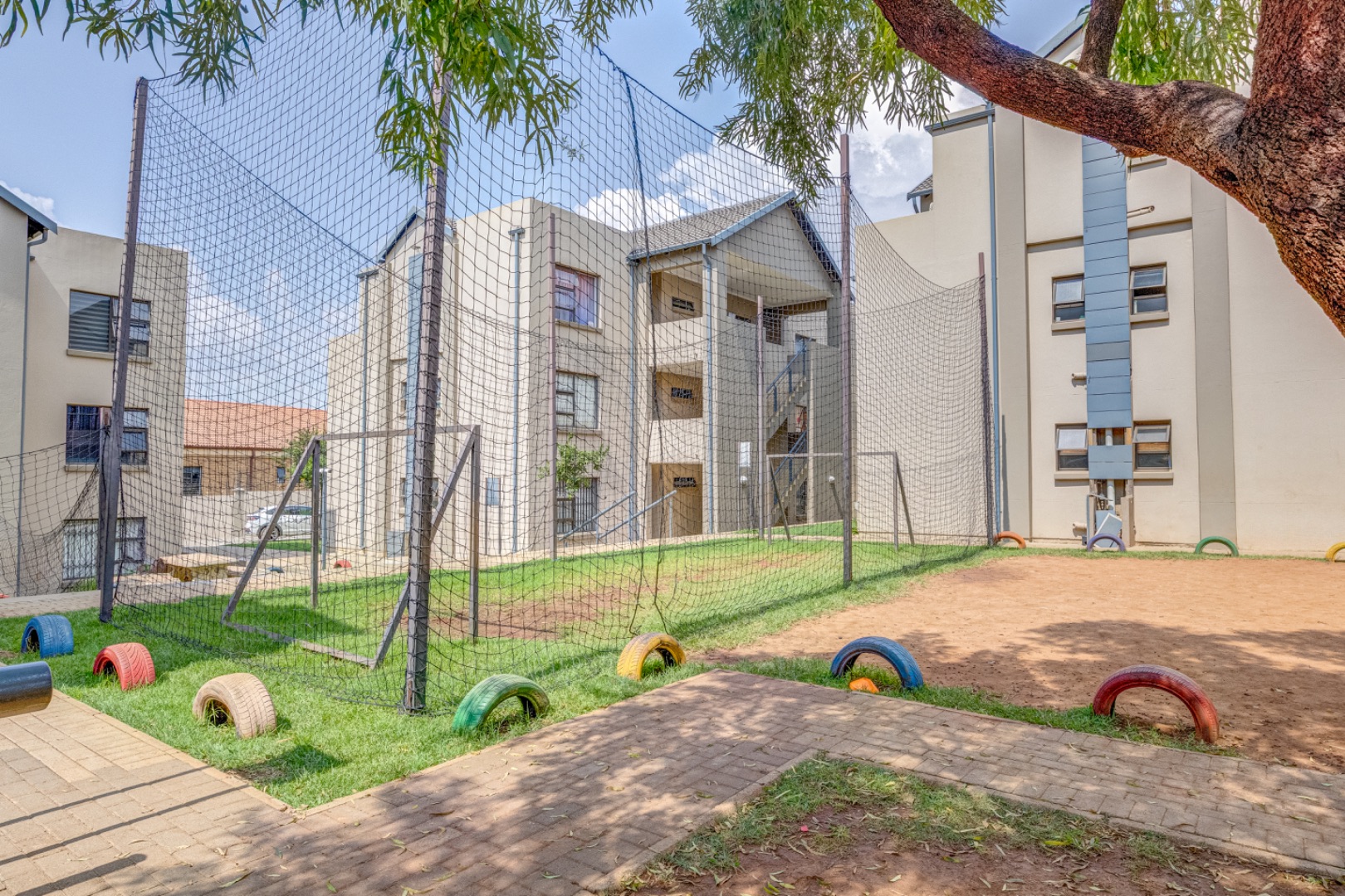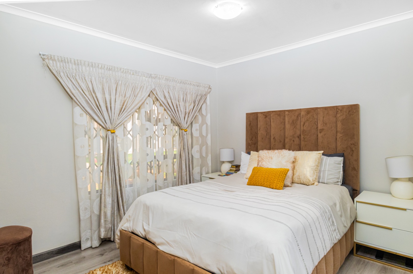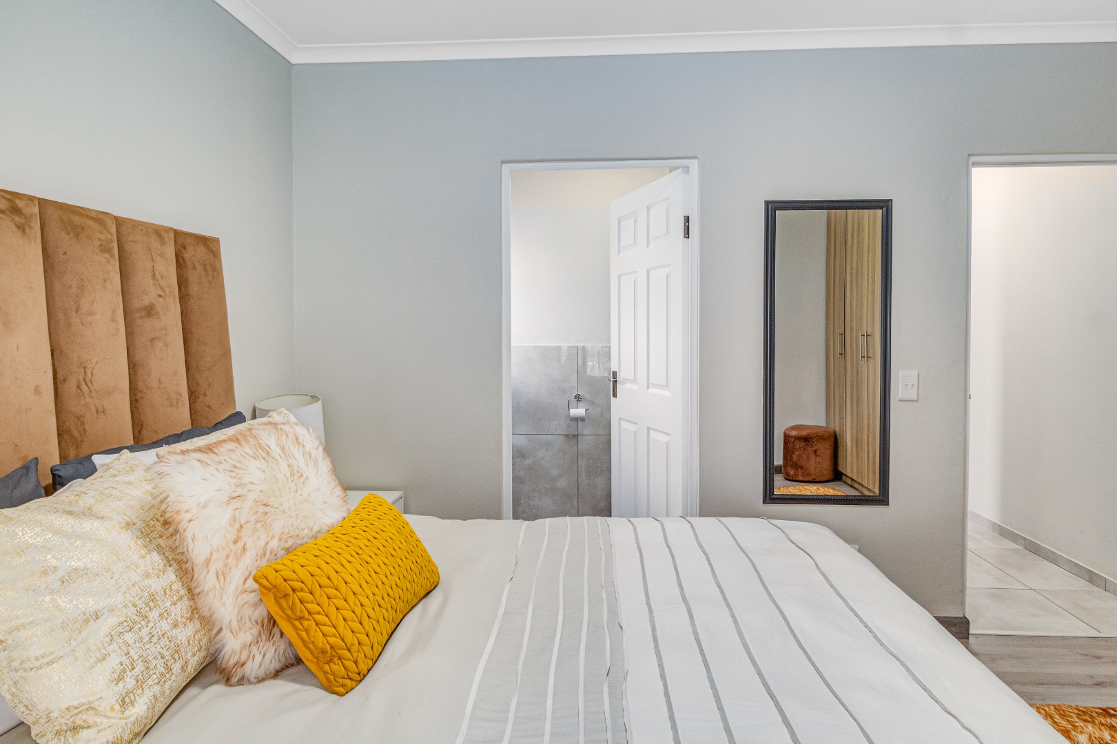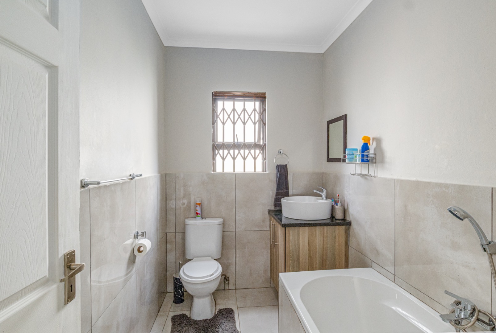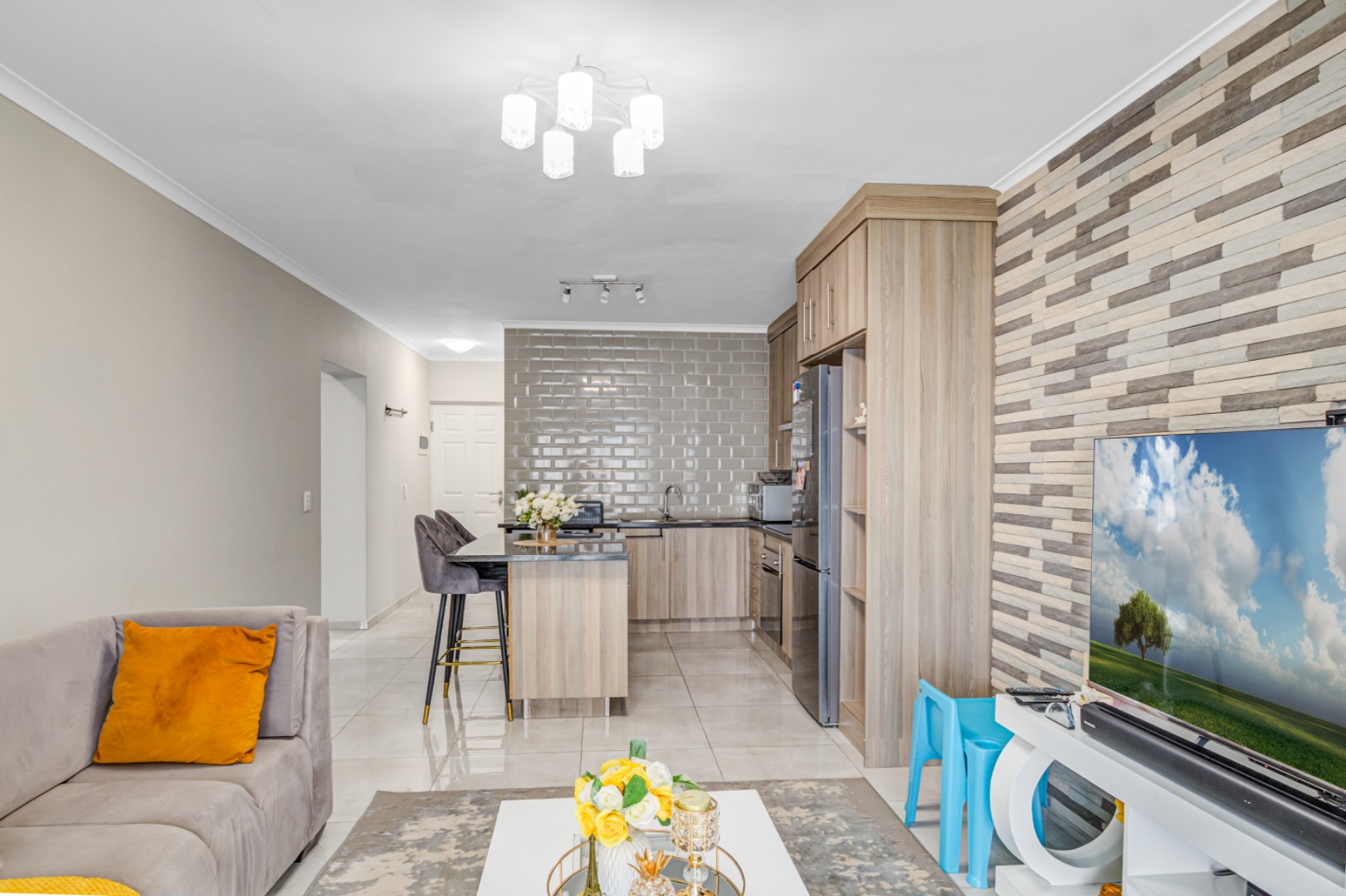 This modern 3-bedroom, 2-bathroom apartment offers comfortable and secure living in the sought-after Ruimsig suburb of Roodepoort. The contemporary open-plan design seamlessly connects the kitchen and living areas. The well-appointed kitchen features sleek wooden cabinetry, granite countertops, built-in appliances, and a convenient breakfast bar. The living space, enhanced by an accent wall, receives abundant natural light through large glass doors. Tiled flooring throughout ensures easy maintenance, complemented by a guest toilet. The apartment includes three spacious bedrooms, with the main bedroom boasting an en-suite bathroom. The additional bathroom serves the remaining bedrooms. Each bedroom offers a clean, neutral aesthetic and ample natural light, creating a serene retreat. Ideal for families or professionals, this apartment is within a well-maintained complex. Residents enjoy two dedicated parking bays and access to communal amenities, including a refreshing swimming pool, a garden, and an outdoor recreational play area. Security is paramount, with 24-hour security featuring a dedicated gatehouse, boom barriers, and a guard post ensuring controlled access. The property is further secured with an alarm system, electric fencing, security gates, and an intercom system. Ruimsig, a desirable Roodepoort area, offers suburban tranquility and convenient access to amenities. The complex features modern exterior designs, well-maintained green lawns, and mature trees, enhancing the living environment. Key Features: * 3 Bedrooms, 2 Bathrooms (1 En-suite) * Modern Open-Plan Living & Kitchen * Granite Countertops & Breakfast Bar * 2 Dedicated Parking Bays * Communal Swimming Pool & Garden * 24-Hour Security with Access Control * Alarm System & Electric Fencing * Recreational Play Area