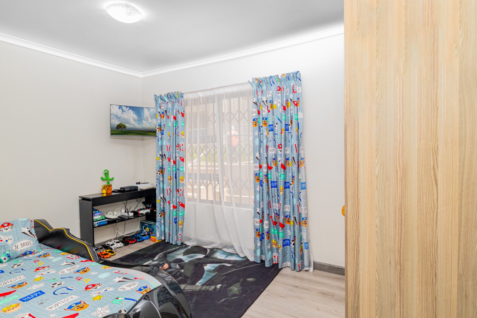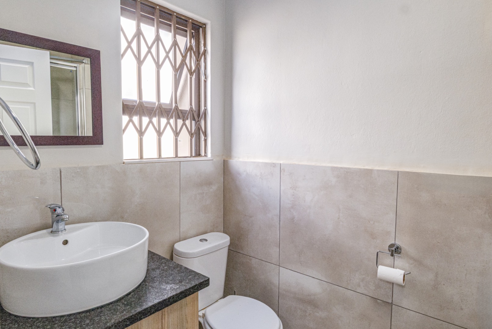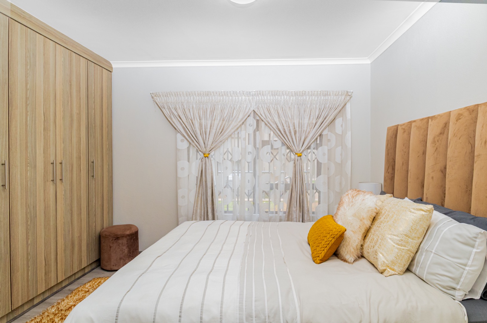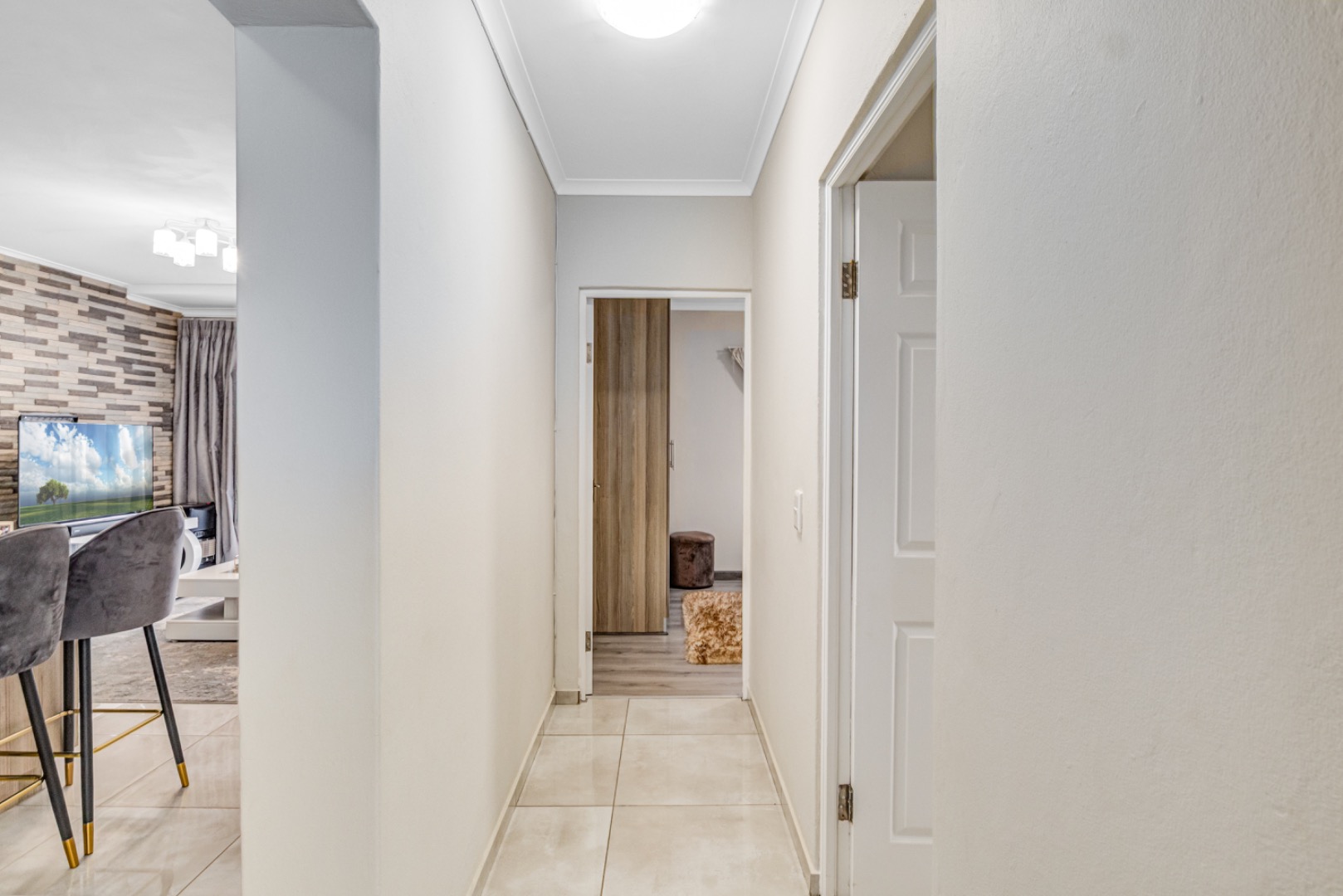This modern 3-bedroom, 2-bathroom apartment offers comfortable and secure living in the sought-after Ruimsig suburb of Roodepoort. The contemporary open-plan design seamlessly connects the kitchen and living areas. The well-appointed kitchen features sleek wooden cabinetry, granite countertops, built-in appliances, and a convenient breakfast bar. The living space, enhanced by an accent wall, receives abundant natural light through large glass doors. Tiled flooring throughout ensures easy maintenance, complemented by a guest toilet. The apartment includes three spacious bedrooms, with the main bedroom boasting an en-suite bathroom. The additional bathroom serves the remaining bedrooms. Each bedroom offers a clean, neutral aesthetic and ample natural light, creating a serene retreat. Ideal for families or professionals, this apartment is within a well-maintained complex. Residents enjoy two dedicated parking bays and access to communal amenities, including a refreshing swimming pool, a garden, and an outdoor recreational play area. Security is paramount, with 24-hour security featuring a dedicated gatehouse, boom barriers, and a guard post ensuring controlled access. The property is further secured with an alarm system, electric fencing, security gates, and an intercom system. Ruimsig, a desirable Roodepoort area, offers suburban tranquility and convenient access to amenities. The complex features modern exterior designs, well-maintained green lawns, and mature trees, enhancing the living environment. Key Features: * 3 Bedrooms, 2 Bathrooms (1 En-suite) * Modern Open-Plan Living & Kitchen * Granite Countertops & Breakfast Bar * 2 Dedicated Parking Bays * Communal Swimming Pool & Garden * 24-Hour Security with Access Control * Alarm System & Electric Fencing * Recreational Play Area