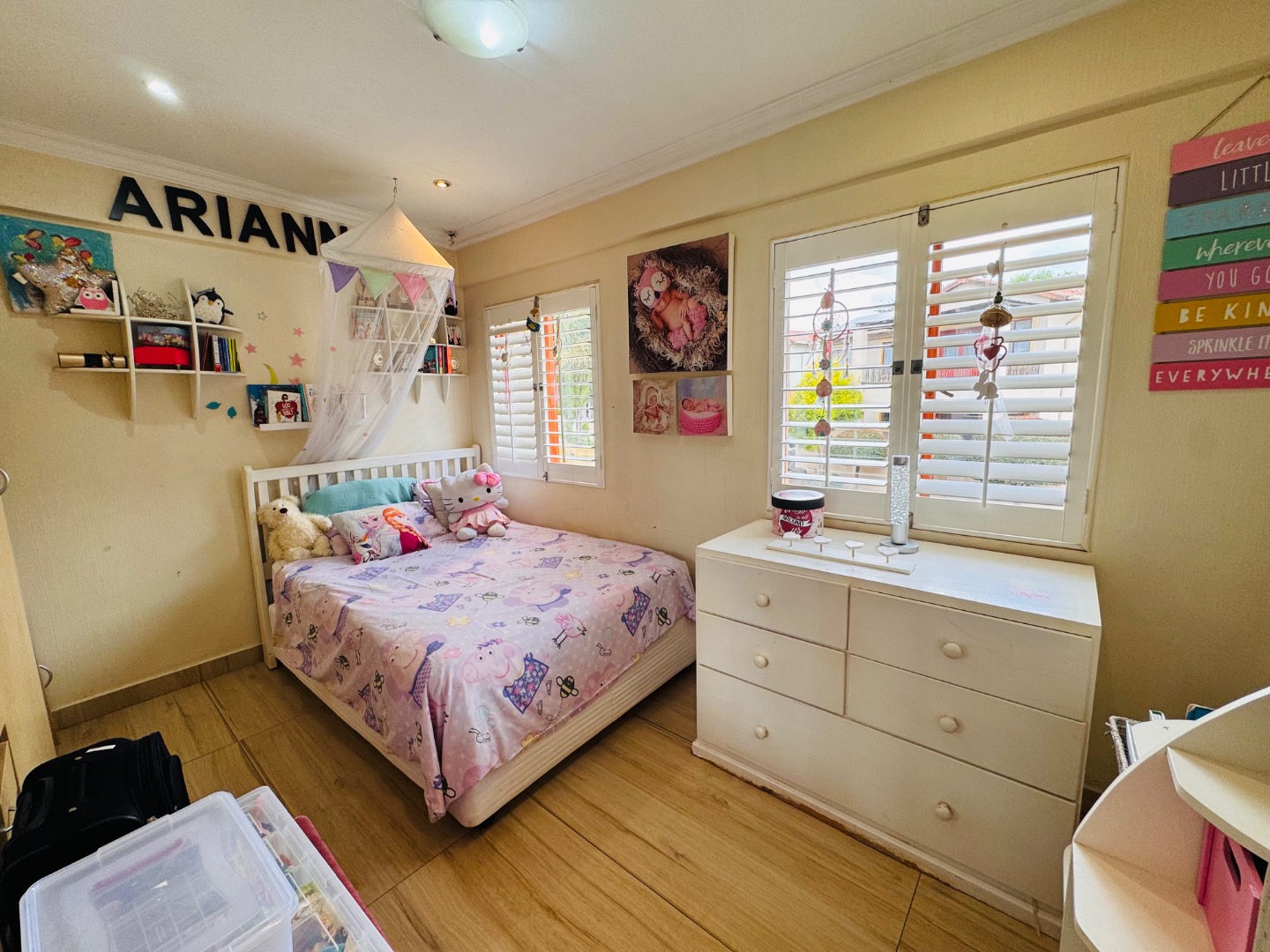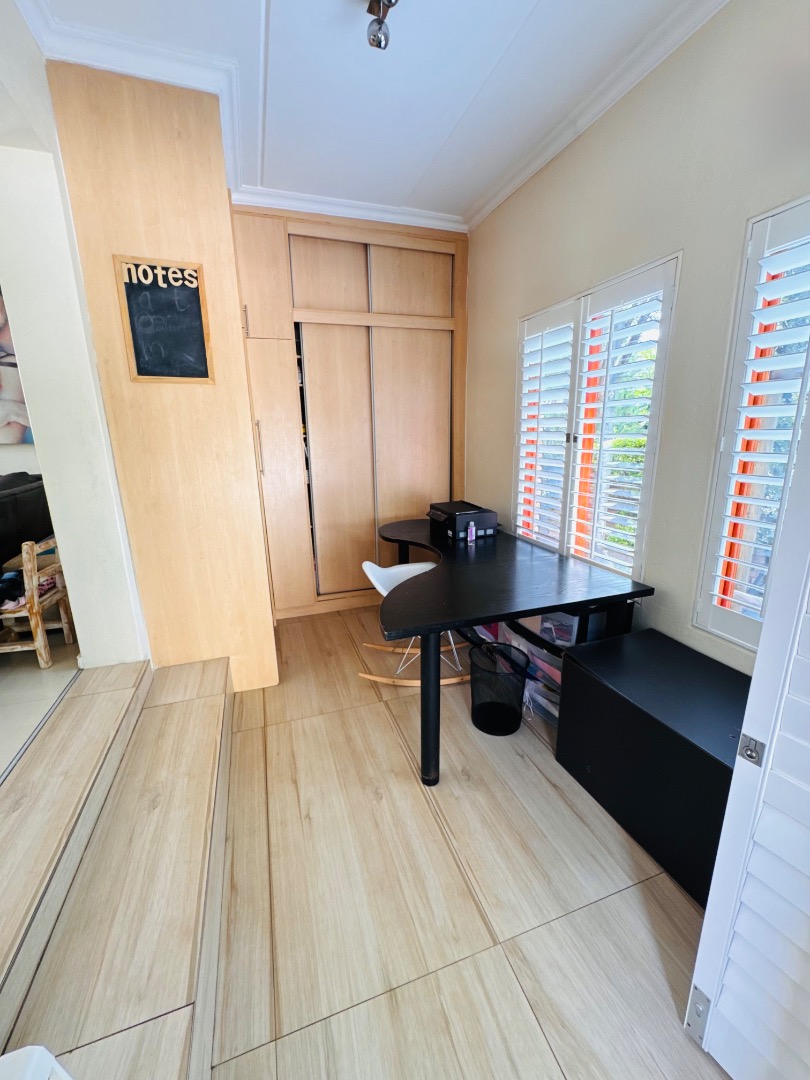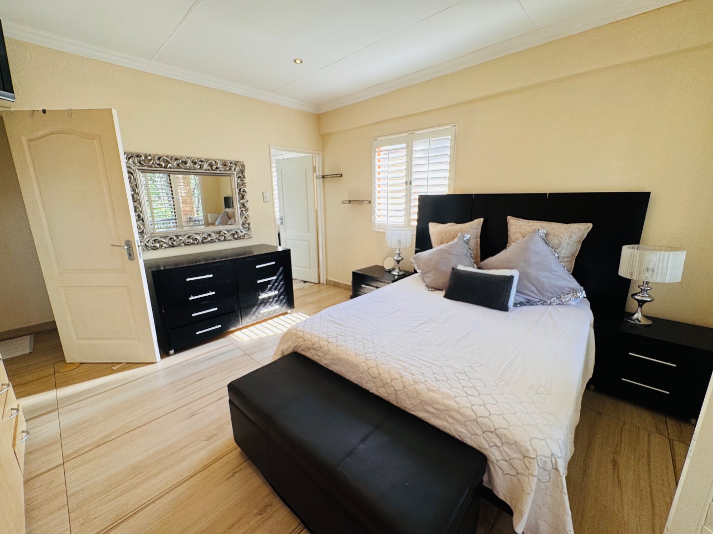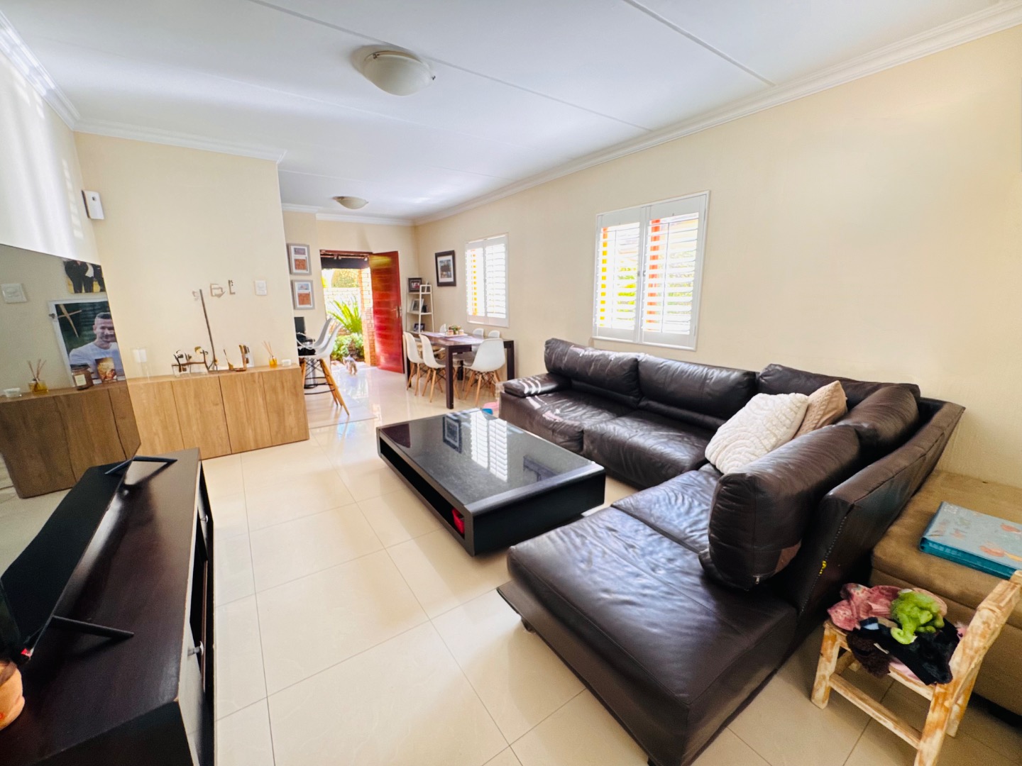 This inviting 3-bedroom, 2-bathroom home, with one en-suite, offers comfortable living in Riverbush Willows Estate, Willowbrook. The open-plan layout seamlessly connects the lounge, dining area, and a well-appointed kitchen featuring granite countertops, stainless steel appliances, a pantry, and a breakfast bar. Tiled flooring and abundant natural light enhance the interior, while a dedicated study provides an ideal space for work. American shutters are fitted through out the home. Outdoors, a private backyard oasis awaits, complete with a refreshing pool, paved patio for entertaining, and private garden. Enjoy the spacious covered balcony and patio, offering lush green views. A double garage and additional parking are provided, and pets are allowed, making this home perfect for families.