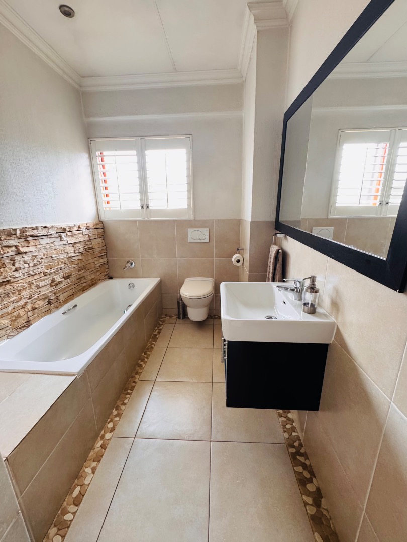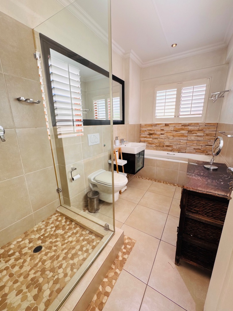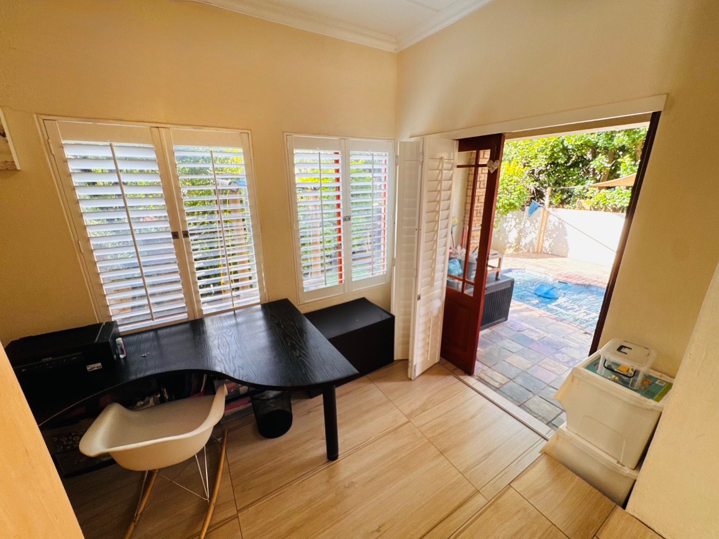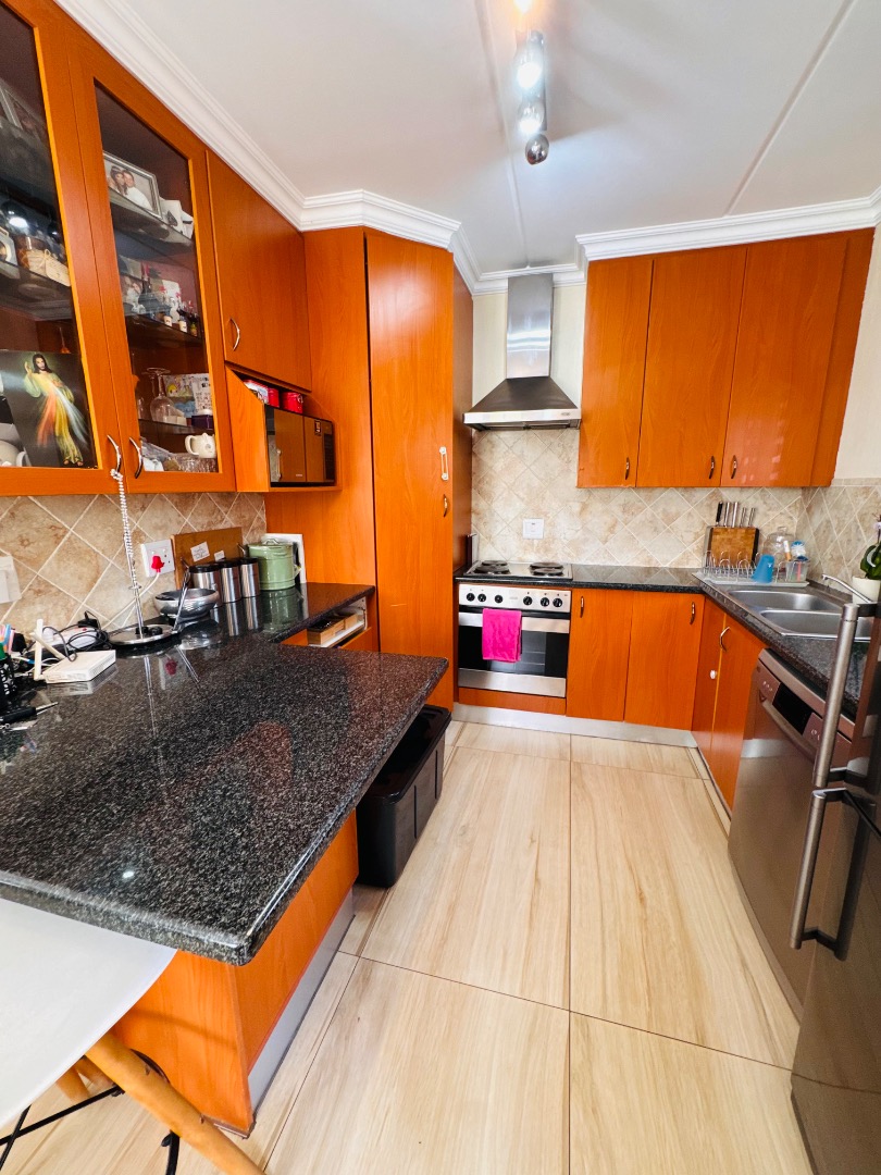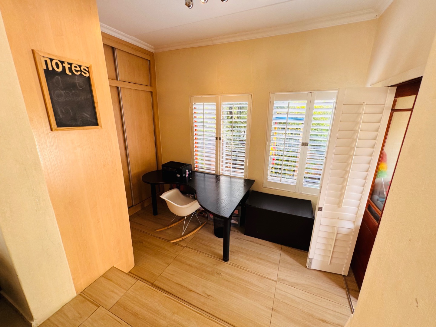 This inviting 3-bedroom, 2-bathroom home, with one en-suite, offers comfortable living in Riverbush Willows Estate, Willowbrook. The open-plan layout seamlessly connects the lounge, dining area, and a well-appointed kitchen featuring granite countertops, stainless steel appliances, a pantry, and a breakfast bar. Tiled flooring and abundant natural light enhance the interior, while a dedicated study provides an ideal space for work. American shutters are fitted through out the home. Outdoors, a private backyard oasis awaits, complete with a refreshing pool, paved patio for entertaining, and private garden. Enjoy the spacious covered balcony and patio, offering lush green views. A double garage and additional parking are provided, and pets are allowed, making this home perfect for families.