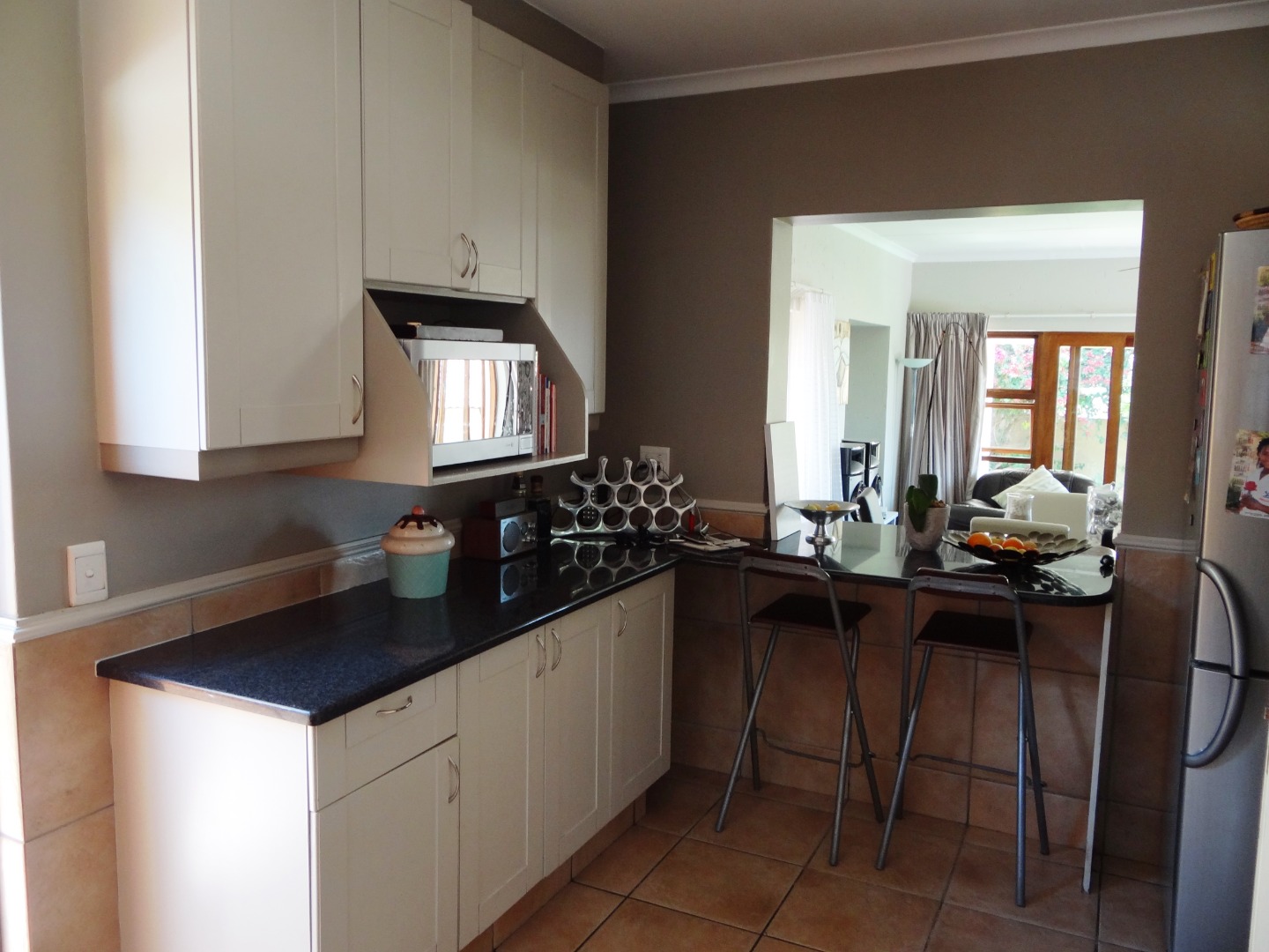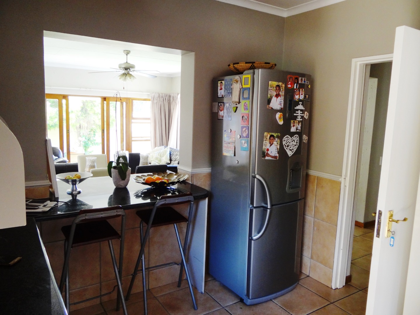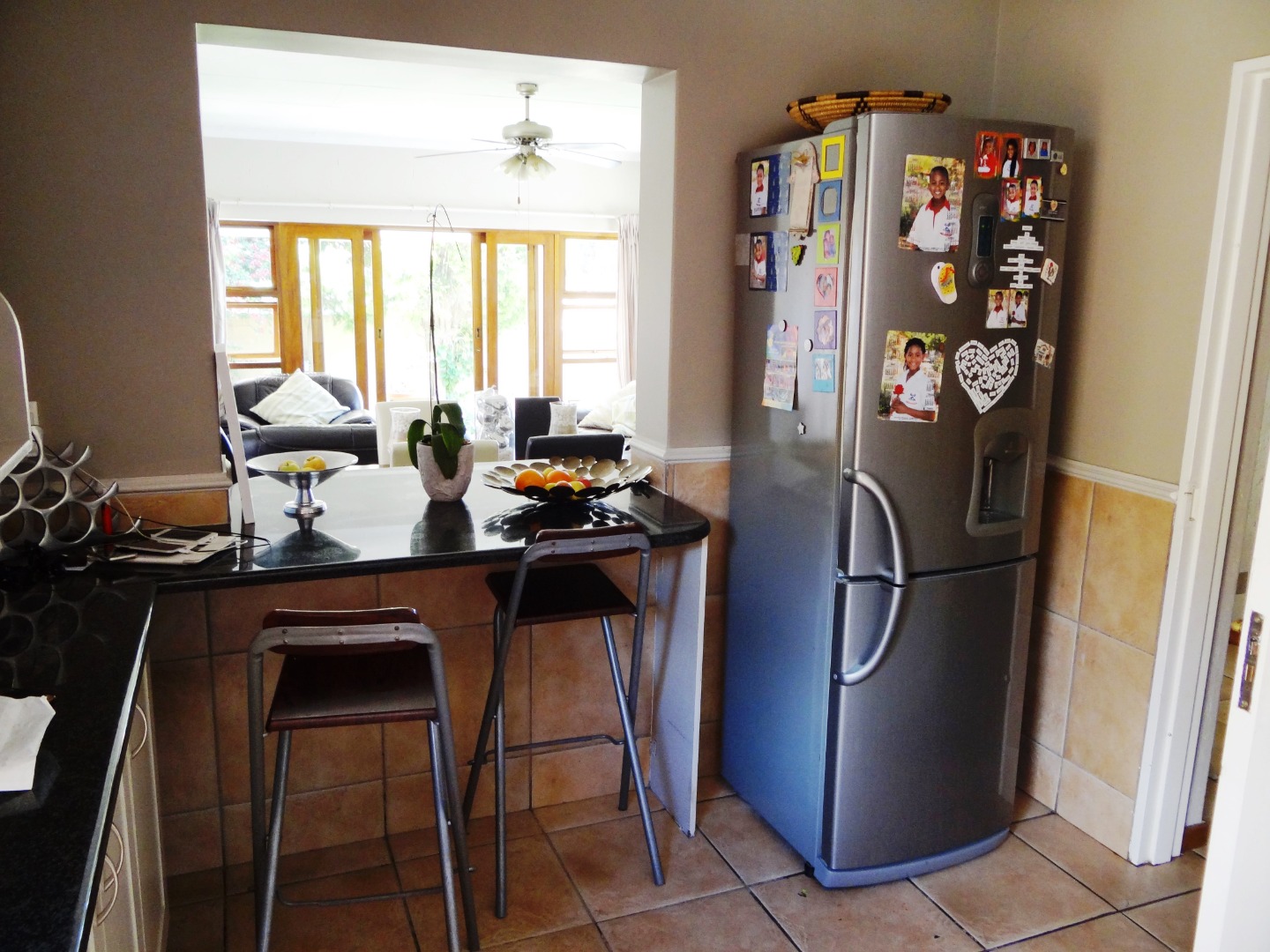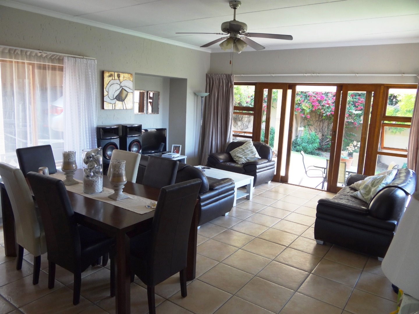 Open plan dinning and lounge area leads out onto a lovely large patio set in a beautiful garden. Large kitchen with granite tops and space for 3 appliances and double fridge.