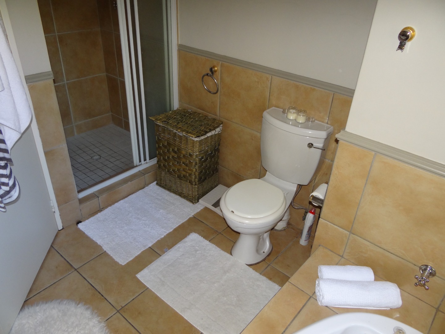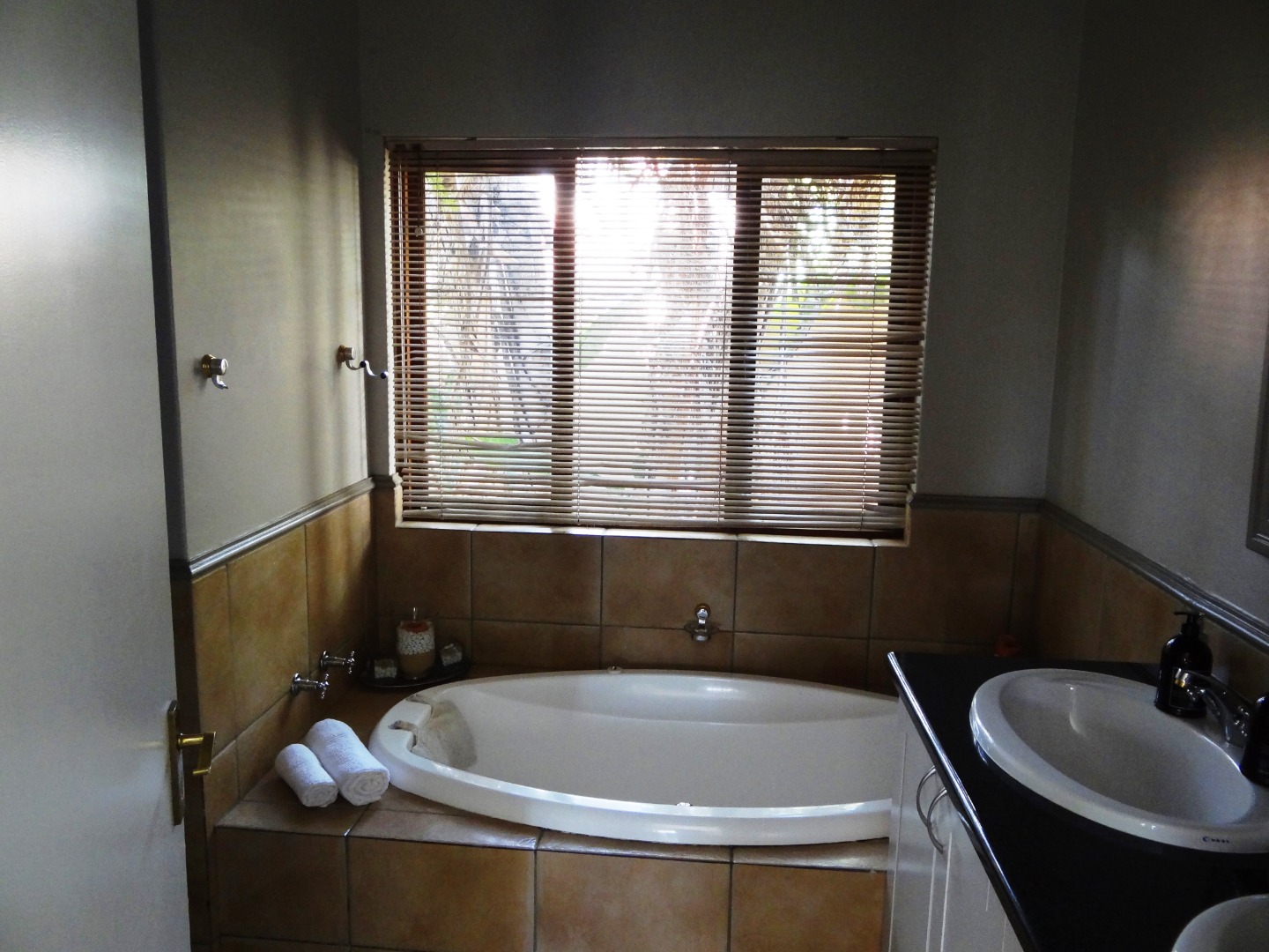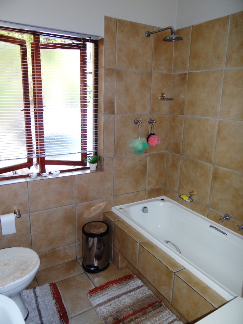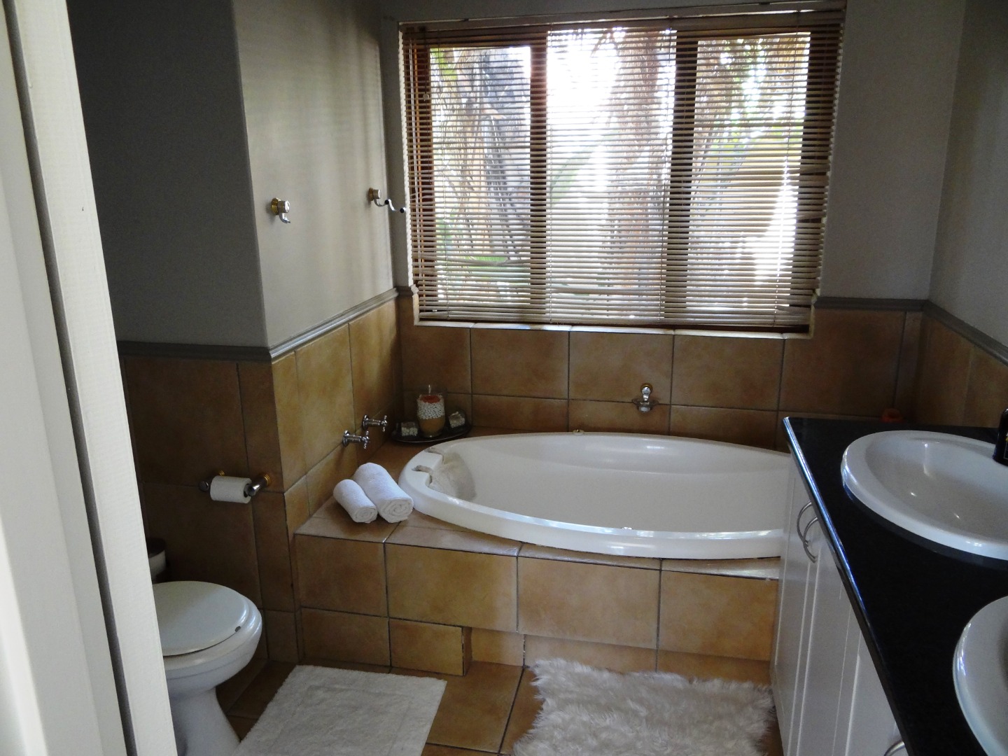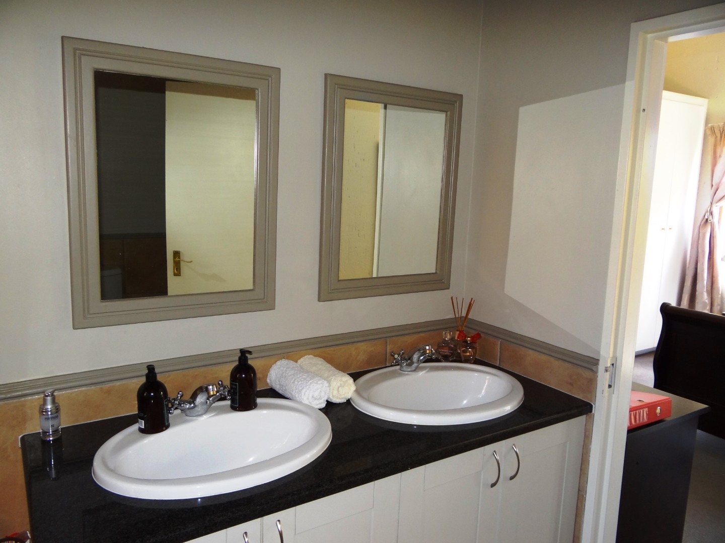 Linen cupboard. 3 bedrooms and 2 bathrooms. All bedrooms have built in cupboards and tiled throughout. Second bathrtoom has a bath, vanity and toilet. Main bedroom has lots of built in cupboards it flows out onto garden. Main ensuite has double vanity, shower and bath.