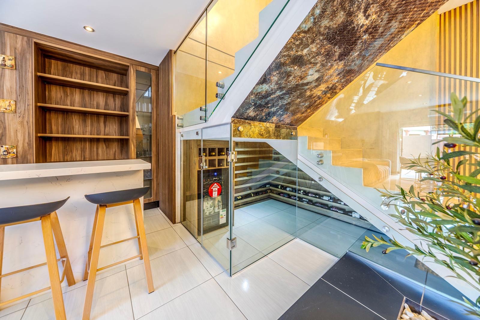 For those who enjoy hosting gatherings, there is a mini bar in the entertainment area, complete with a wine fridge and bar stools. The double garage provides secure parking for two vehicles, with additional space for storage.
