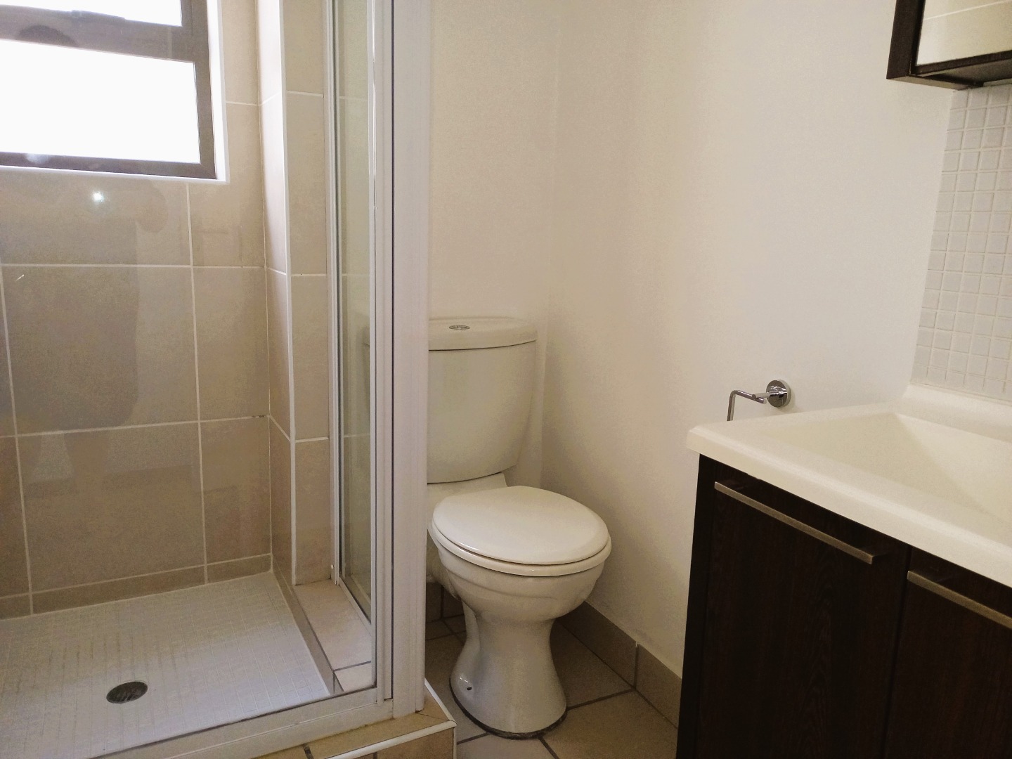 The airy open kitchen (space for 2 appliances) and living area provide a perfect intro to the rear of this apartment