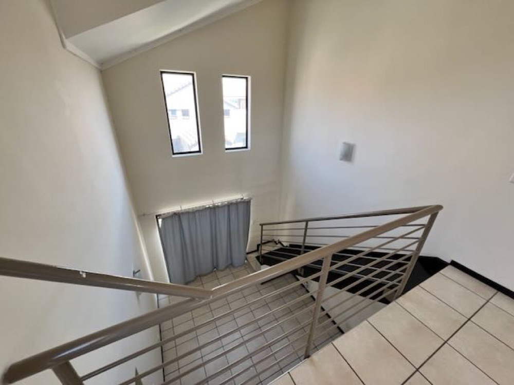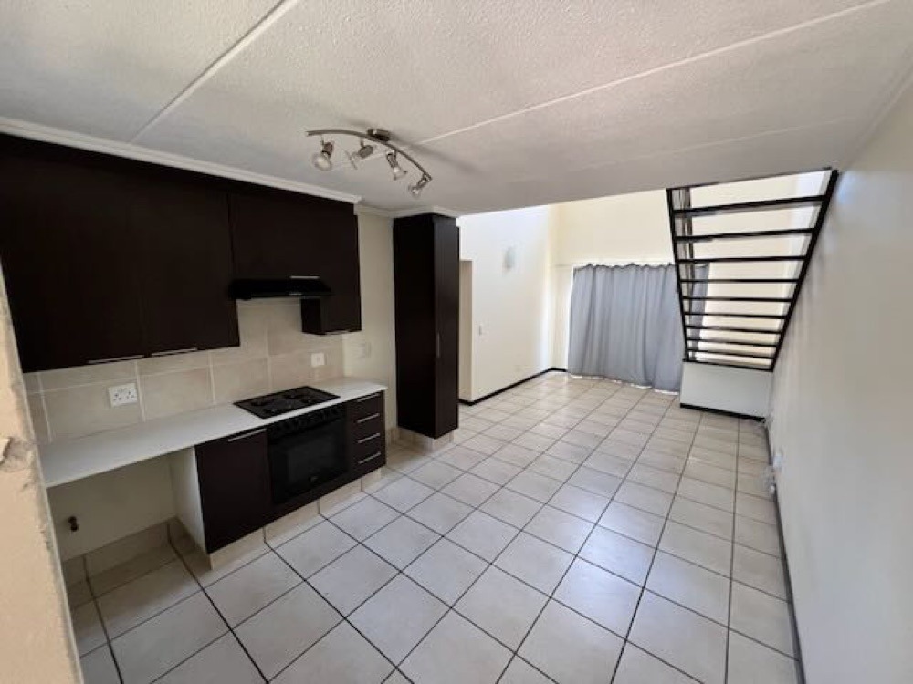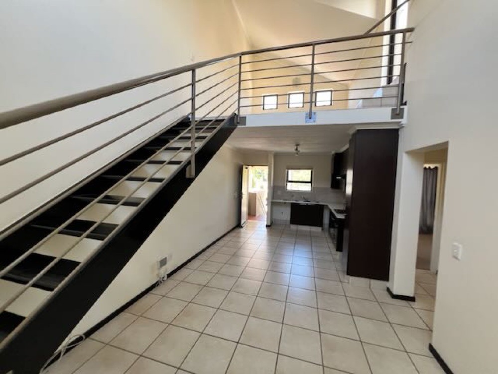 Discover modern loft living in this stylish 2-bedroom, 1-bathroom apartment spanning 102 sqm, situated within a secure residential complex. The open-plan layout is accentuated by impressive high vaulted ceilings and practical tiled flooring throughout, creating an airy and contemporary atmosphere. The compact yet functional kitchen features sleek dark wood cabinetry, an integrated stove and oven, and ample counter space, perfect for daily living. A dedicated lounge and dining area seamlessly connect, offering versatile space for relaxation and entertaining. This property is ideal for professionals or small families seeking a convenient lock-up-and-go lifestyle within a vibrant suburban setting. Enjoy the outdoors with a private balcony and patio, offering scenic views and a tranquil space for unwinding. Residents also benefit from access to a communal swimming pool and clubhouse, enhancing the lifestyle offerings within the development. The modern design, including a contemporary metal-railed staircase leading to the loft, adds to the property's appeal. Security is paramount, featuring 24-hour security, a security post, and an access gate with an intercom system, ensuring peace of mind for all residents. The property is fibre-ready, providing high-speed internet connectivity essential for modern work and leisure. Dedicated parking for two vehicles is available, with well-maintained paved driveways and walkways throughout the grounds, reflecting a commitment to resident convenience and safety. Located in Bryanston, Sandton, this sought-after suburb offers a desirable metropolitan lifestyle with easy access to amenities, business hubs, and entertainment. This residence provides a serene retreat while being close to everything you need. Key Features: * 2 Bedrooms, 1 Bathroom * 102 sqm Floor Size * Open-plan living with high vaulted ceilings * Modern kitchen with integrated appliances * Private balcony and patio with scenic views * Communal pool and clubhouse access * 24-hour security, access gate, intercom * Fibre-ready connectivity * 2 Dedicated parking bays