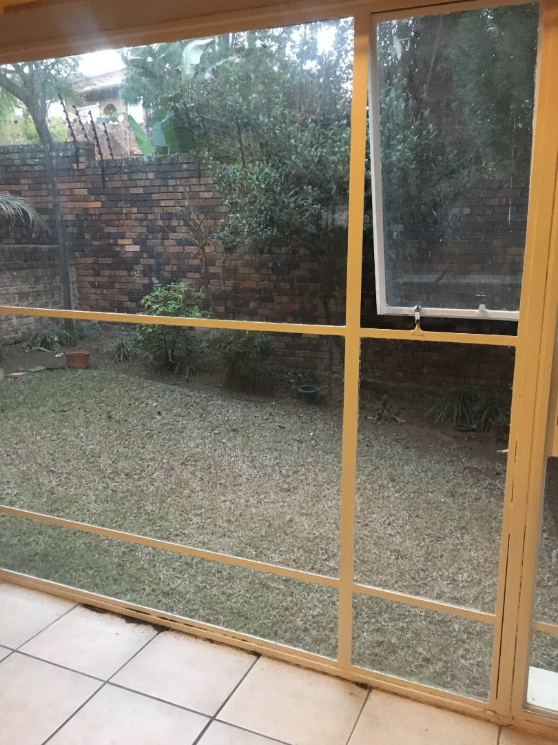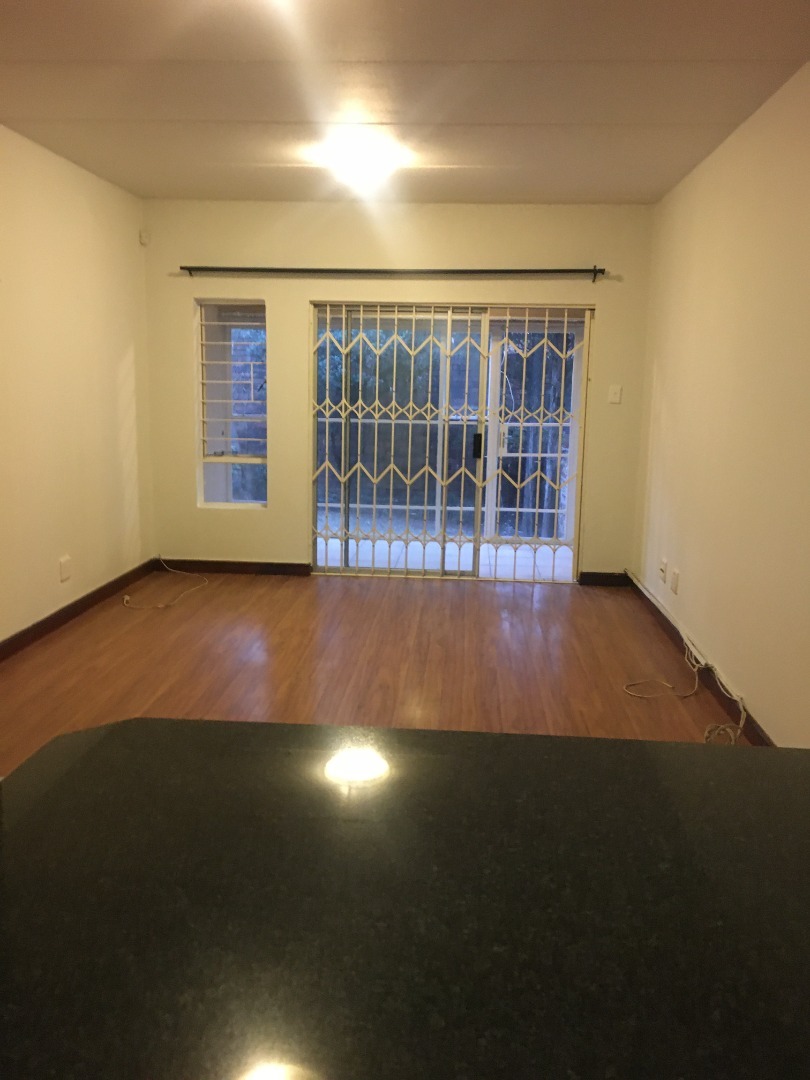 This unit boasts 2 bedrooms and 2 bathrooms (main en-suite). The primary bedroom's bathroom features a rejuvenating shower, while the second bathroom offers a relaxing tub. Step inside to discover remarkably spacious open-plan living areas, including a dining space suitable for a standard 6-seater table and a cozy lounge suite. The lounge gracefully extends onto an enclosed patio, providing a charming view of the private garden. The kitchen offers ample cupboard space and a designated space for a washing machine. A generously sized corner pantry, room for a single-door fridge, and a delightful breakfast nook complete the kitchen amenities. The unit features easy-to-maintain wooden flooring throughout, making cleaning effortless. Safety is a top priority, with a security trellis door at the patio entrance and a gate securing the main entrance. Furthermore, the complex provides 24-hour security, a refreshing swimming pool, and a welcoming clubhouse. Conveniently situated near the Woodmead retail center, the Buccleuch Montessori primary schools, restaurants, and various amenities, this unit offers easy access to the highway.