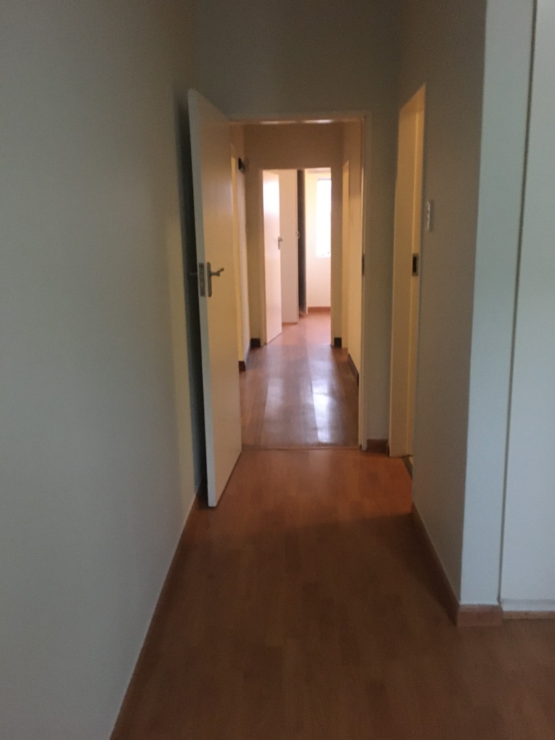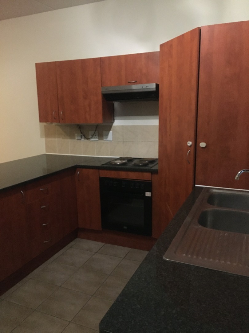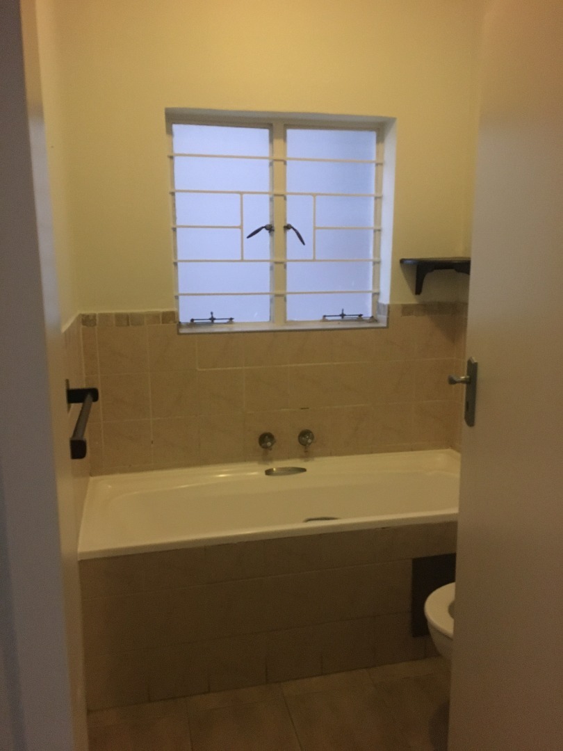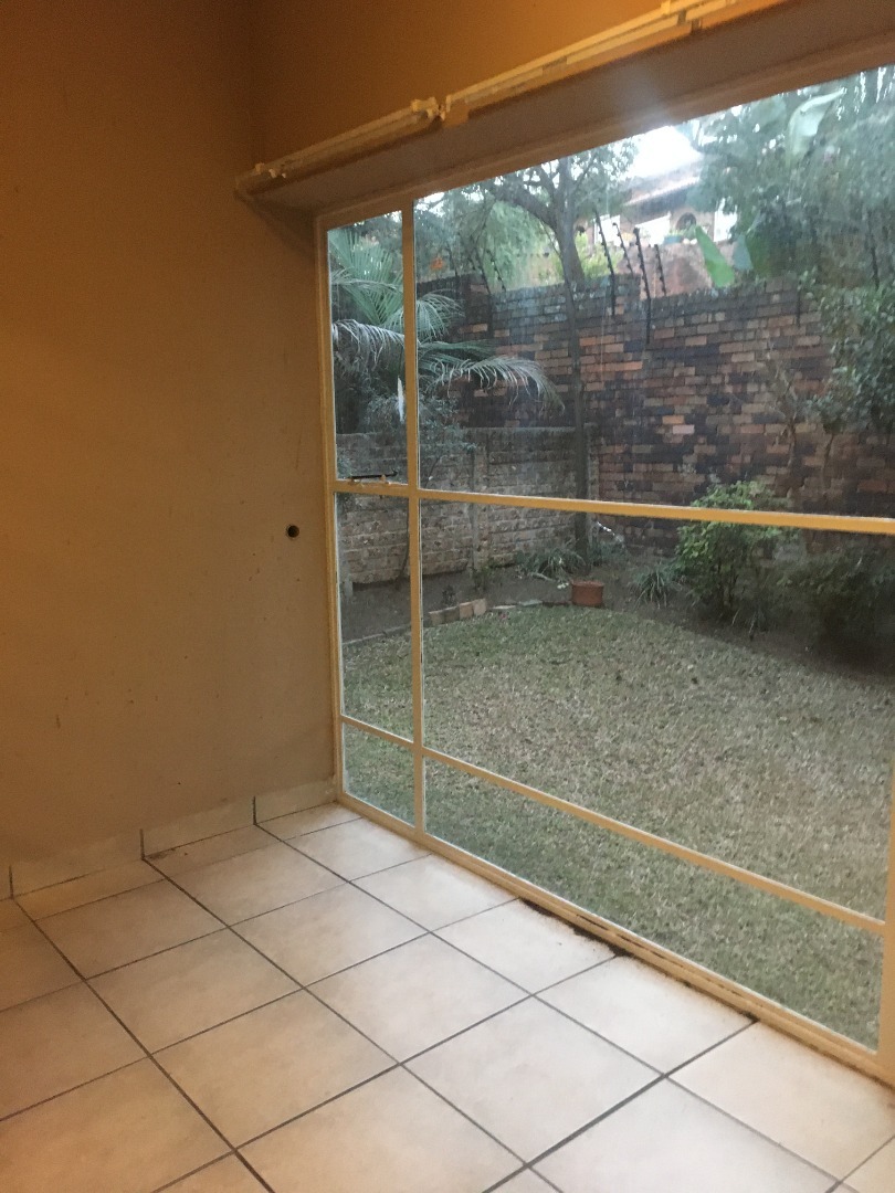 This unit boasts 2 bedrooms and 2 bathrooms (main en-suite). The primary bedroom's bathroom features a rejuvenating shower, while the second bathroom offers a relaxing tub. Step inside to discover remarkably spacious open-plan living areas, including a dining space suitable for a standard 6-seater table and a cozy lounge suite. The lounge gracefully extends onto an enclosed patio, providing a charming view of the private garden. The kitchen offers ample cupboard space and a designated space for a washing machine. A generously sized corner pantry, room for a single-door fridge, and a delightful breakfast nook complete the kitchen amenities. The unit features easy-to-maintain wooden flooring throughout, making cleaning effortless. Safety is a top priority, with a security trellis door at the patio entrance and a gate securing the main entrance. Furthermore, the complex provides 24-hour security, a refreshing swimming pool, and a welcoming clubhouse. Conveniently situated near the Woodmead retail center, the Buccleuch Montessori primary schools, restaurants, and various amenities, this unit offers easy access to the highway.