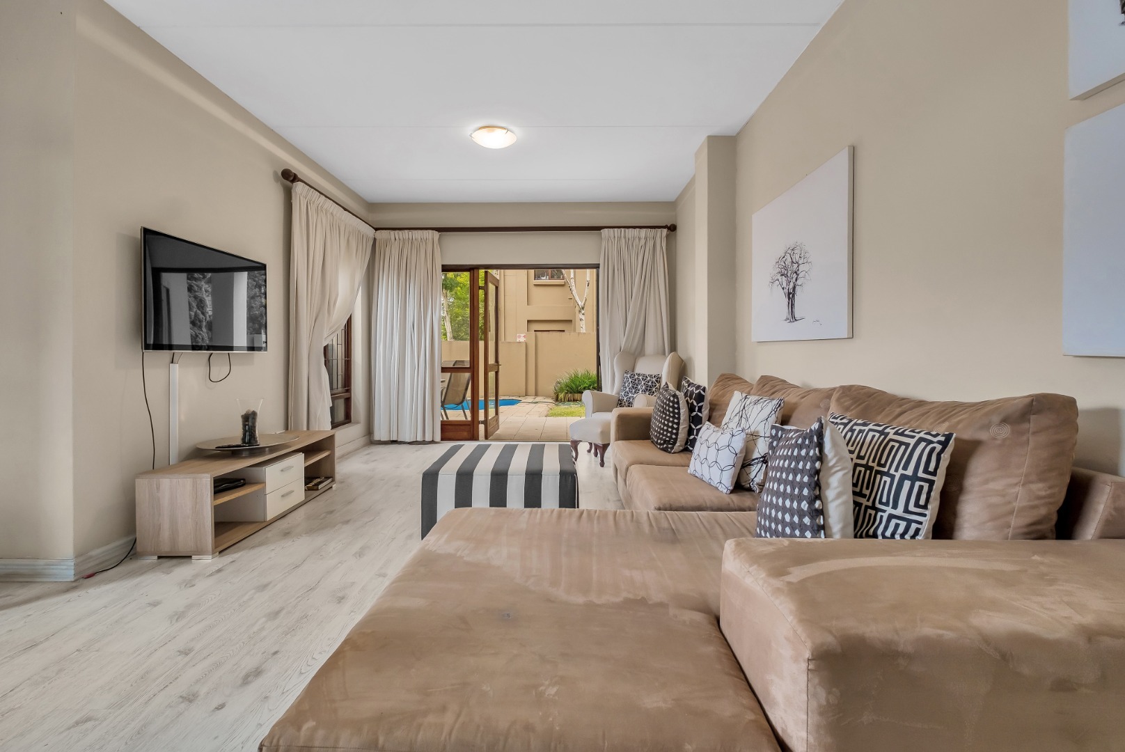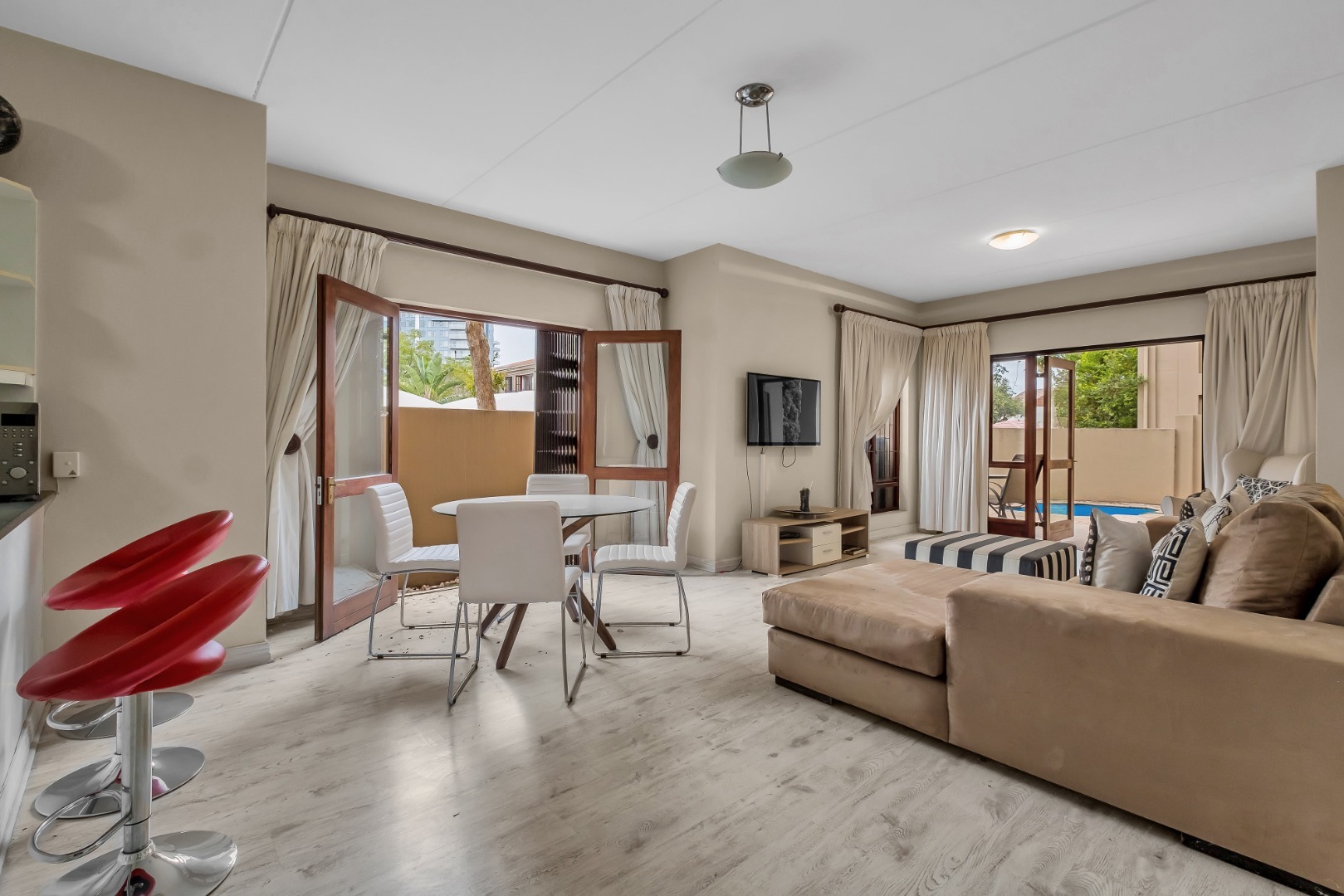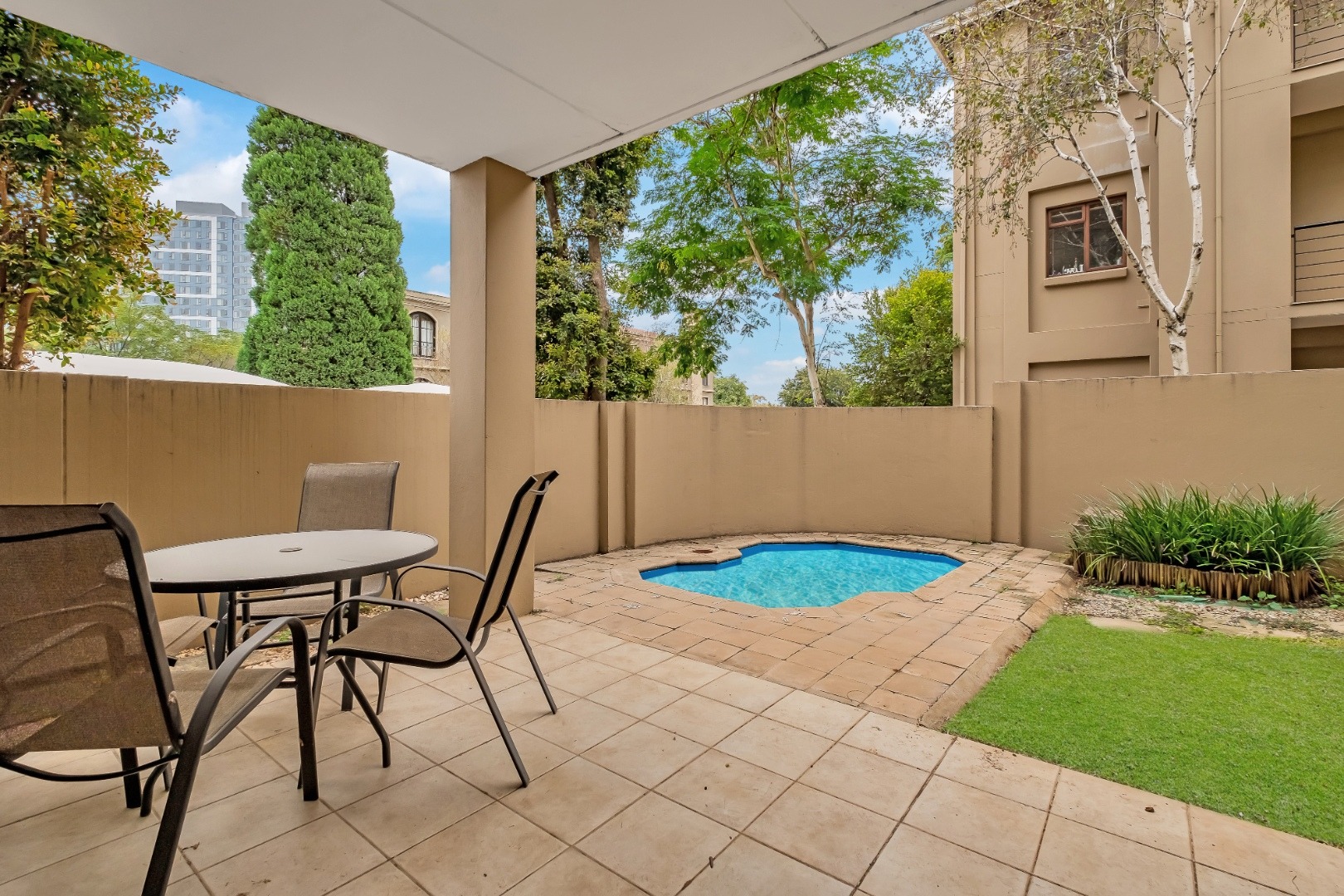 Full furnished executive ground floor apartment with private garden and splash pool within walking distance of Investec, Benmore Shopping Centre and Crawford Sandton. Ideal corporate rental. All amenities supplied – just bring your bags and move in!