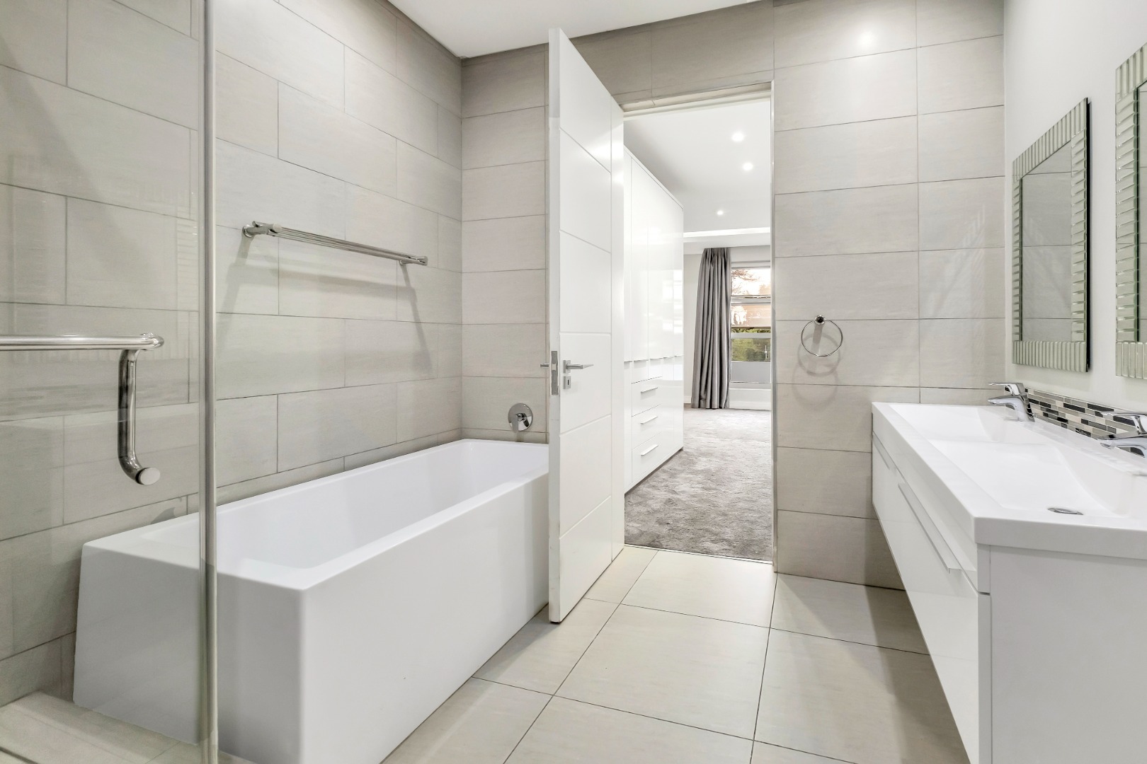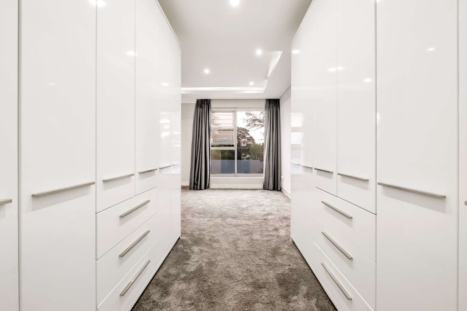 The master bedroom boasts a generous walk-through dressing area leading to a full en-suite bathroom with double vanities.