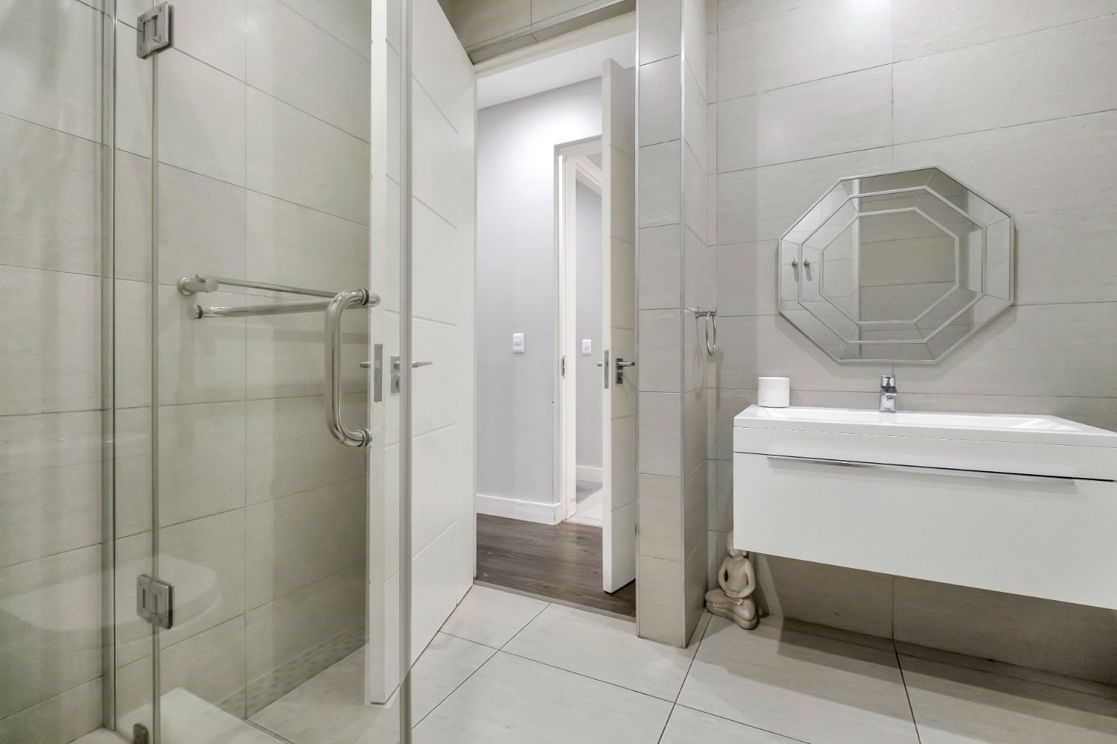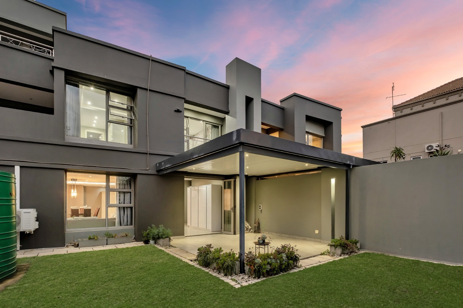 Upstairs, a spacious pyjama lounge with its own coffee counter and prep sink opens onto an airy balcony. Three well-appointed bedrooms, all en suite and with modern built-in cupboards, offer comfort and privacy. Two are north-facing, and each bedroom enjoys direct access to a balcony.