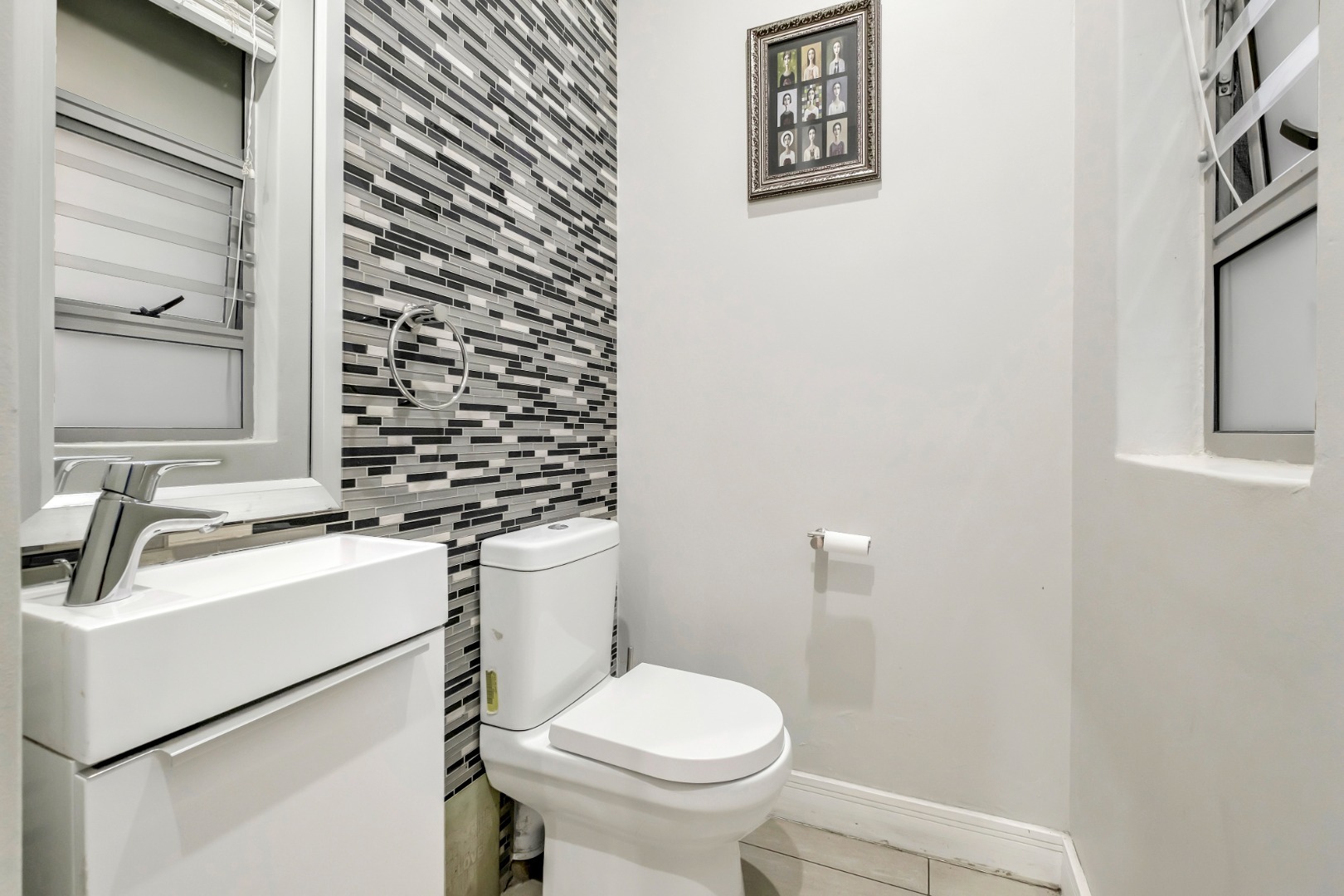 The state-of-the-art kitchen features sleek Caesarstone counters and a generous centre island perfect for hosting guests and family. Additional features include an eye-level oven and microwave, electric stove, double sink, space for a double-door fridge and two under-counter appliances. A convenient guest cloakroom completes the downstairs layout.