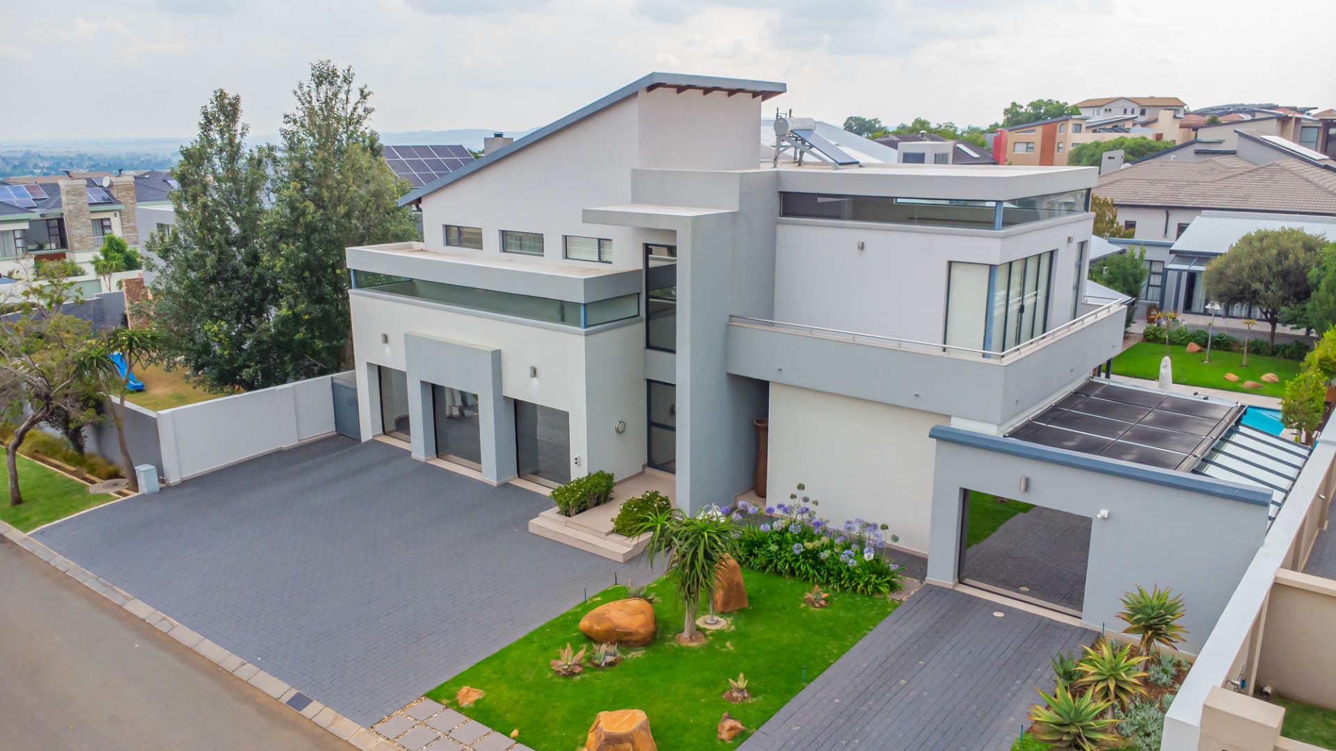 An added bonus is a separate flatlet, ideal as a guest suite, au pair accommodation, or for household staff. The property is further enhanced by four garages with additional space, ideal for extra toys such as motorbikes, or recreational equipment.
