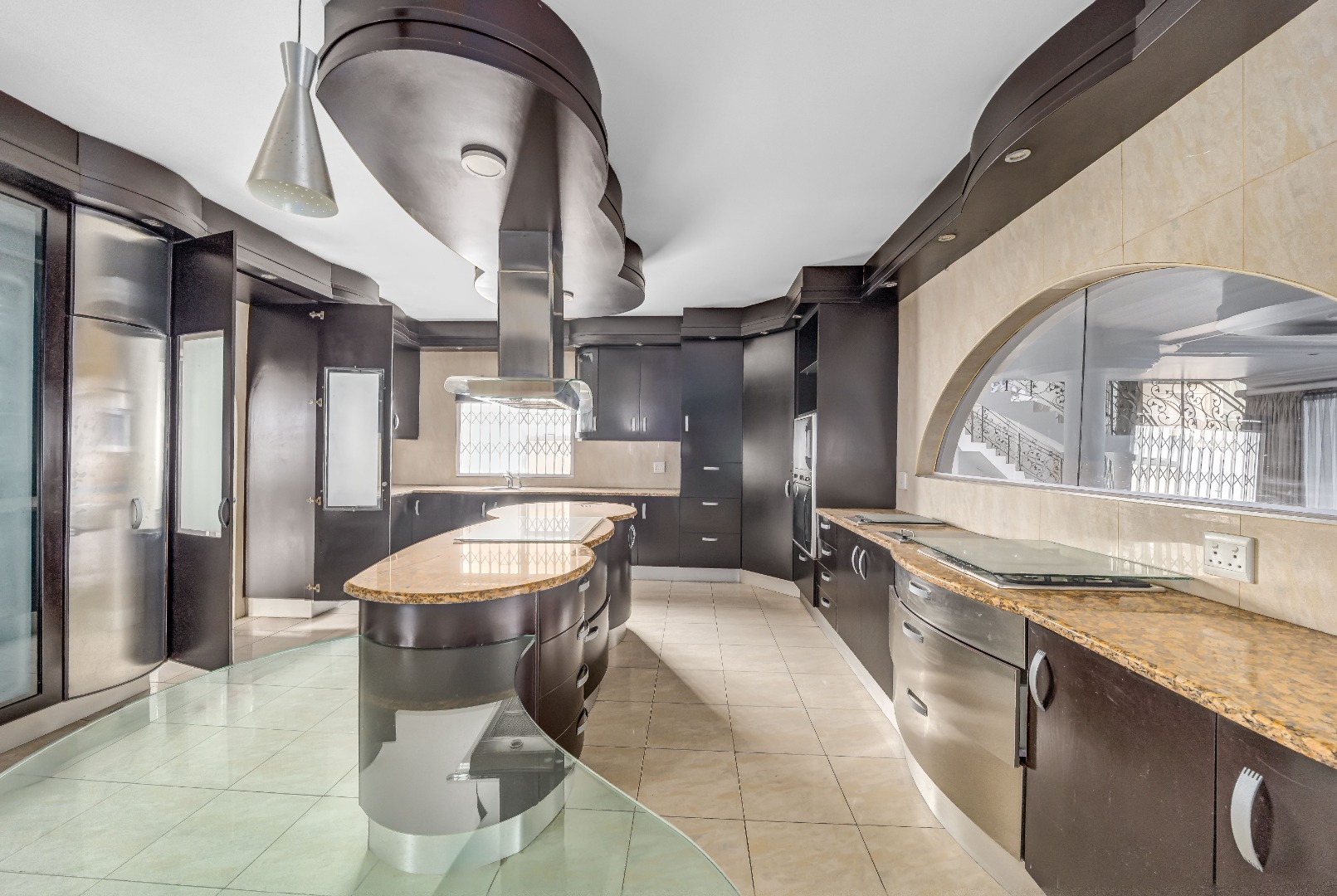 The lower level further offers an informal lounge that can be utilised as a private study or guest suite, a state-of-the-art kitchen fitted with generous cabinetry, pantry, double ovens, and a separate scullery, as well as a private cinema room for immersive entertainment. A discreet guest cloakroom completes this level.