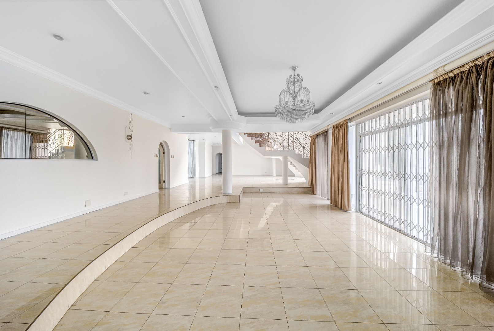 A striking double-volume foyer sets the tone on arrival, where expansive windows invite abundant natural light and showcase the home’s architectural presence. The open-plan formal lounge, dining room, and entertainment space flow seamlessly, creating a refined yet inviting environment ideal for hosting on any scale. Floor-to-ceiling sliding doors open onto an immaculate lawn overlooking the Pan, while a second set of doors connects to the pool and outdoor entertainment area; perfectly balancing indoor-outdoor living.