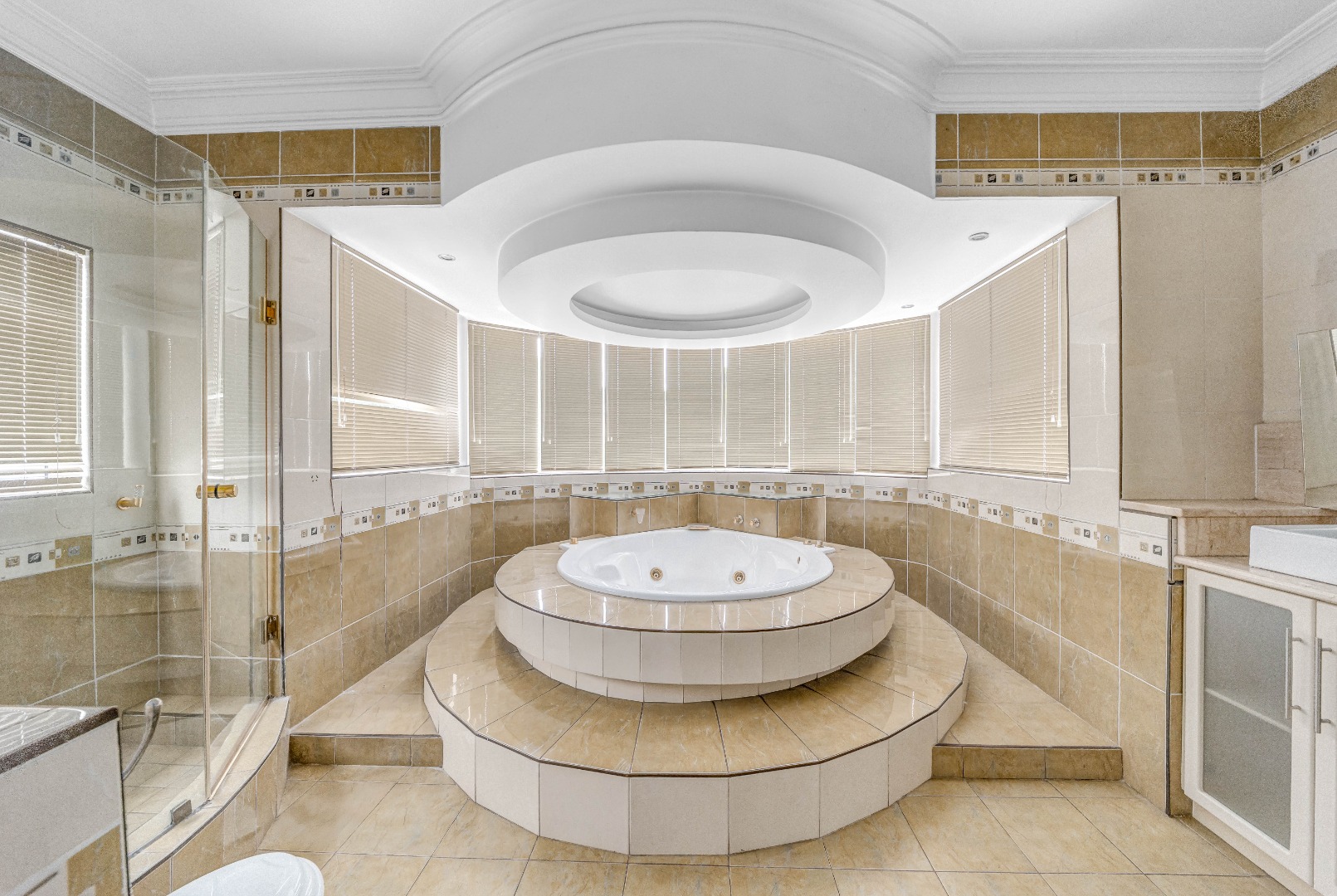 The main suite is a private sanctuary, featuring a walk-in dressing room, exclusive balcony, and a full en-suite bathroom with his-and-her basins, jet bath, and expansive shower. The remaining bedrooms are generously proportioned; each finished with bespoke cabinetry and contemporary en-suite bathrooms. An upstairs entertainment area with Jacuzzi completes the upper level, ideal for evening relaxation.