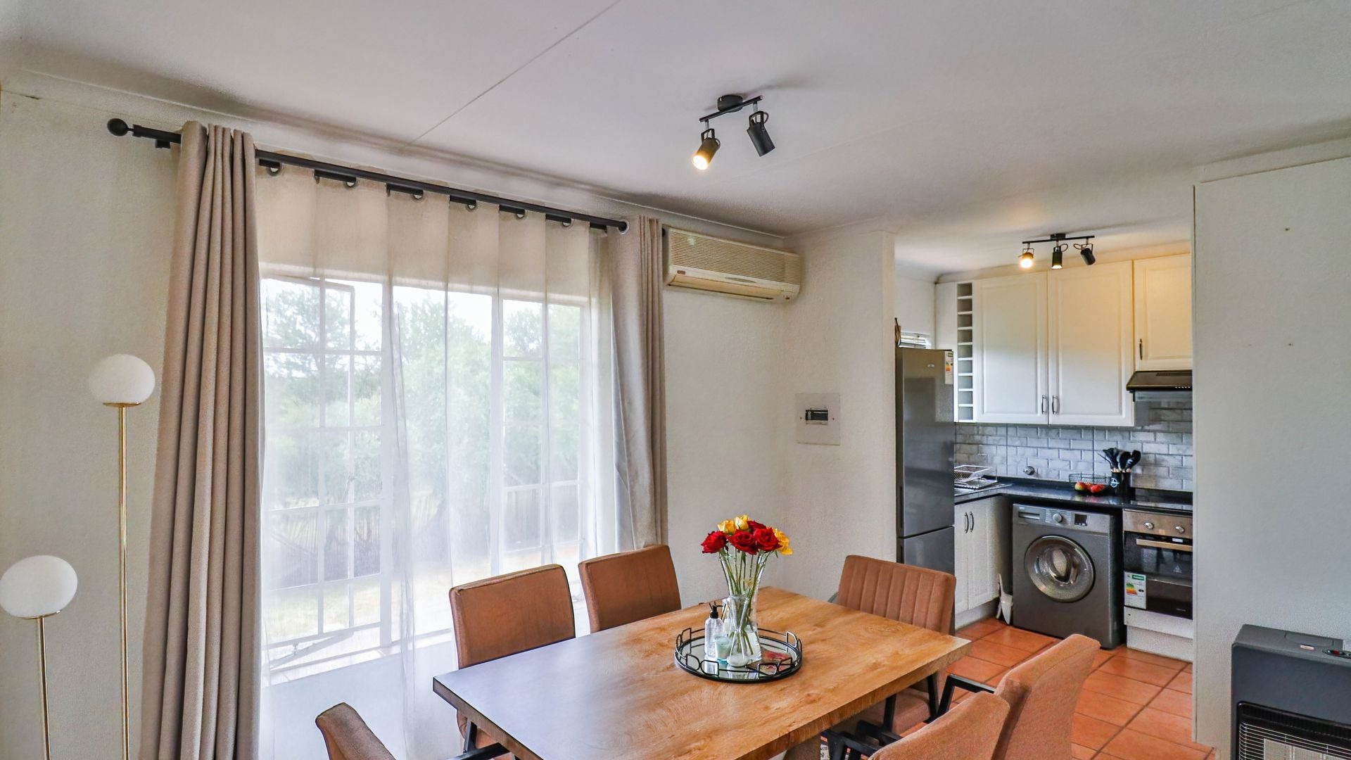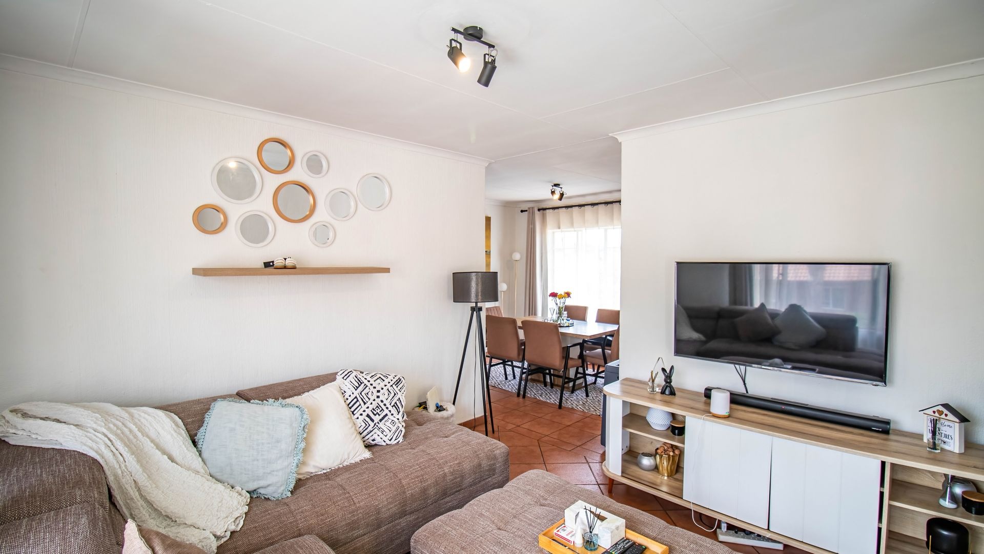 Discover this inviting 3-bedroom residence, perfectly situated within a secure complex in the desirable Highveld suburb of Centurion. Boasting a sturdy brick exterior and a classic tiled roof, this property offers a comfortable suburban lifestyle with convenient access to local amenities. Spanning a generous 110 sqm, the home features a welcoming entrance hall that leads into a spacious lounge and a dedicated dining room, ideal for both daily living and entertaining. The well-appointed kitchen includes a practical pantry, ensuring ample storage. Comfort is paramount with air conditioning and central heating, while sliding doors create a seamless indoor-outdoor flow to the private patio areas. Modern track lighting enhances the ambiance of the living spaces. Accommodation comprises three comfortable bedrooms, providing ample space for family or guests. The main bedroom benefits from a private en-suite bathroom, offering a personal retreat. A second full bathroom and a convenient guest toilet cater to the needs of the household. Step outside to a spacious, tiled patio and balcony, featuring partial overhead cover and dedicated outdoor seating areas, perfect for relaxation or al fresco dining while enjoying scenic views. The complex further enhances your lifestyle with a communal swimming pool and clubhouse. Practical amenities include a single garage and an additional parking bay, and the property is pet-friendly. Residents benefit from robust security measures, including an access gate, electric fencing, a security post, intercom system, and 24-hour security, ensuring peace of mind. Fibre connectivity is also available, supporting modern living and remote work needs. Highveld, Centurion, is a sought-after suburban area known for its tranquil environment and excellent connectivity to major routes and essential services, making it an ideal location for families and professionals. Key Features: * 3 Bedrooms, 2 Bathrooms (1 En-suite) * 110 sqm Floor Size * Spacious Tiled Patio & Balcony * Air Conditioning & Central Heating * Communal Pool & Clubhouse * Single Garage & Additional Parking * 24-Hour Security & Fibre Connectivity * Pet-Friendly Environment * Scenic Views