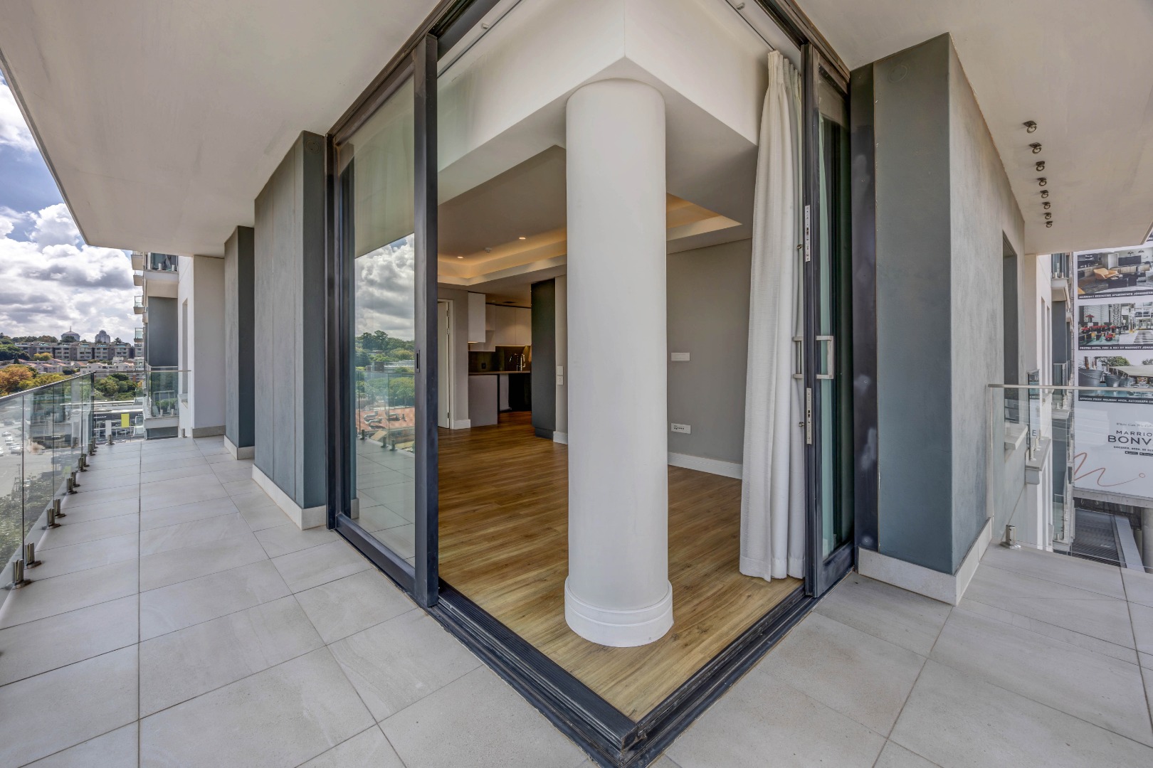 Step into a beautifully designed, light-filled living space where sleek, glossy tiled floors and contemporary finishes create an atmosphere of refined elegance. The open-plan lounge and dining area flow effortlessly onto a private balcony, where breath-taking panoramic views stretch endlessly, an ideal setting for both relaxed mornings and sunset entertaining.