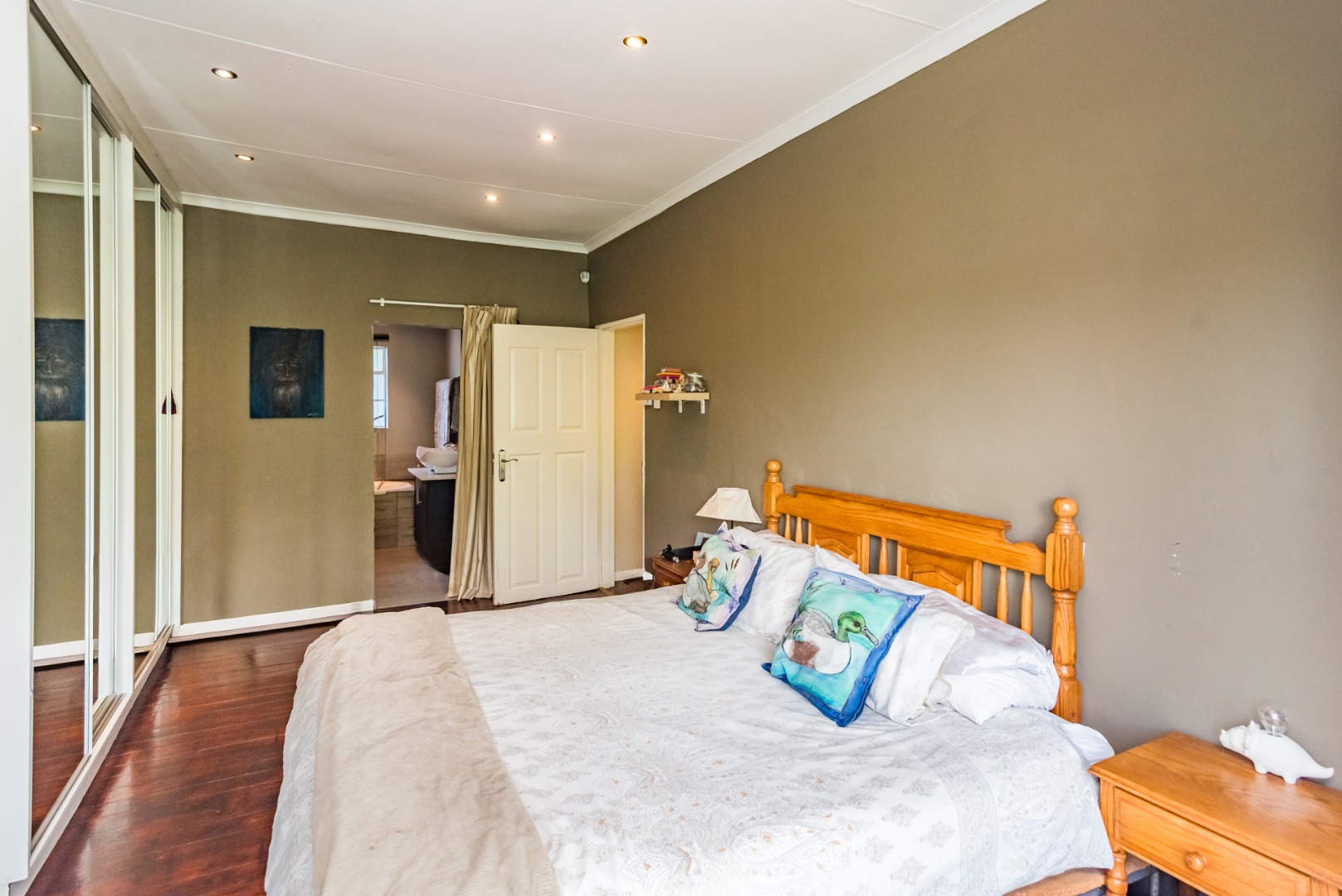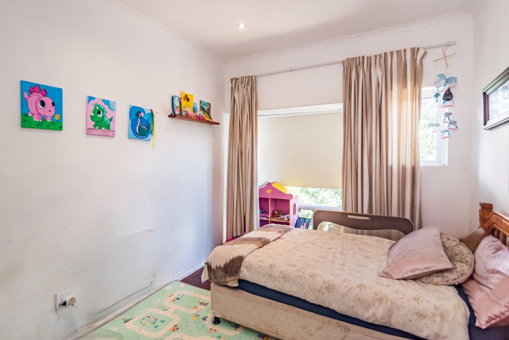 The upper level offers 2 bedrooms both with lovely large bay windows and built in cupboards. The main bedroom includes a generous en-suite. The family bathroom is conveniently located off the passage.