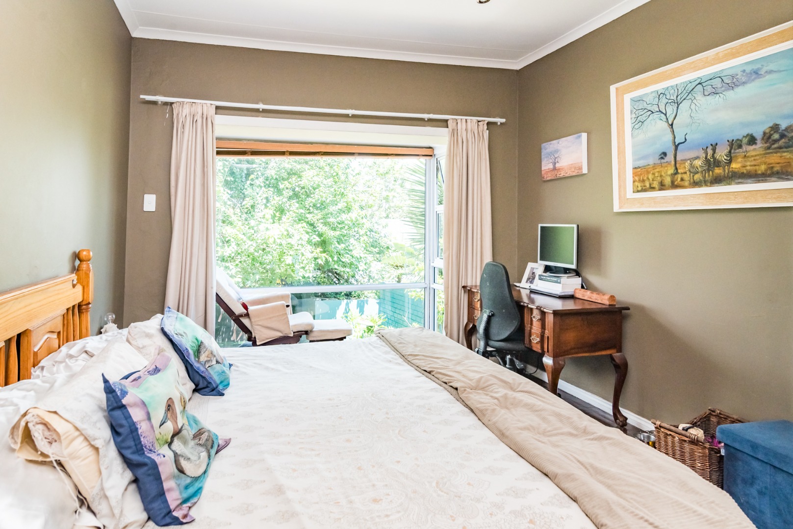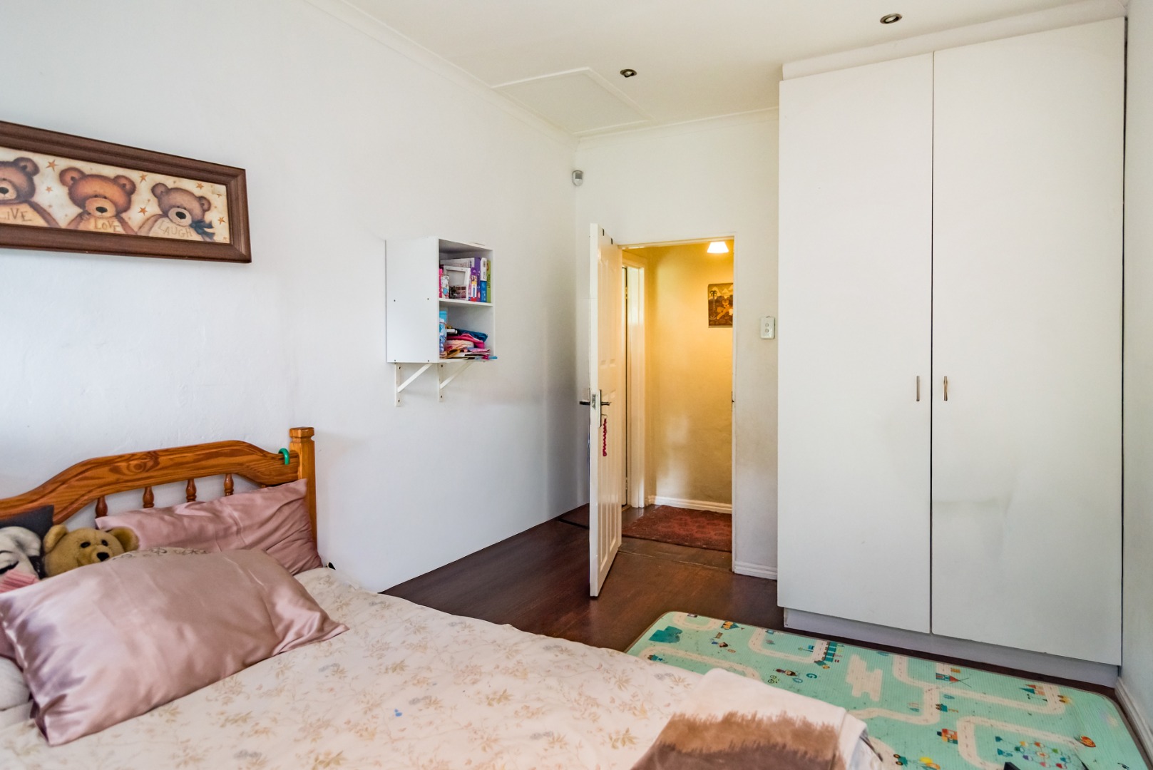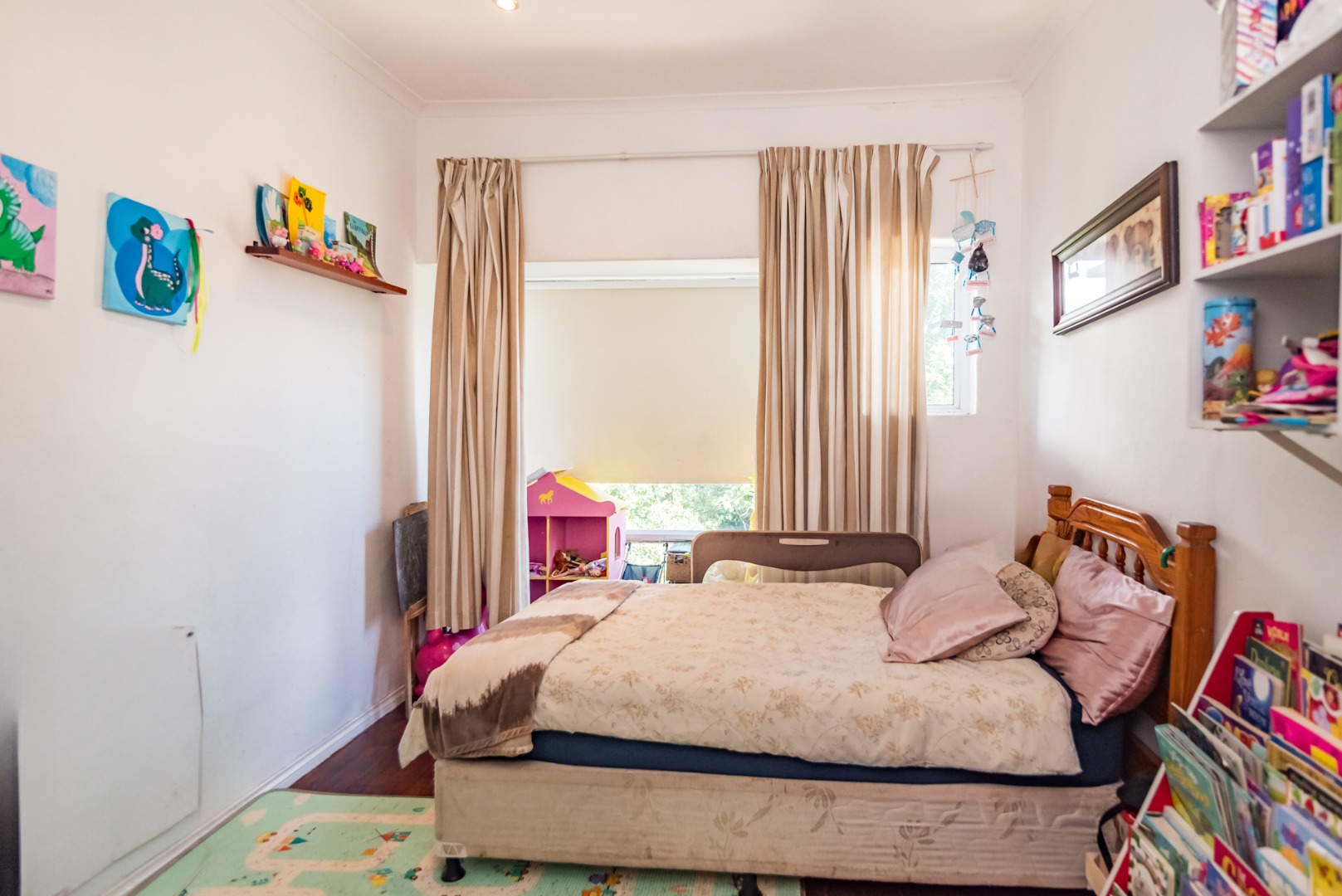 The upper level offers 2 bedrooms both with lovely large bay windows and built in cupboards. The main bedroom includes a generous en-suite. The family bathroom is conveniently located off the passage.