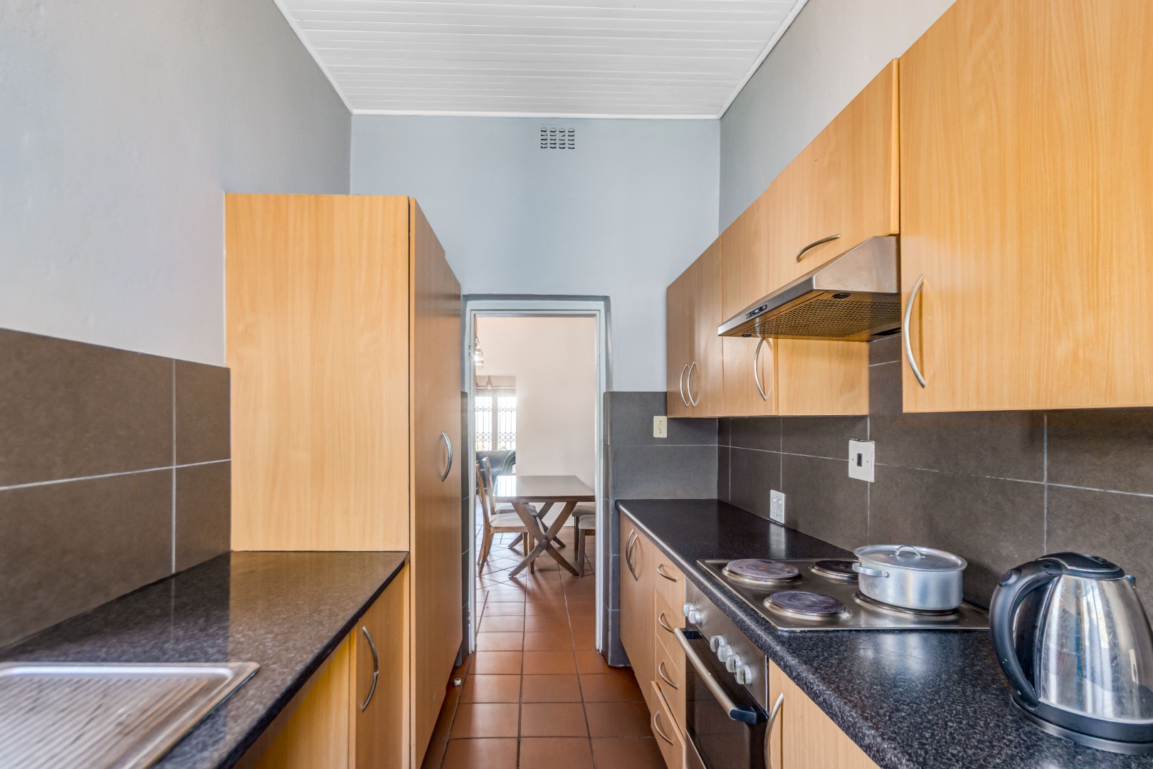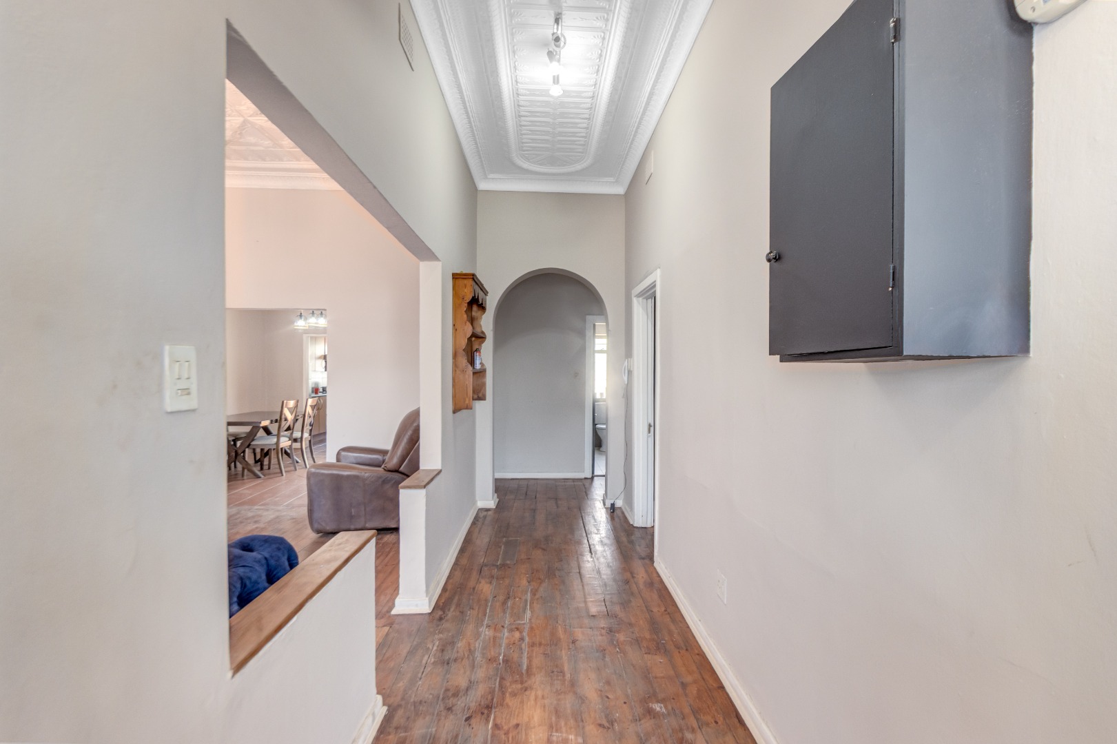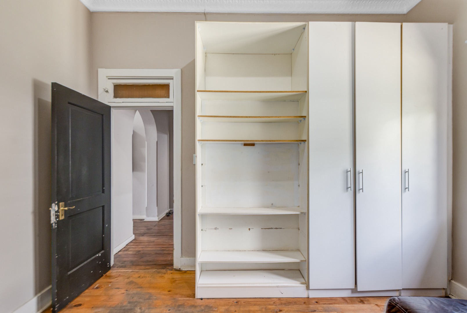 The well-maintained kitchen has space for three appliances, while wooden and tiled floors throughout, along with high pressed ceilings, add warmth and timeless charm.