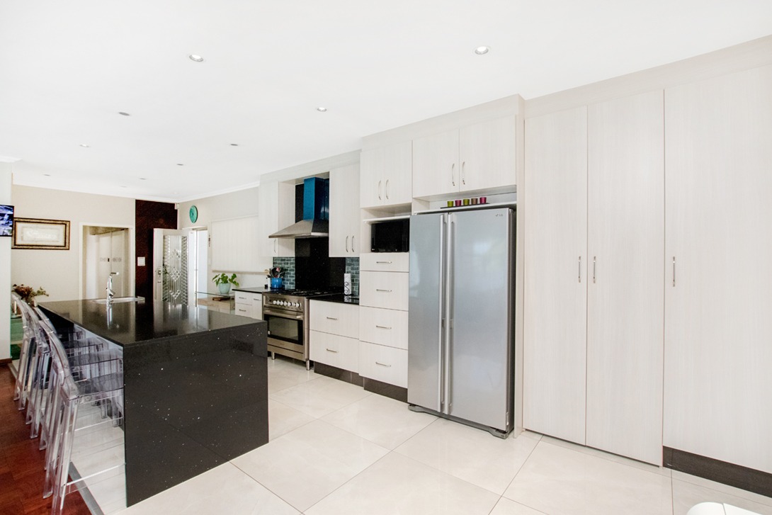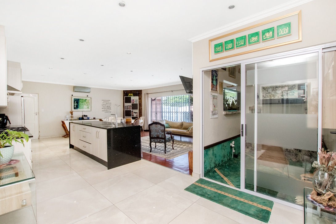 At the heart of the home is a stylish open plan kitchen, designed for effortless entertaining and everyday living. The kitchen is complemented by a large, separate scullery and pantry, providing ample storage and keeping the main living space pristine and uncluttered. The property features three well-appointed bedrooms, each with its own en-suite bathroom, ensuring privacy and convenience for the whole family. There is also a separate family room, perfect for relaxed gatherings, and a dedicated prayer room, offering a peaceful retreat for reflection or meditation.