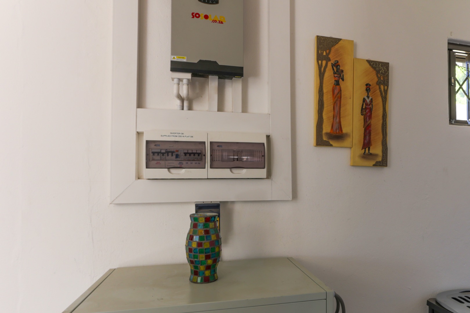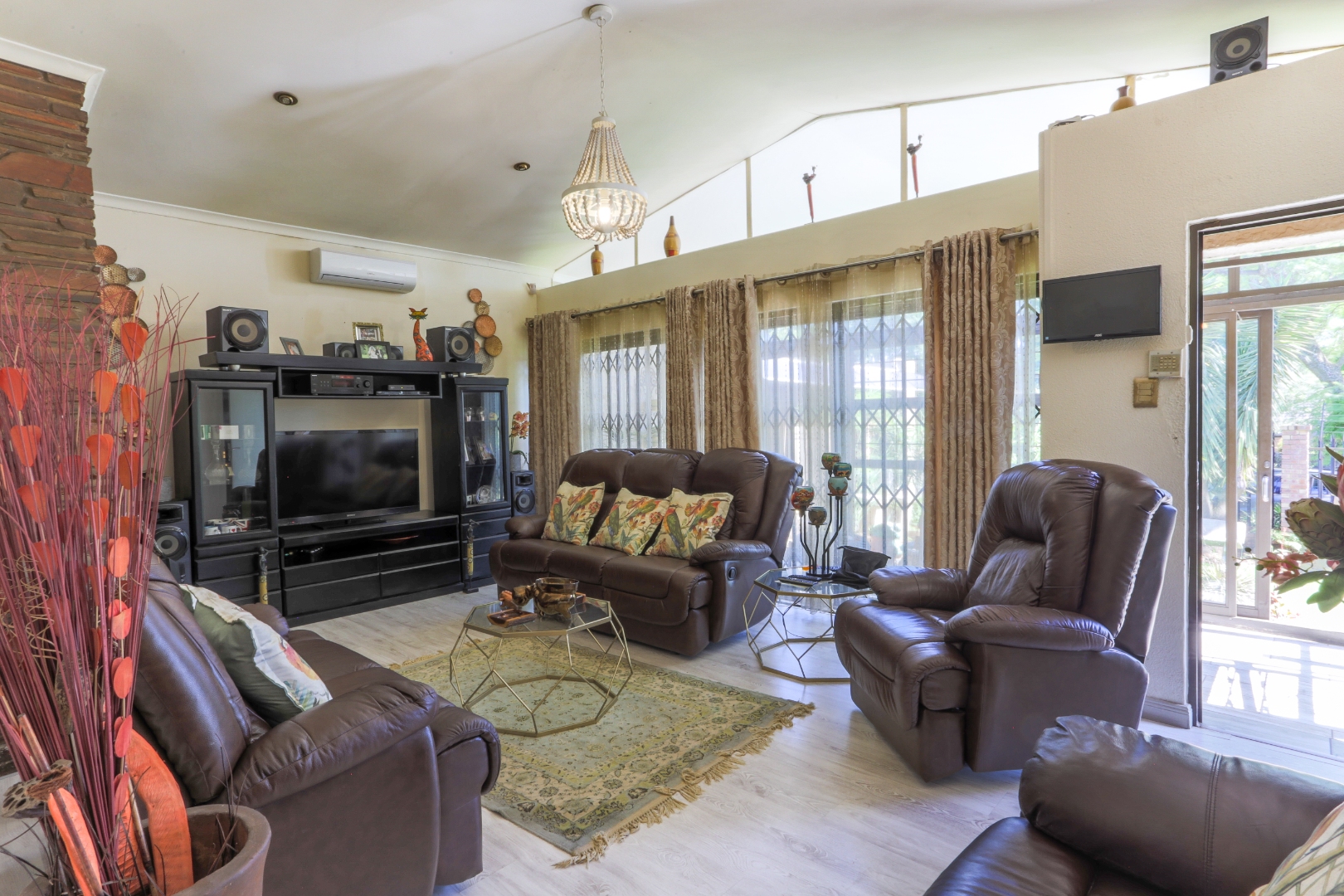 This property has two entrances. On the right side there is 3 tandem carports with extra parking behind the garage door to the back of the property. On the left side there is additional parking for visitors in front of the offices. Extra features include aluminium windows and doors, solar inverter system, heated pool, air conditioners, electric fence, security cameras, burglar proofing and alarm.