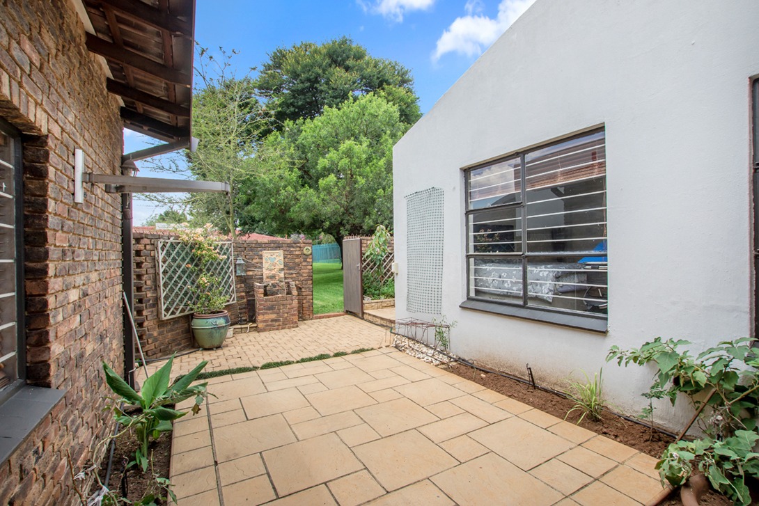 Step outside to enjoy the property's outdoor amenities, including two private patios perfect for alfresco dining and a refreshing swimming pool, ideal for warm South African days. The established garden provides a tranquil green space, complemented by practical paving. The property also includes a garage and a carport. Pets are permitted, with written permission, making this an ideal home for animal lovers.