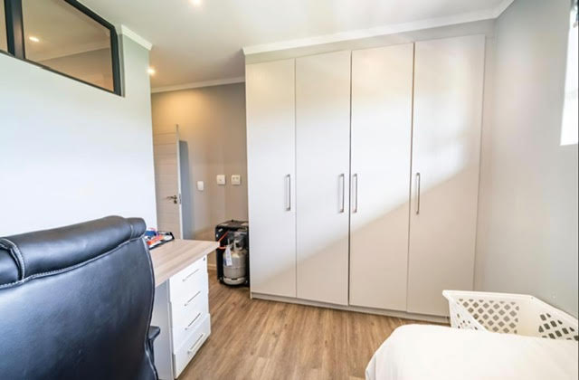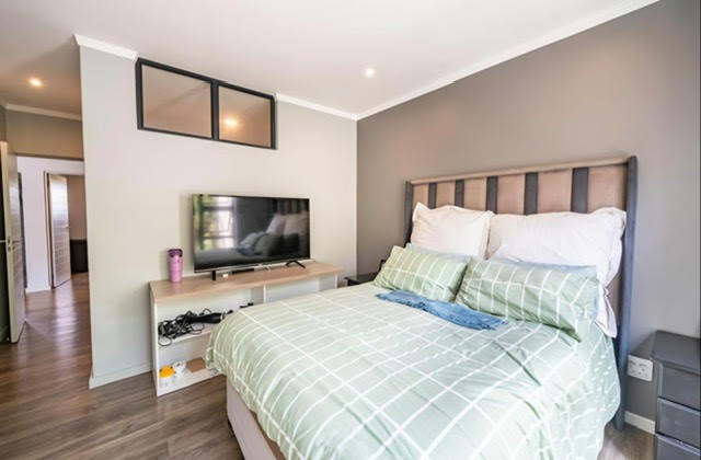 The master suite offers a spacious layout, featuring built in cupboards and laminate flooring leading into a beautifully appointed en suite bathroom. The second bedroom is a flexible and inviting space, perfect for guests or as a home office also en suite but with guest access also.