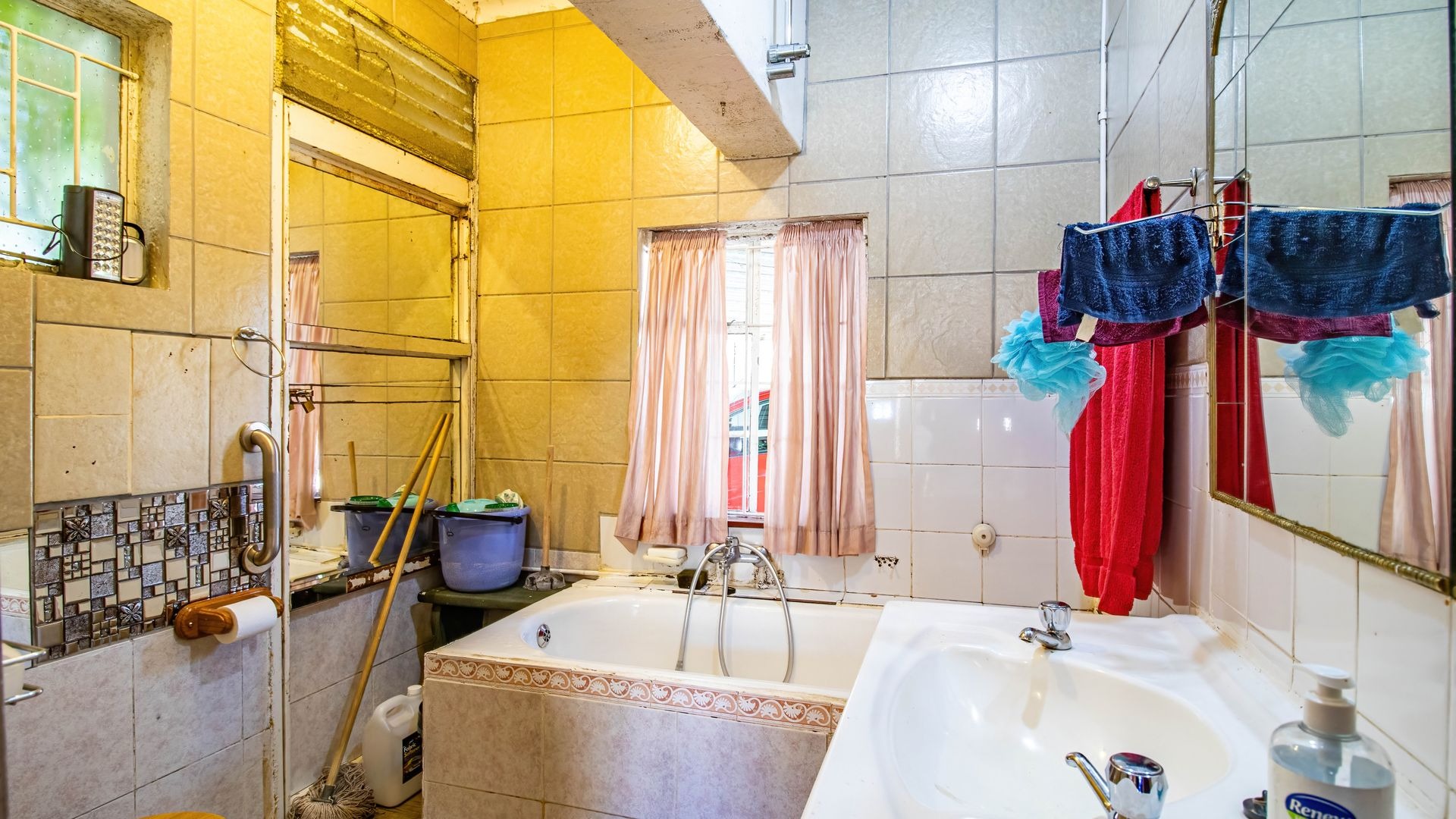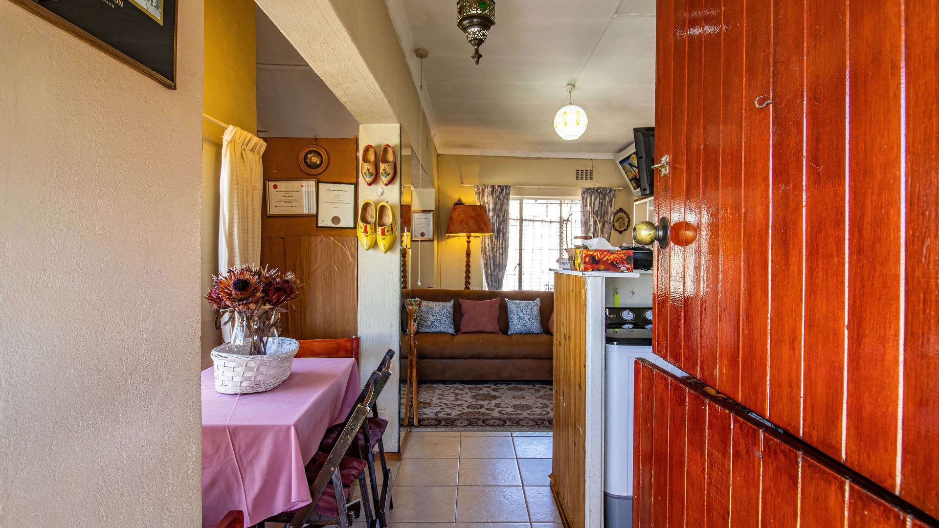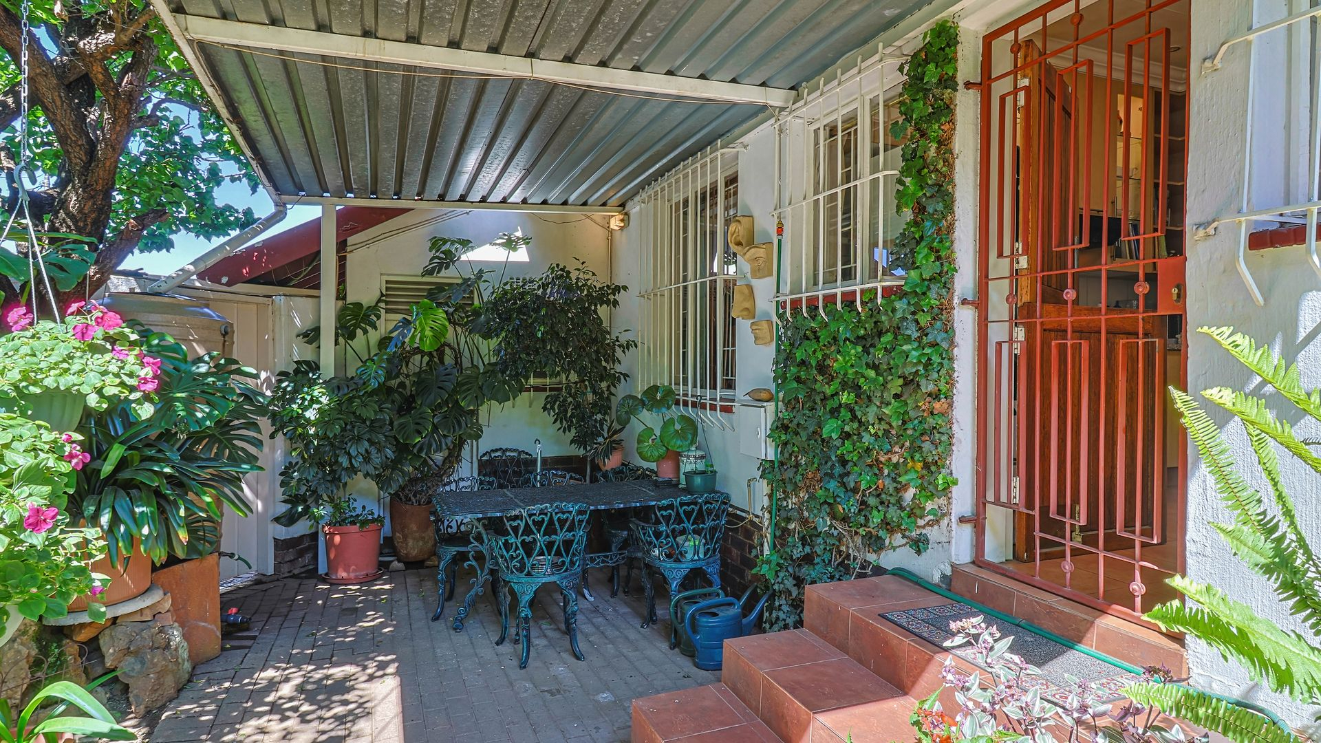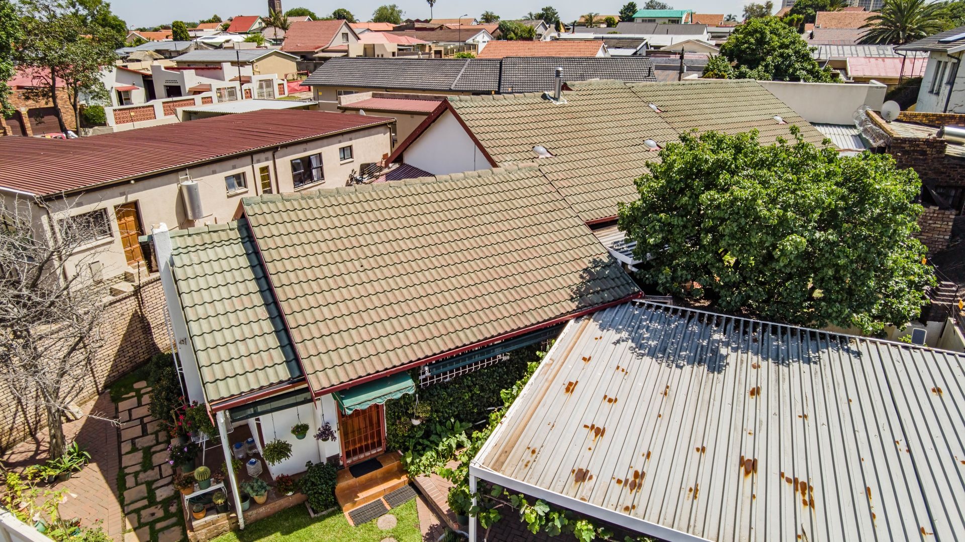 This charming 3-bedroom, 2-bathroom residence in Sophiatown, Johannesburg, offers a welcoming kerb appeal with its green tiled roof, well-maintained front garden, and paved driveway. The property boasts a carport with natural vine coverage, providing sheltered parking for three vehicles, complemented by an additional parking space, totalling three secure spots. Enhanced security features include a high perimeter wall with electric fencing and security bars on windows, ensuring peace of mind.