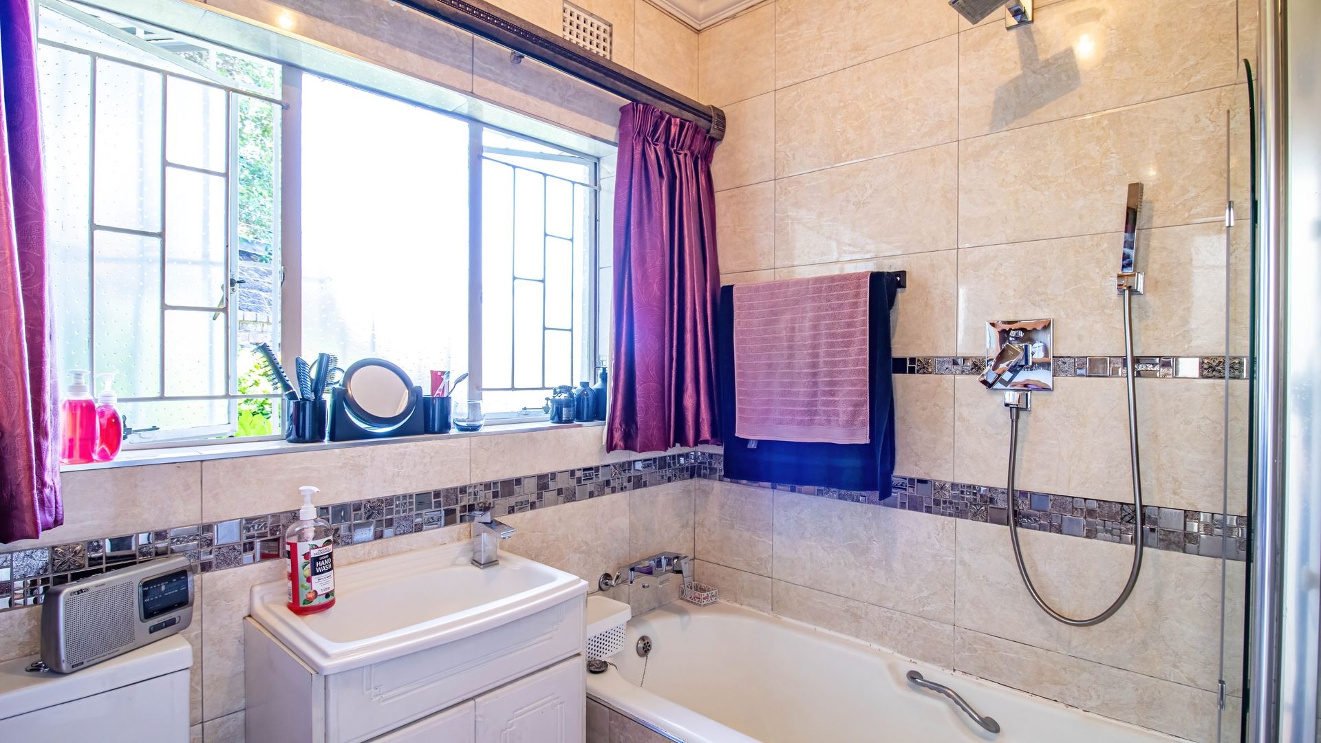 The home comprises three comfortable bedrooms, including a main bedroom with an en-suite bathroom and built-in wooden wardrobes, offering practical storage. The additional bathroom serves the remaining bedrooms. This property also benefits from a separate flatlet, presenting excellent potential for rental income or extended family living.