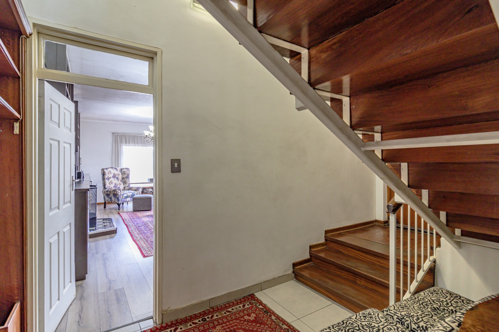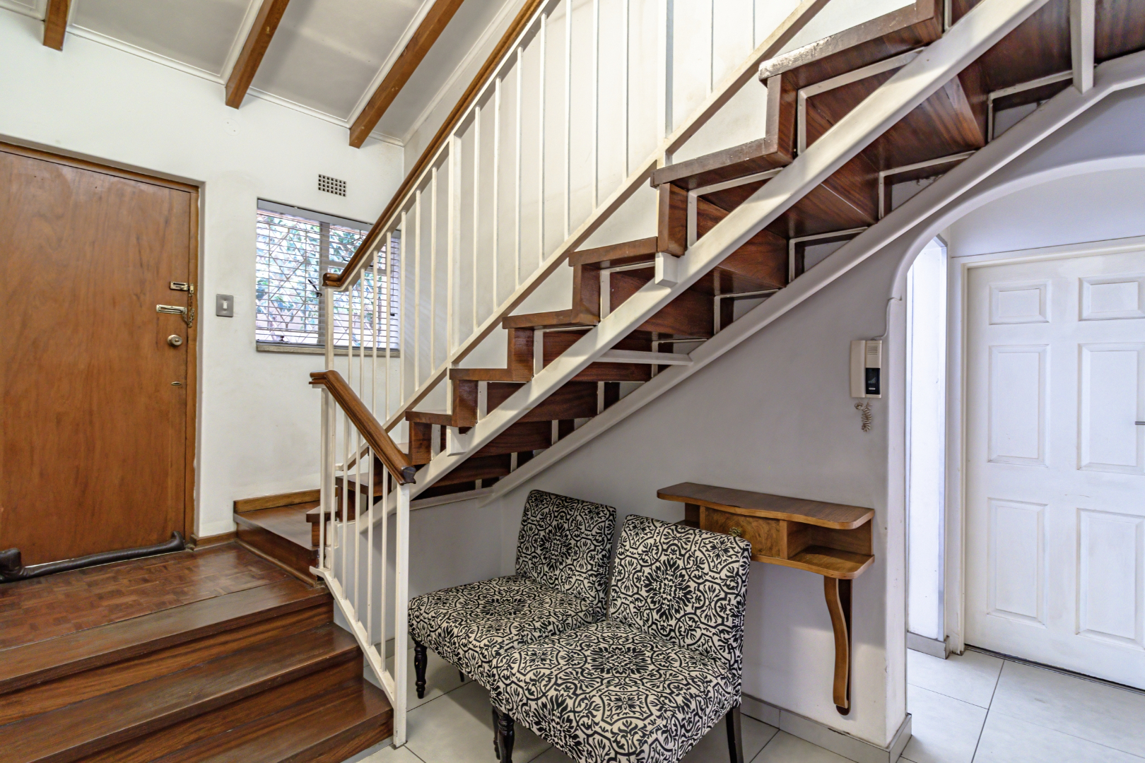 Upstairs offers enhanced security with fitted security gates, creating a safe and private retreat for all three bedrooms. A full bathroom serves this level.