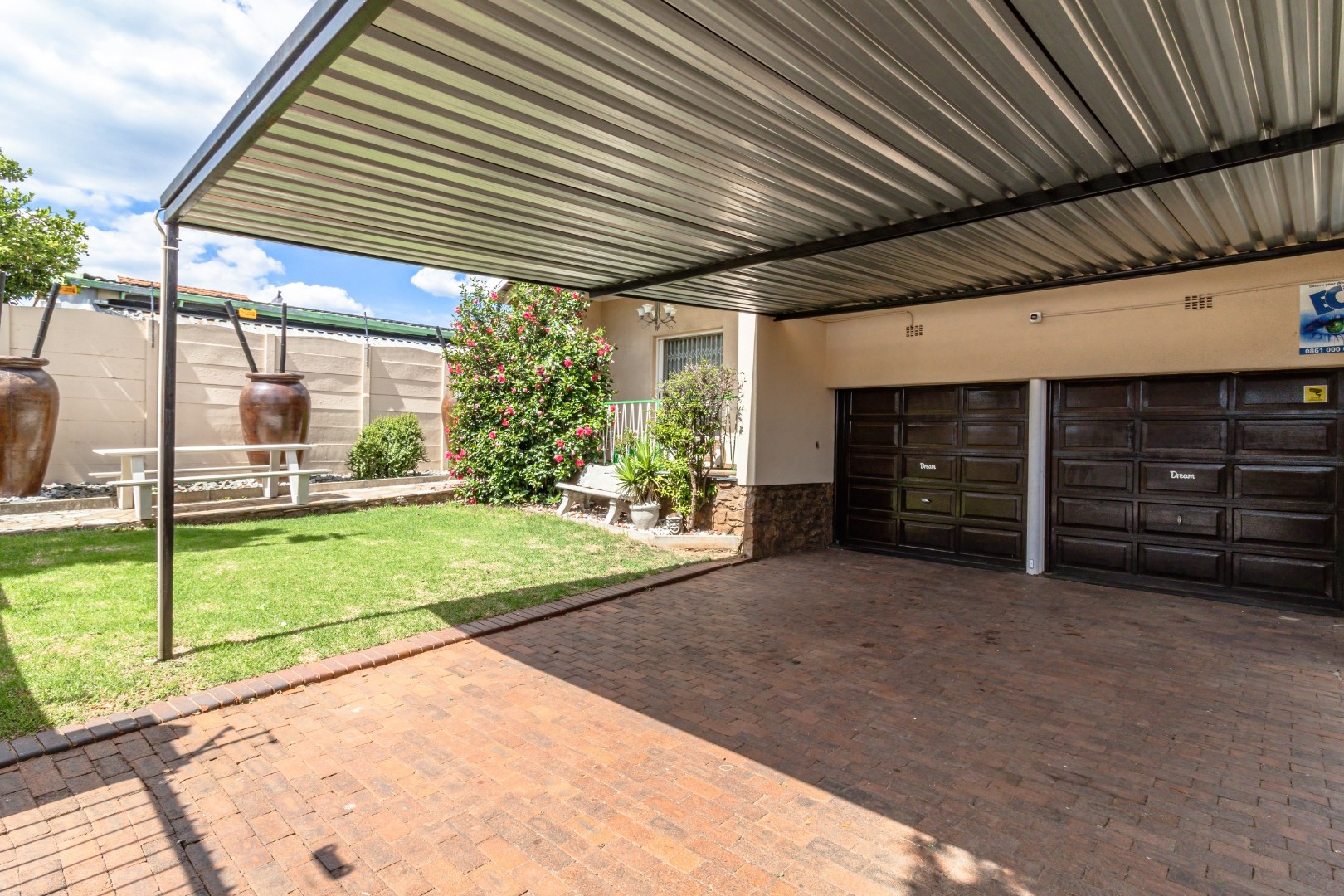 Outside, enjoy a well-manicured garden, neat paving, and ample parking with a double garage and double carport.