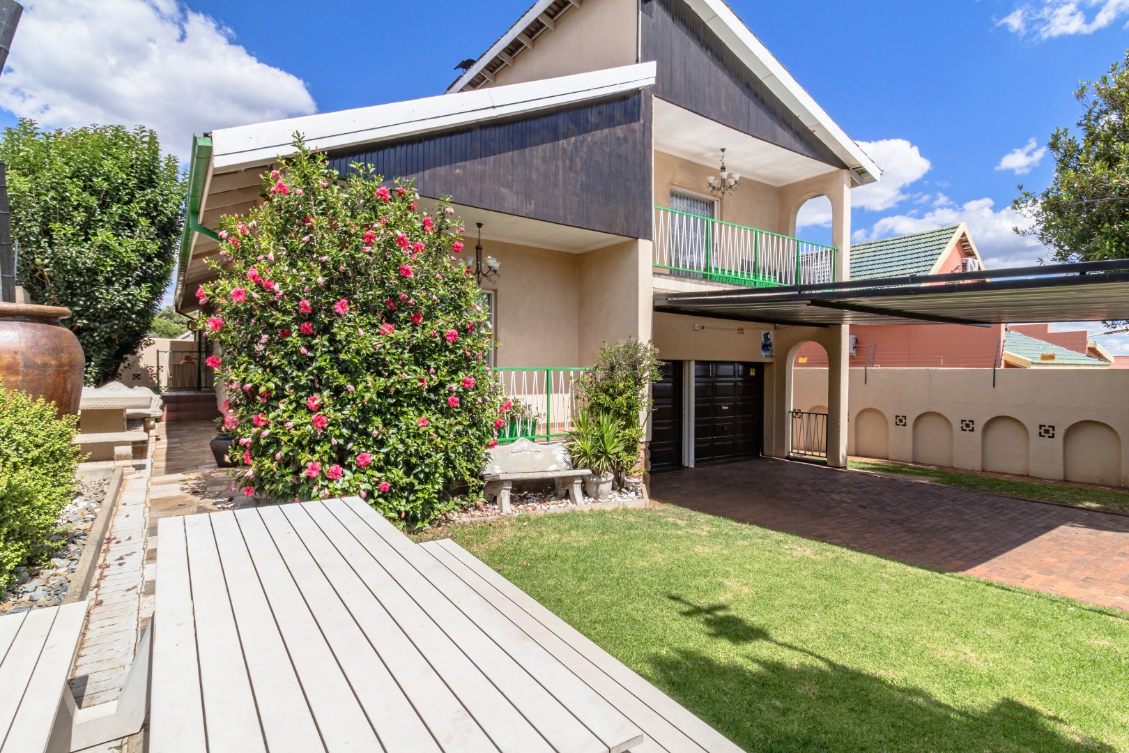 Outside, enjoy a well-manicured garden, neat paving, and ample parking with a double garage and double carport.