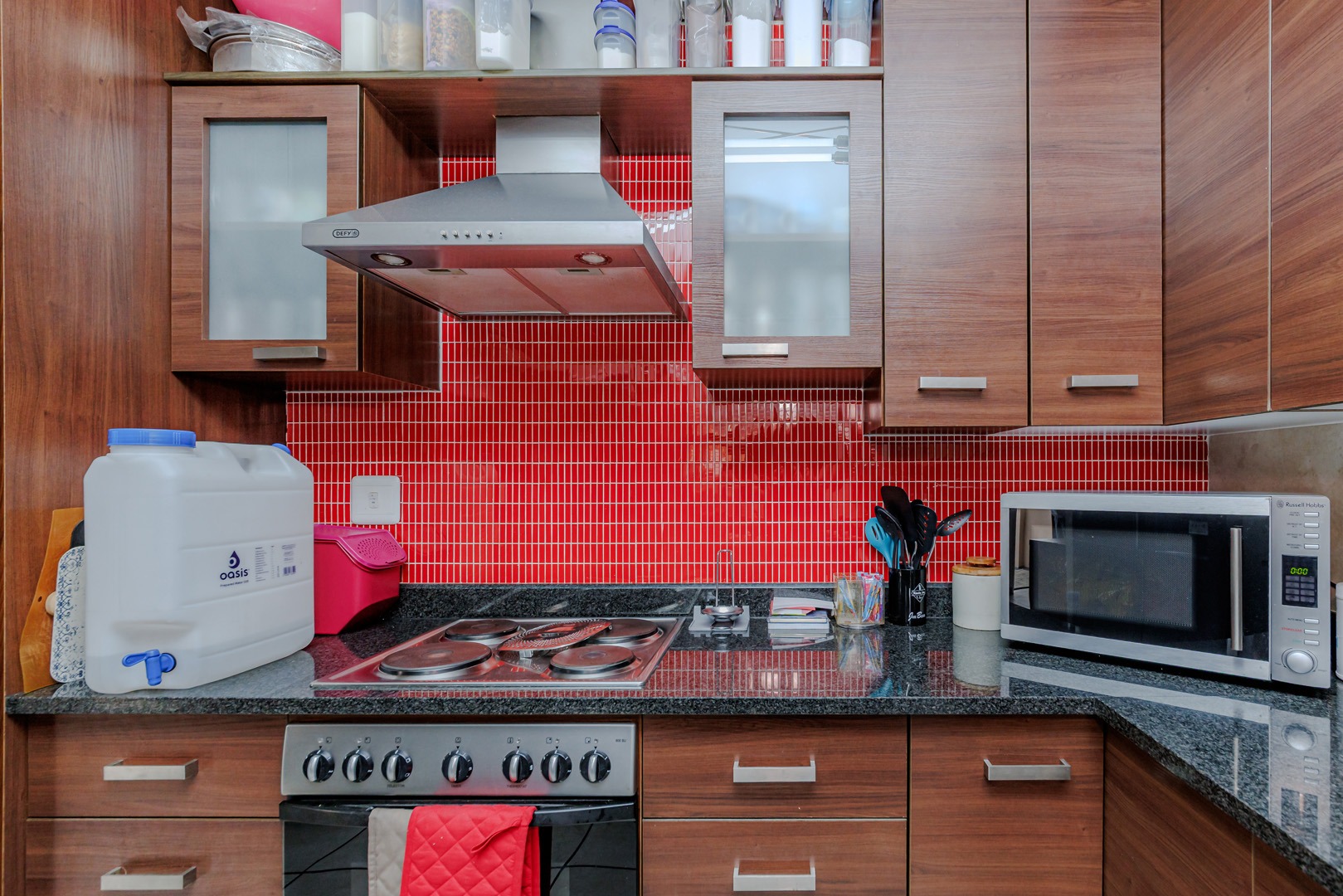 Discover unparalleled modern elegance within this 170 sqm townhouse, ideally situated in the esteemed Chancliff Ridge estate, Krugersdorp. The striking facade, featuring a muted peach exterior with sophisticated grey accents and a durable tiled roof, offers exceptional kerb appeal. A prominent double garage with a rich wooden door and a paved driveway ensures ample parking. Inside, an expansive open-plan living and dining area, bathed in natural light, boasts consistent light-colored tiled flooring, creating a seamless flow for both grand entertaining and intimate family moments. The well-appointed kitchen, featuring modern dark wood cabinetry, promises culinary delight.