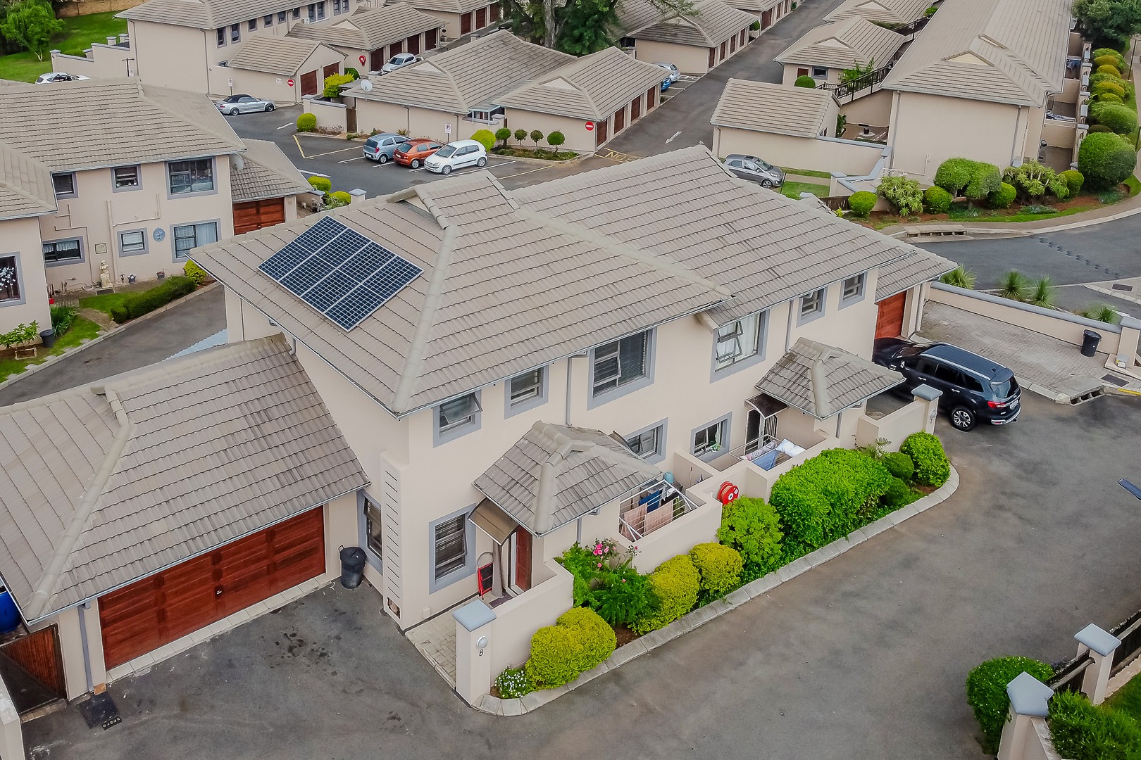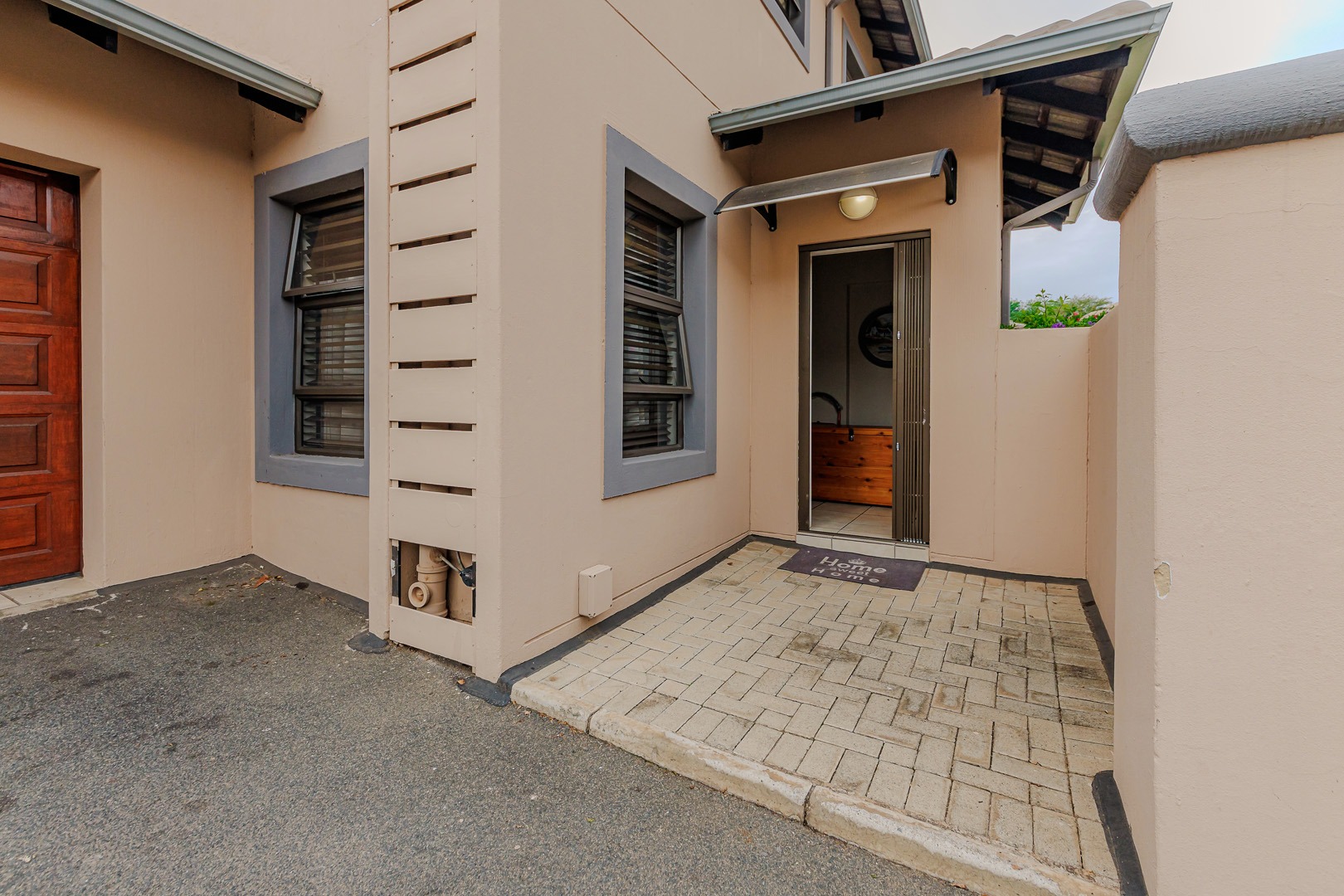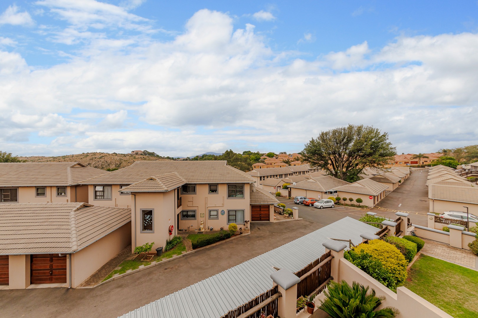 Three generously proportioned bedrooms await in the private quarters, including a luxurious en-suite master. With 2.5 meticulously designed bathrooms, including a convenient guest toilet, comfort and privacy are paramount. A private balcony offers serene scenic views, perfect for quiet contemplation. The estate further enhances your lifestyle with a sparkling communal pool and a dedicated braai area, ideal for leisure and social gatherings, complemented by a private garden space. Pets are permitted, adding to the home's welcoming ambiance.