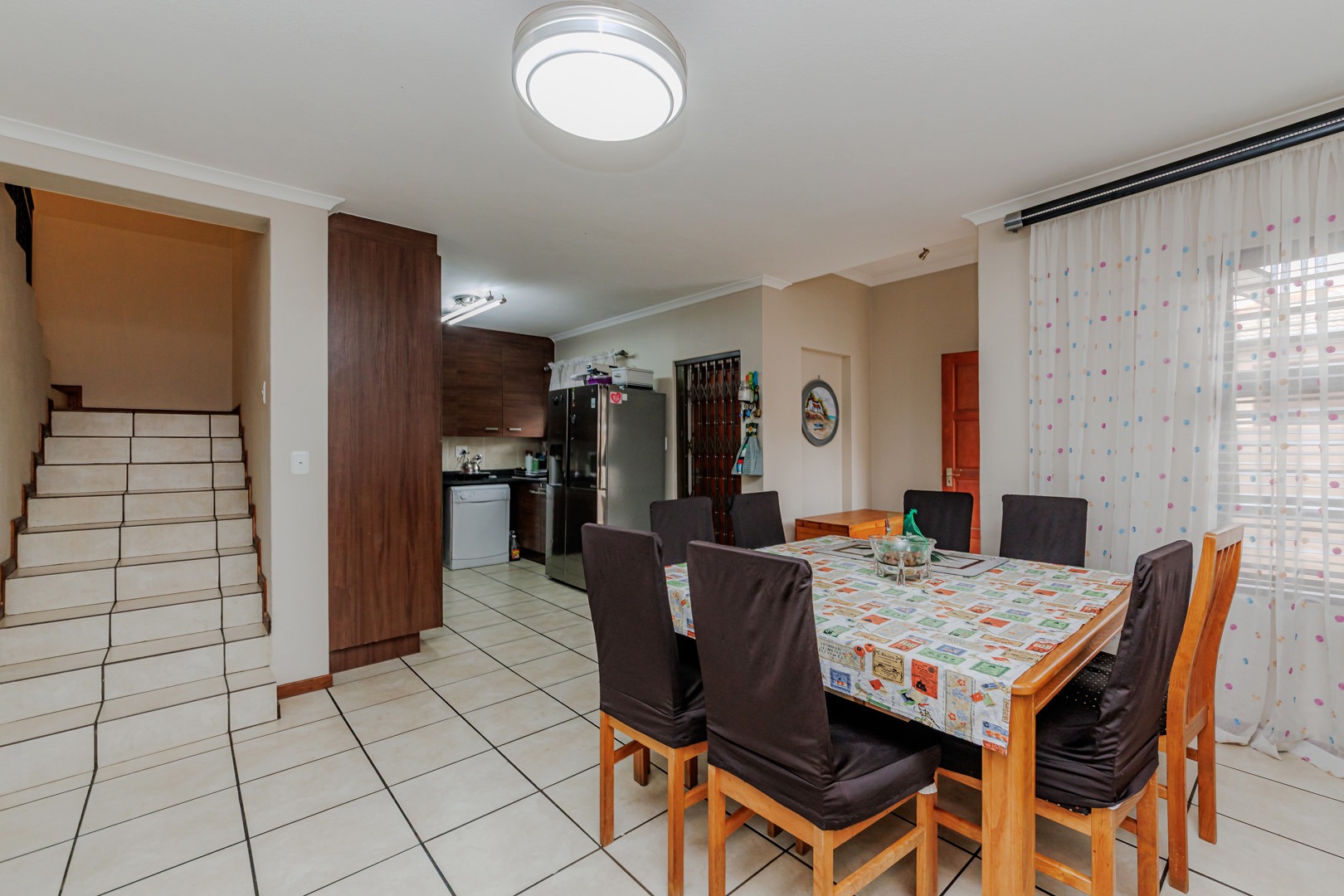 Three generously proportioned bedrooms await in the private quarters, including a luxurious en-suite master. With 2.5 meticulously designed bathrooms, including a convenient guest toilet, comfort and privacy are paramount. A private balcony offers serene scenic views, perfect for quiet contemplation. The estate further enhances your lifestyle with a sparkling communal pool and a dedicated braai area, ideal for leisure and social gatherings, complemented by a private garden space. Pets are permitted, adding to the home's welcoming ambiance.