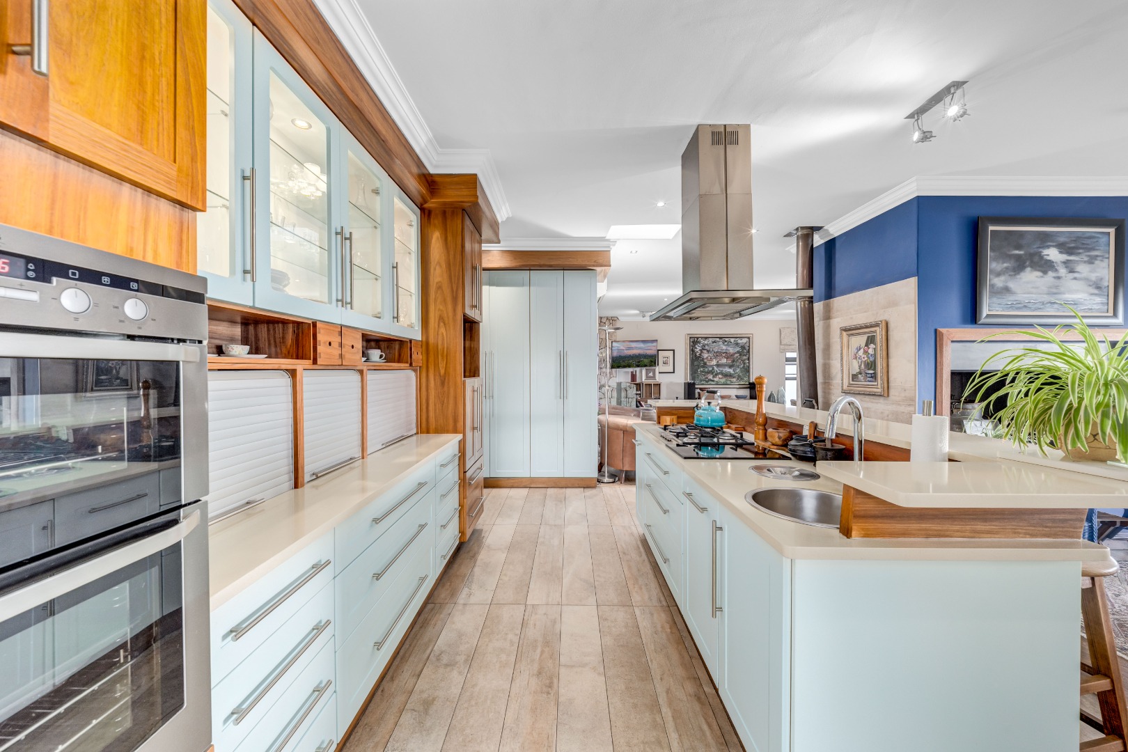Additional highlights include a large workshop or hobby room, separate staff accommodation, a central vacuum system, solar power, extensive backup water tanks, two double automated garages, and excellent storage throughout.