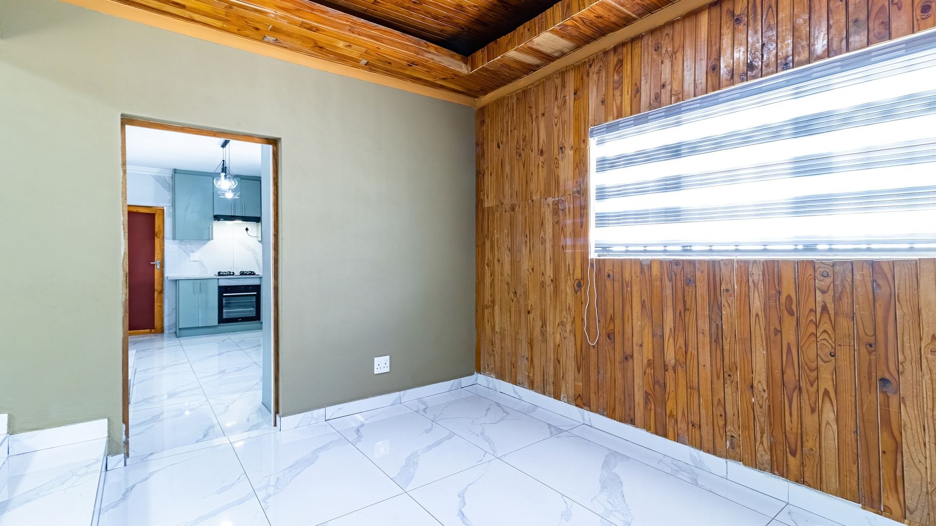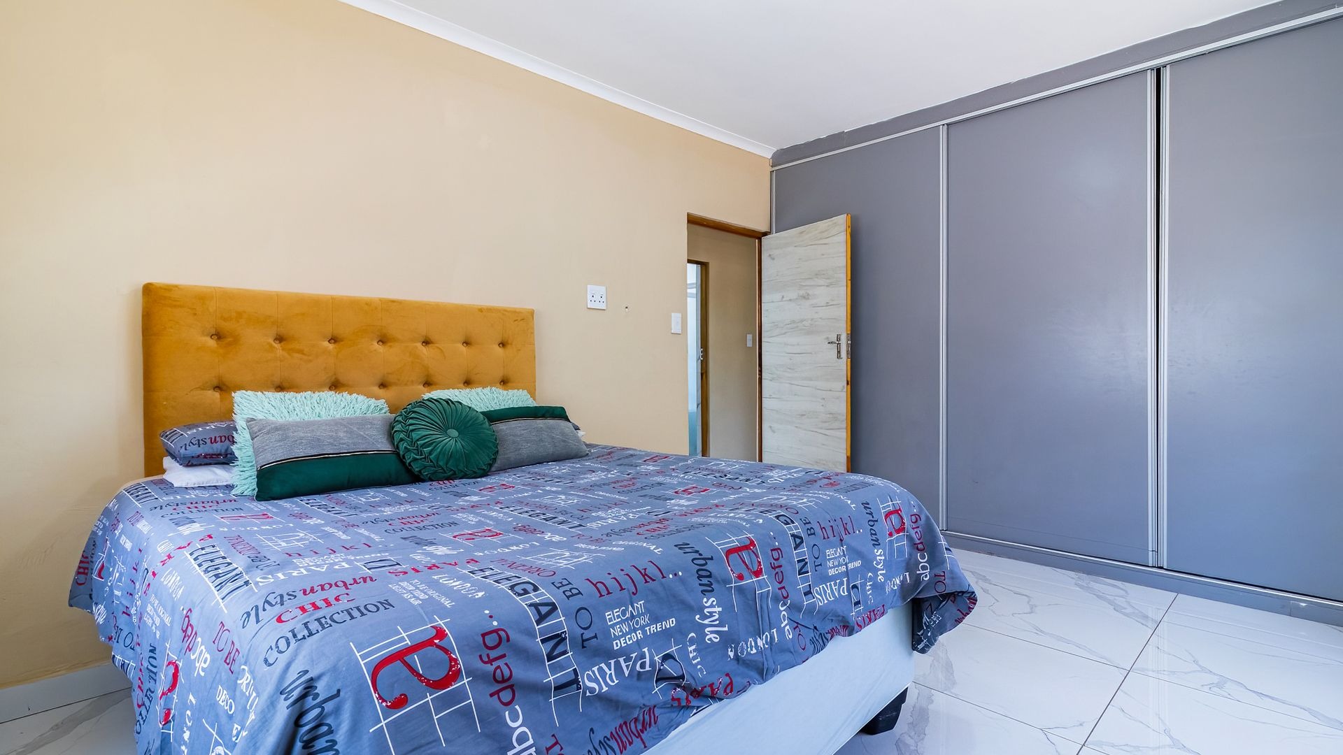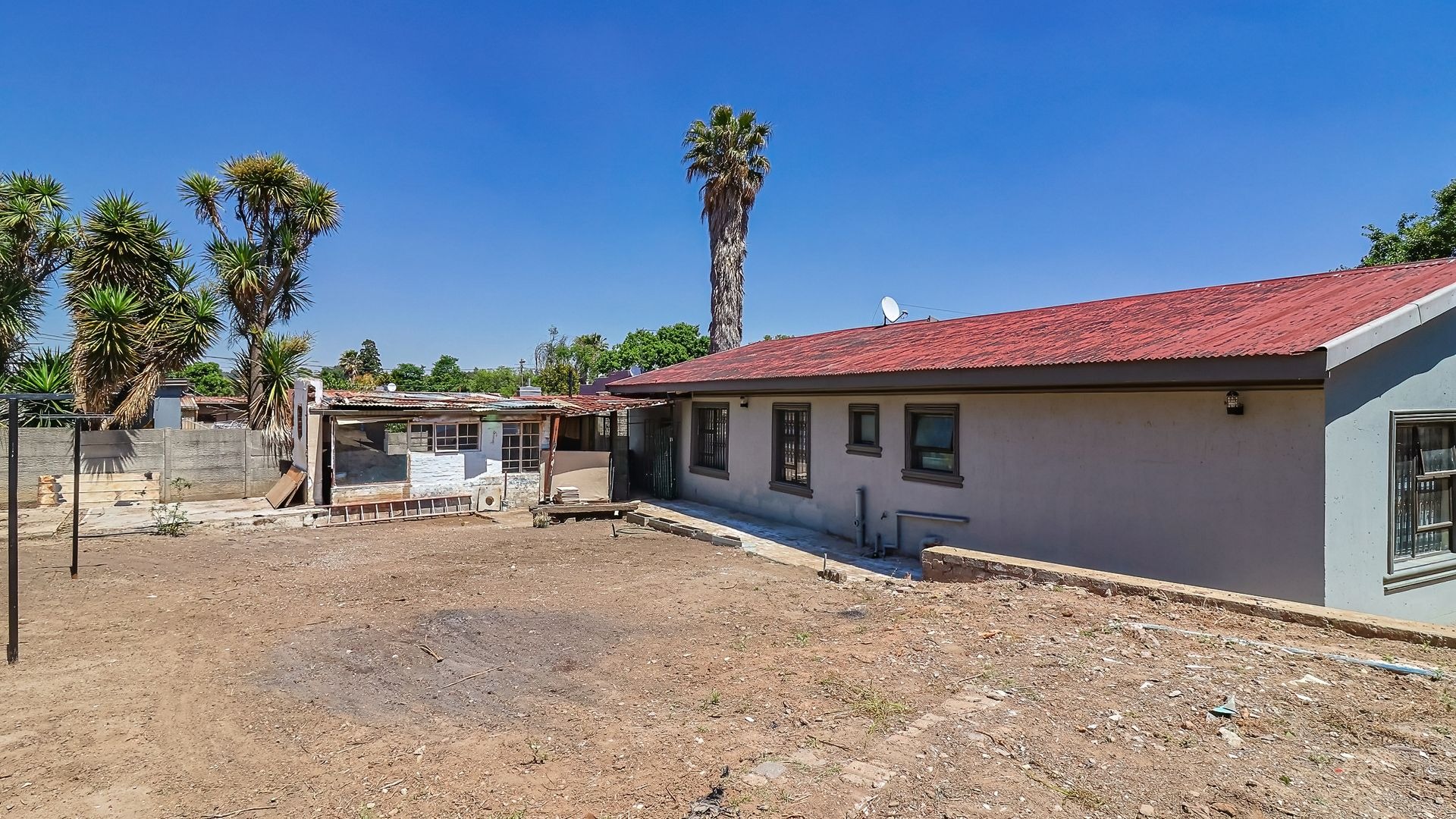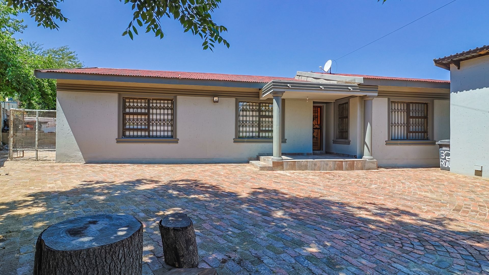 Discover this inviting 3-bedroom, 1.5-bathroom residence nestled on a generous 1030 sqm erf in the suburban heart of Mindalore, Krugersdorp. The property boasts a well-maintained exterior with a modern garage extension and a vast paved driveway, offering ample parking for up to five vehicles. A covered front porch with architectural pillars enhances kerb appeal, while mature shade trees and a private concrete boundary wall provide privacy and a blank canvas for landscaping. Enhanced security features, including window and door grilles, offer peace of mind.