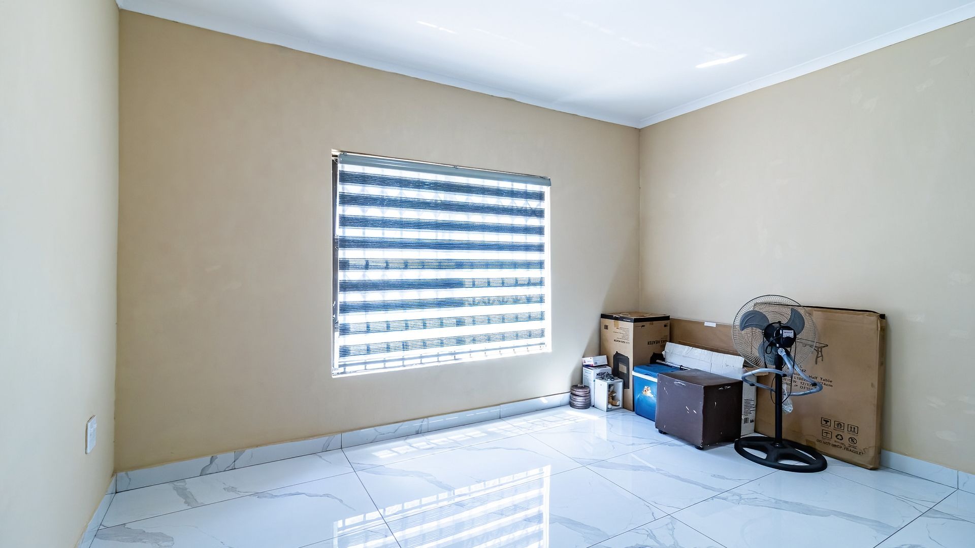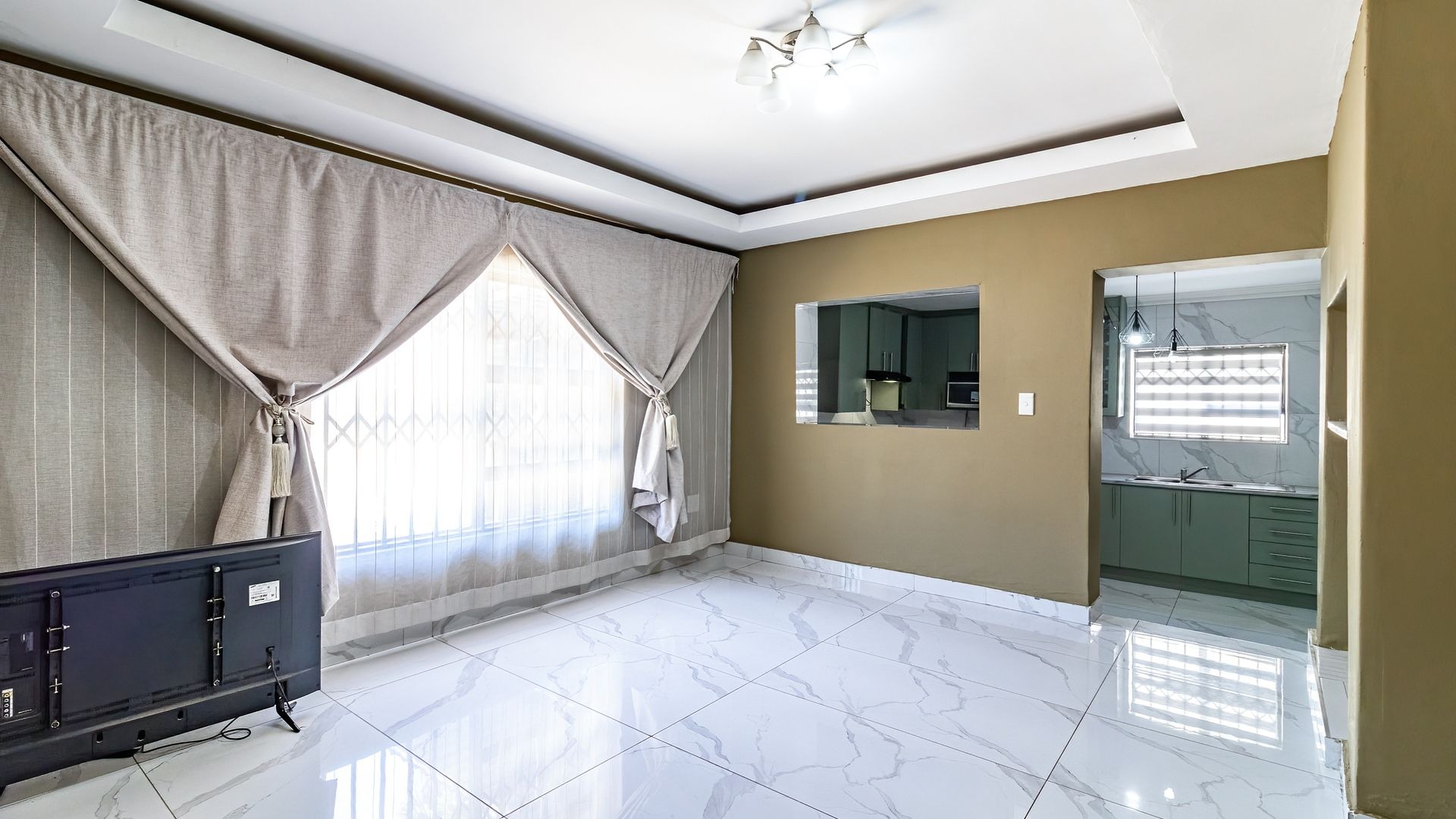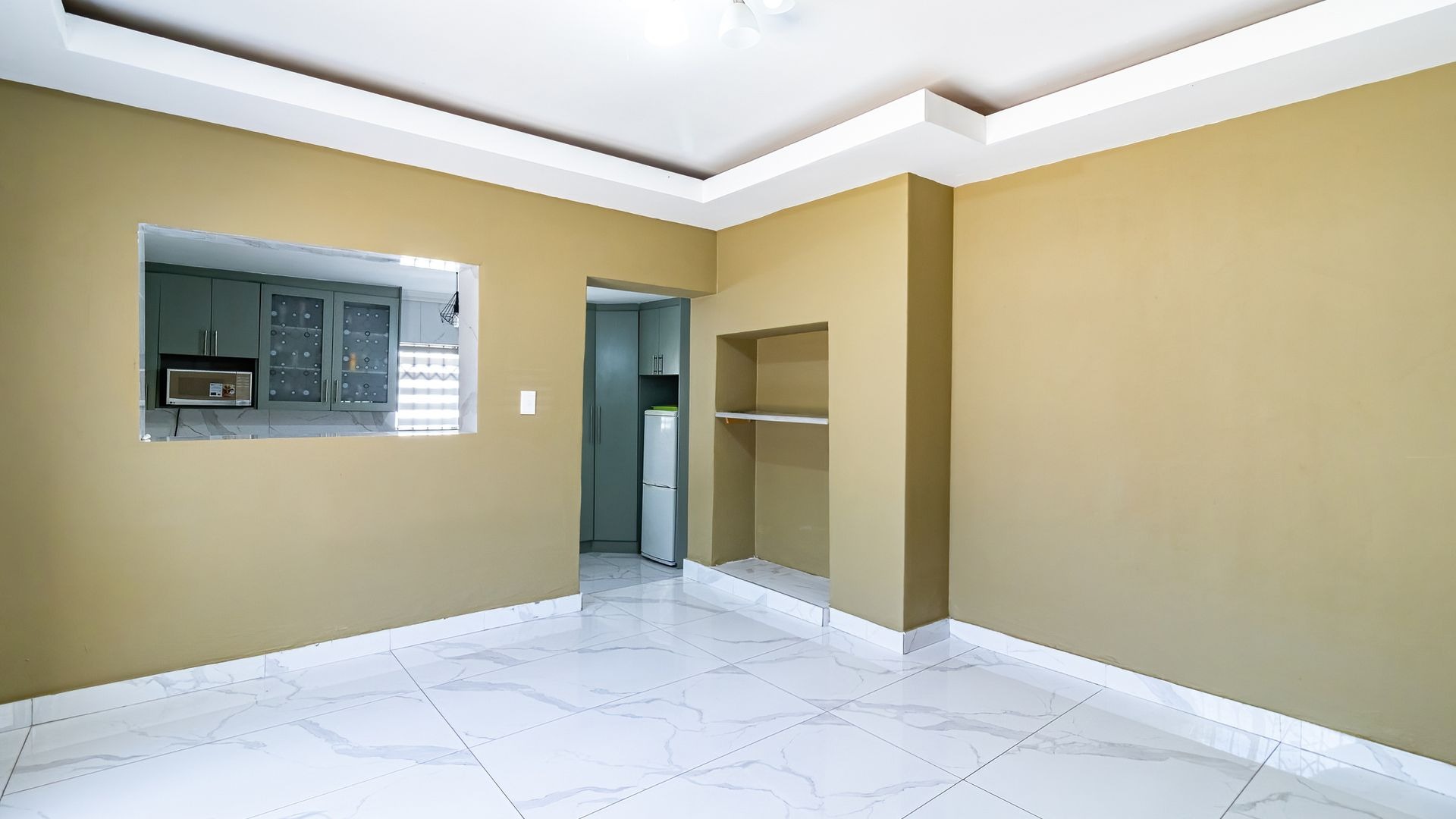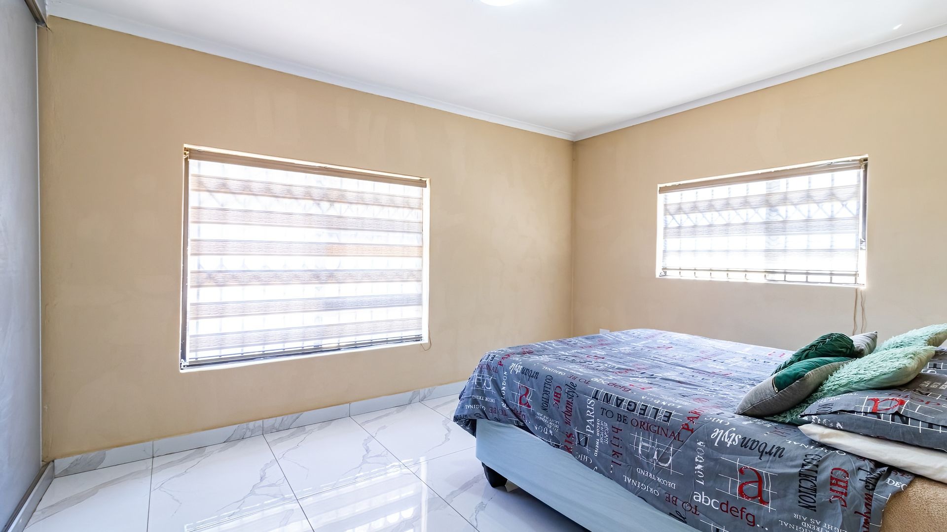 Discover this inviting 3-bedroom, 1.5-bathroom residence nestled on a generous 1030 sqm erf in the suburban heart of Mindalore, Krugersdorp. The property boasts a well-maintained exterior with a modern garage extension and a vast paved driveway, offering ample parking for up to five vehicles. A covered front porch with architectural pillars enhances kerb appeal, while mature shade trees and a private concrete boundary wall provide privacy and a blank canvas for landscaping. Enhanced security features, including window and door grilles, offer peace of mind.